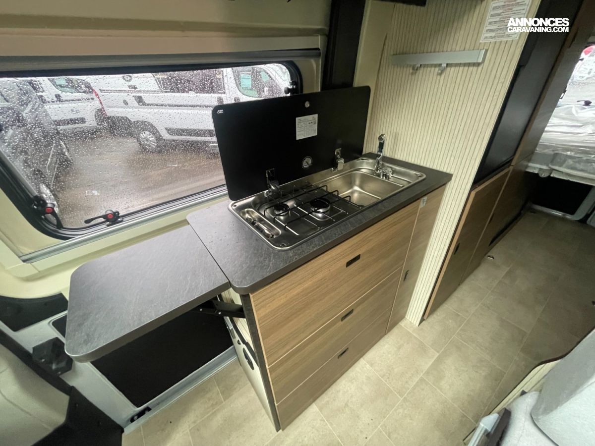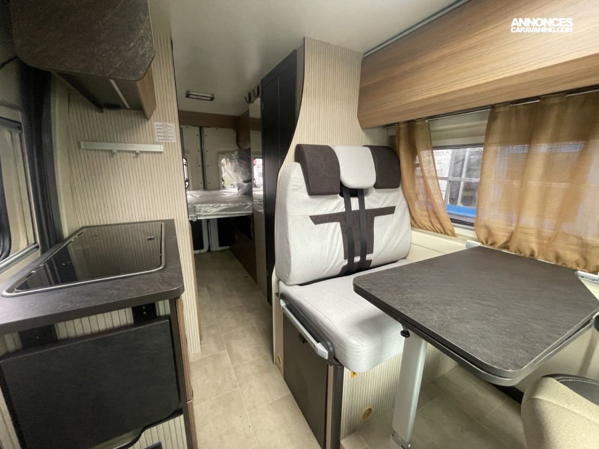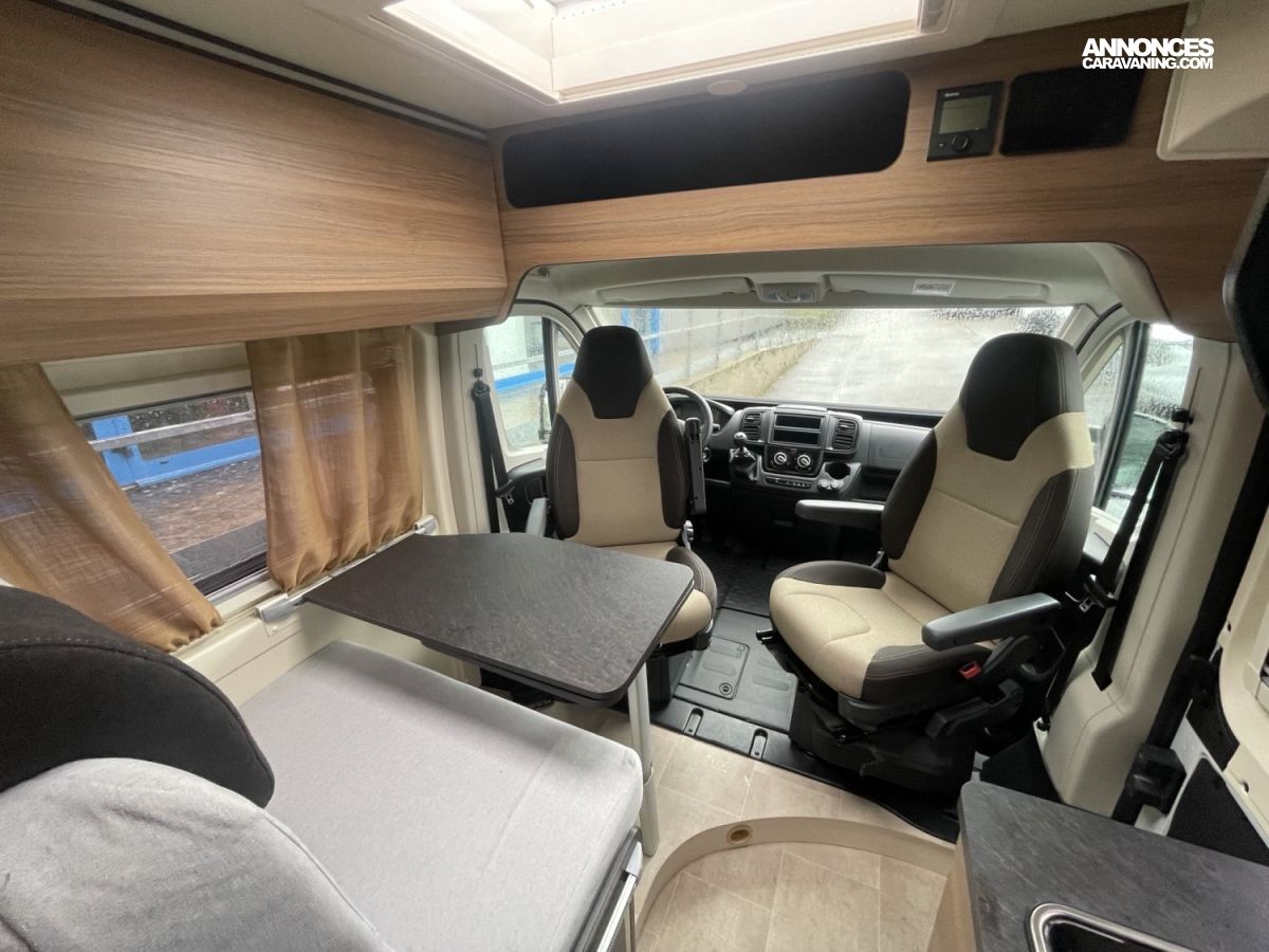 Housse de sièges cabine, Moustiquaire de porte latérale, Régulateur de vitesse, Rétroviseurs électriques, Marche pieds électriques, Gazinière 2 feux, Rallonge cuisine, Climatisation porteur, Rallonge de table, Boite 6 vitesses, Frigo compression, Chauffage / Chauffe eau Truma Combi 4 Gaz, Dimension des lits: AR 135 x 192cm; dînette 115 x 182cm