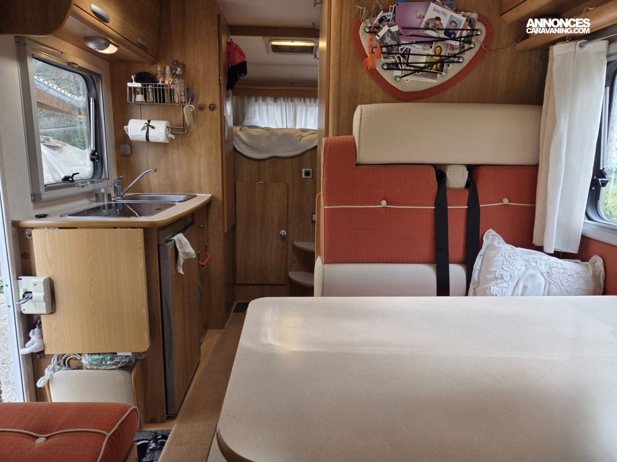 Camping-car capucine Rimor Katamarano 8 de 2007, affichant seulement 66 900 km. Ce modèle familial, robuste et bien conçu, est idéal pour les escapades en couple ou en famille. Il offre jusqu’à 5 places carte grise et 6 couchages, une grande capucine confortable, un coin repas convivial transformable en lit, ainsi qu’un espace cuisine fonctionnel avec réfrigérateur, gazinière et évier. La salle d’eau comprend une douche séparée et de nombreux rangements. Vous apprécierez également sa grande soute garage, accessible depuis l’intérieur de la cellule, parfaite pour transporter vélos, matériel de camping ou bagages encombrants. Moteur fiable et bien entretenu, prêt à partir pour de nouvelles aventures.