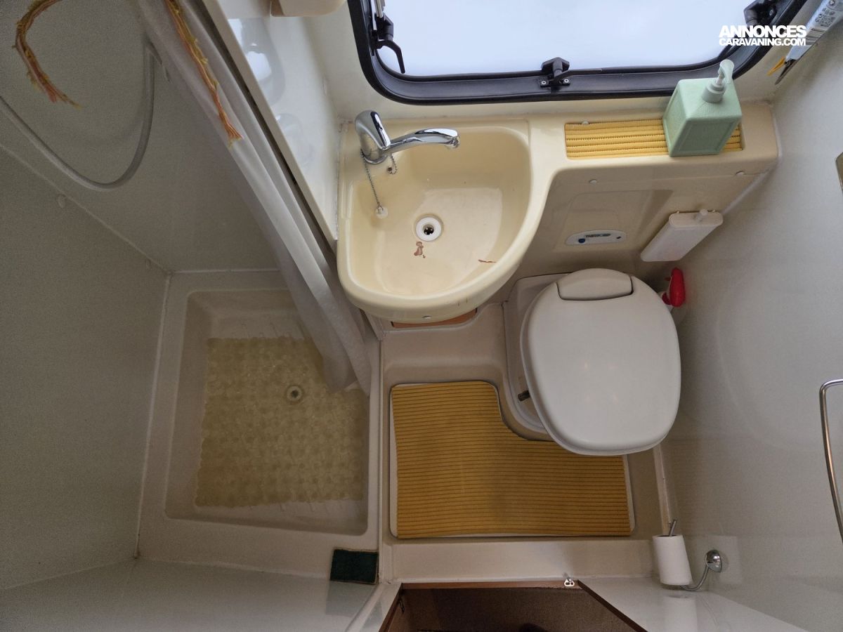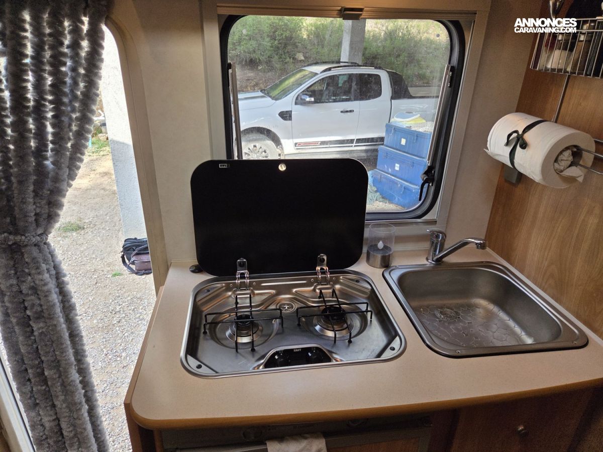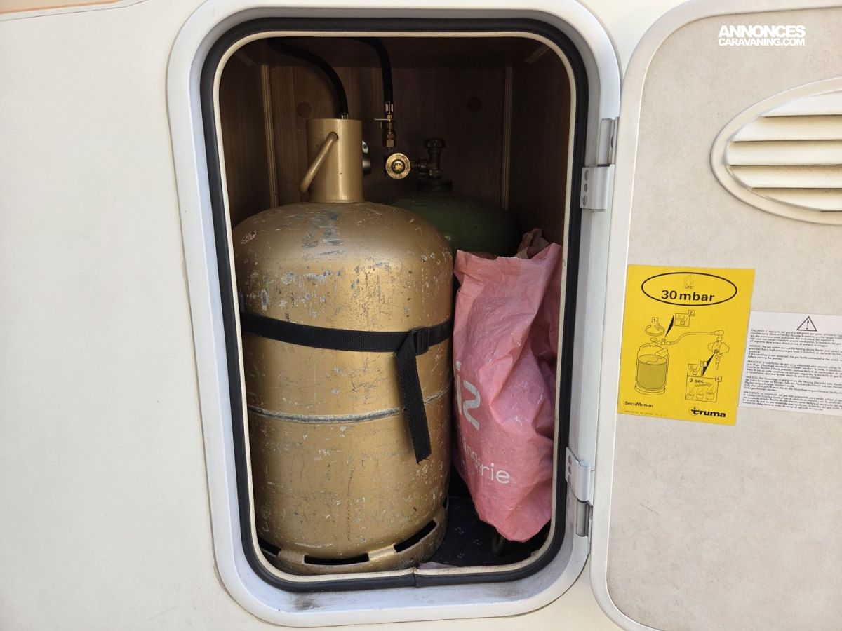 CHAUFFAGE COMBI TRUMA 4, STORE EXTERIEUR 3.5M, GAZINIERE 2 FEUX, FENETRE SDB, DOUCHE ET WC SEPARES, MOQUETTE CABINE, PORTE VELO, RALLONGE DE TABLE, REFRIGERATEUR TRI MIX
