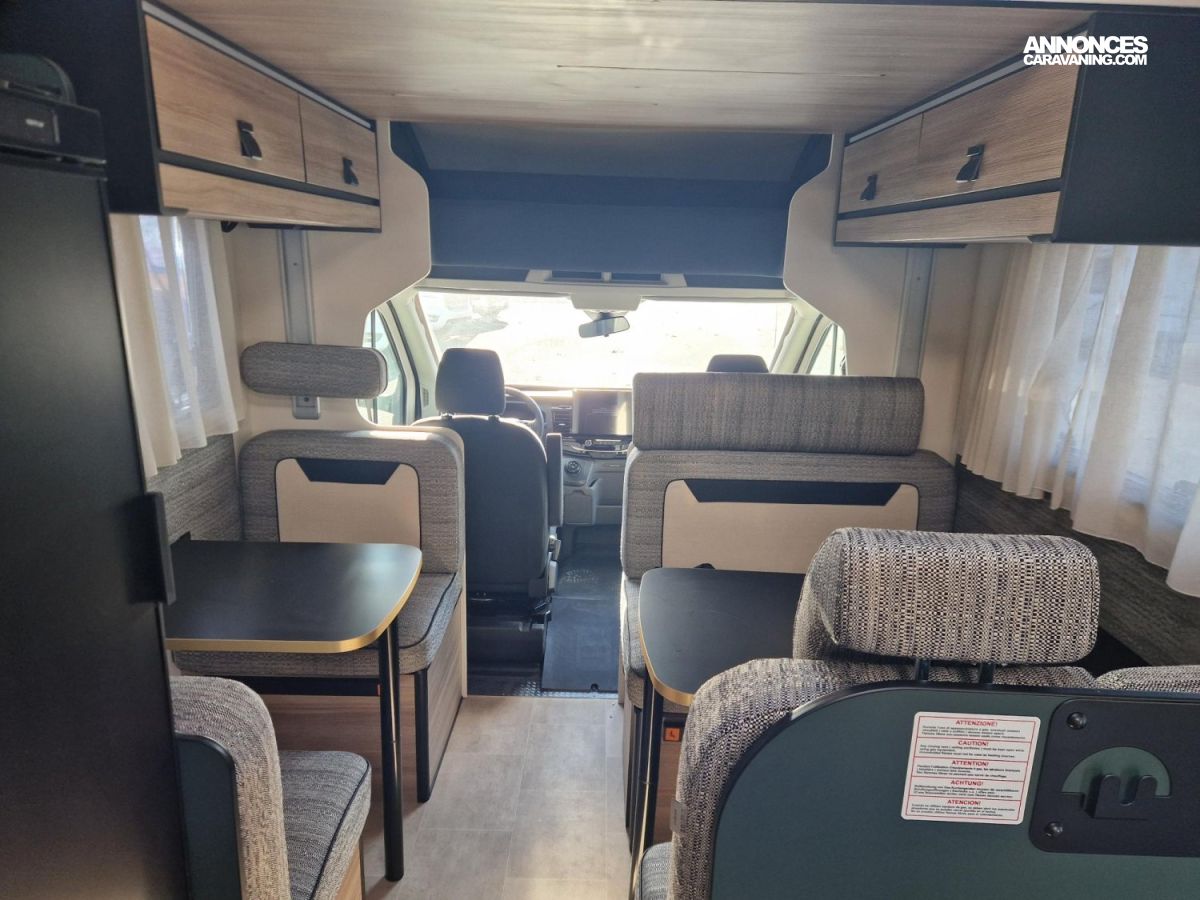 Camping-car profilé spacieux et confortable, idéal pour les voyages en famille. Il offre 7 places carte grise et 7 couchages, avec lit pavillon électrique, lits superposés et grand espace de vie lumineux. Équipé d’une cuisine fonctionnelle, d’une salle d’eau complète et d’un chauffage performant, il allie confort, modernité et plaisir de conduite sur porteur Ford Transit 165 CV.