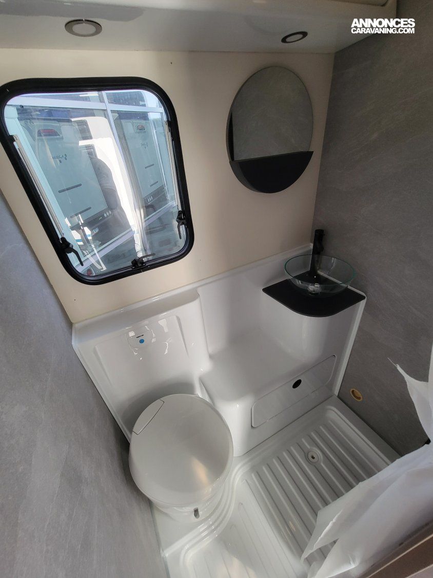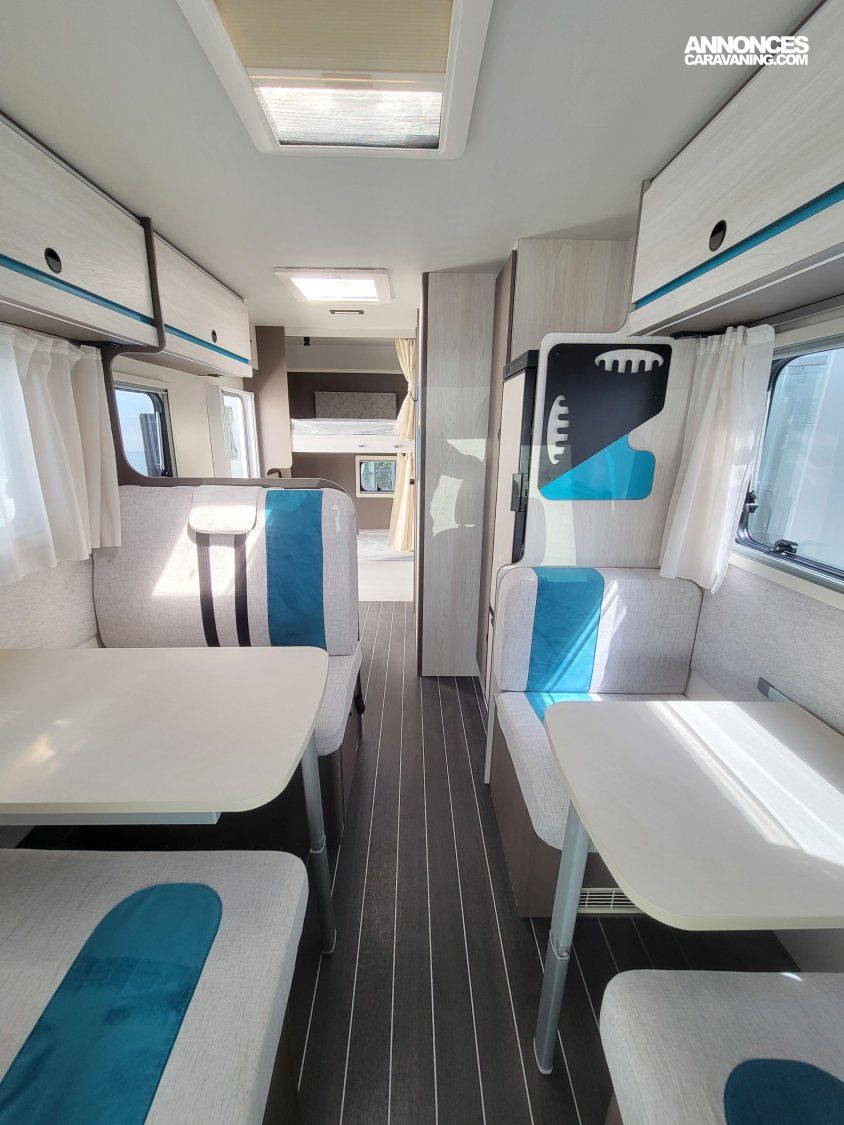 Il propose un intérieur lumineux avec grande dinette, cuisine complète, et salle d’eau avec douche séparée