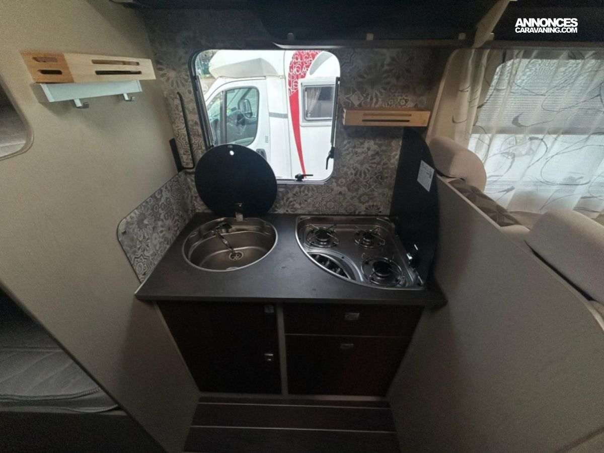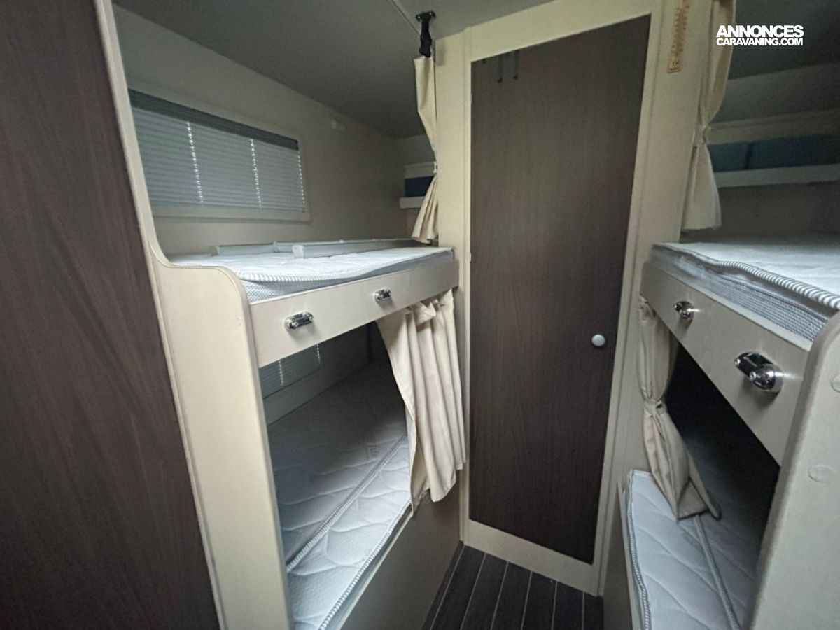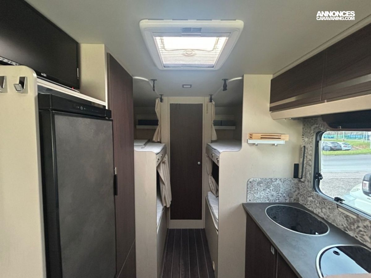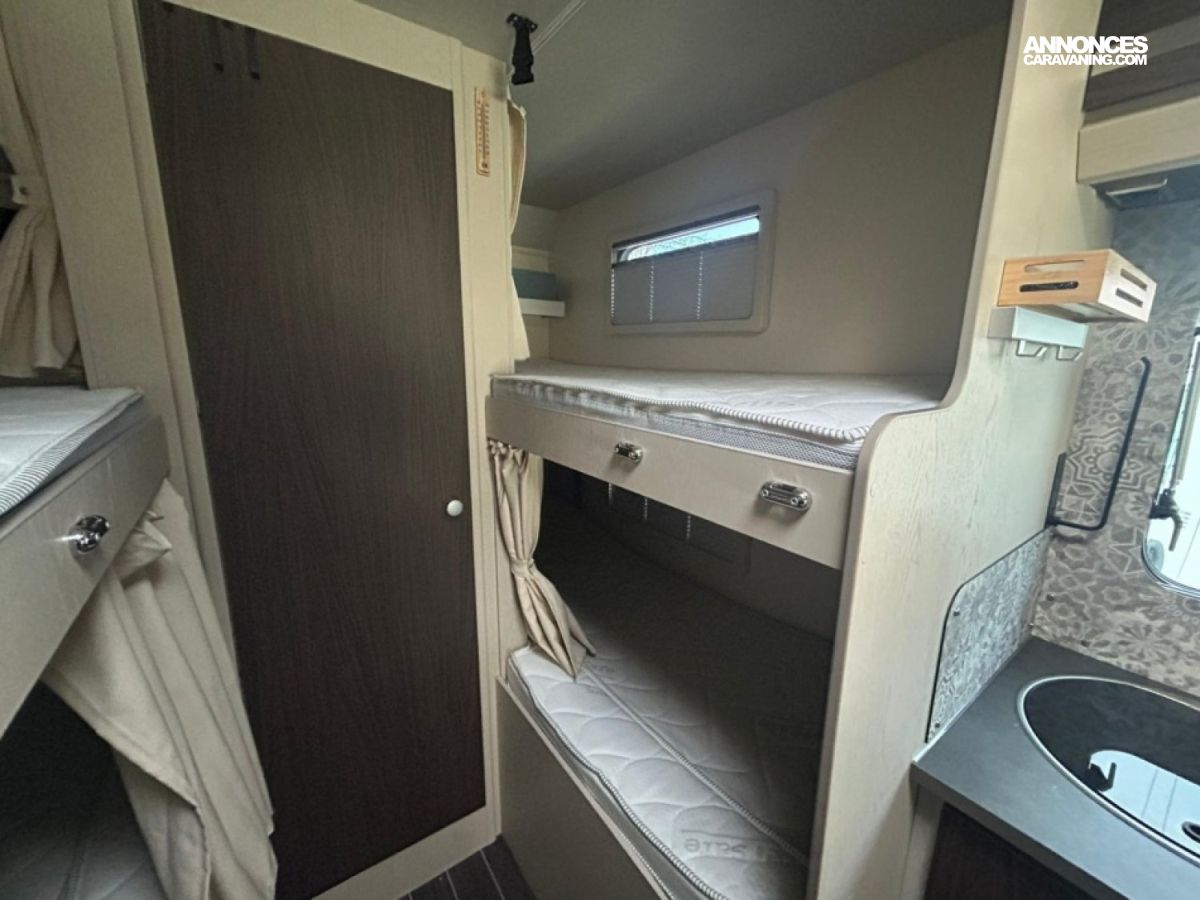 Ce camping car bien entretenue offre vrais 6 couchages permanents, dont 4 lits superposés à l’arrière et une chambre parentale en capucine. Il comprend un grand salon