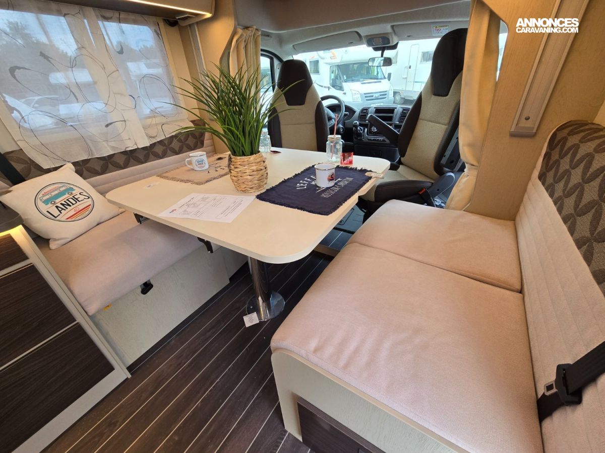 Découvrez ce profilé RIMOR SEAL 66 PLUS, spacieux en lit central et lit pavillon, douche et wc séparés et un jolie salon face/face en plus des sièges avant qui pivotent pour offrir un espace de vie plus agréable pour passer de bons moments avec vos proches.
