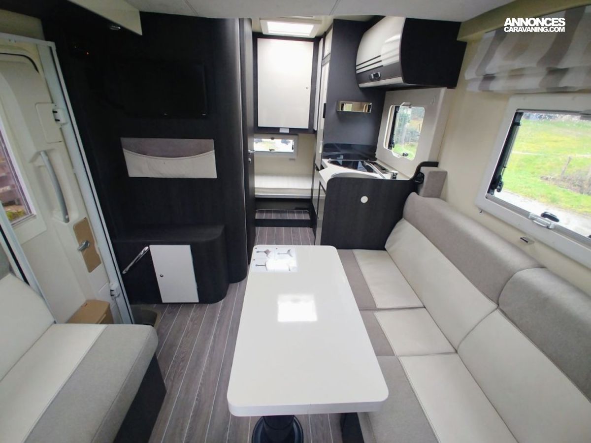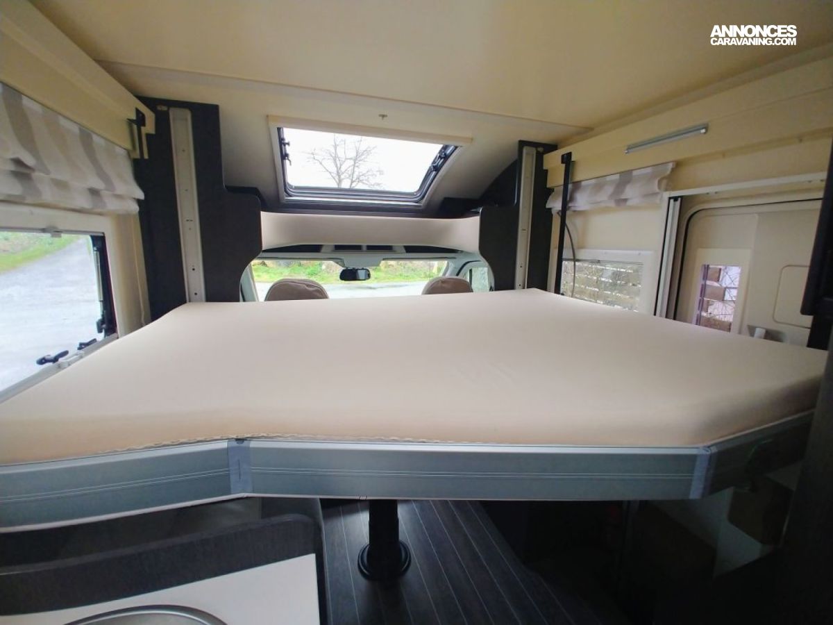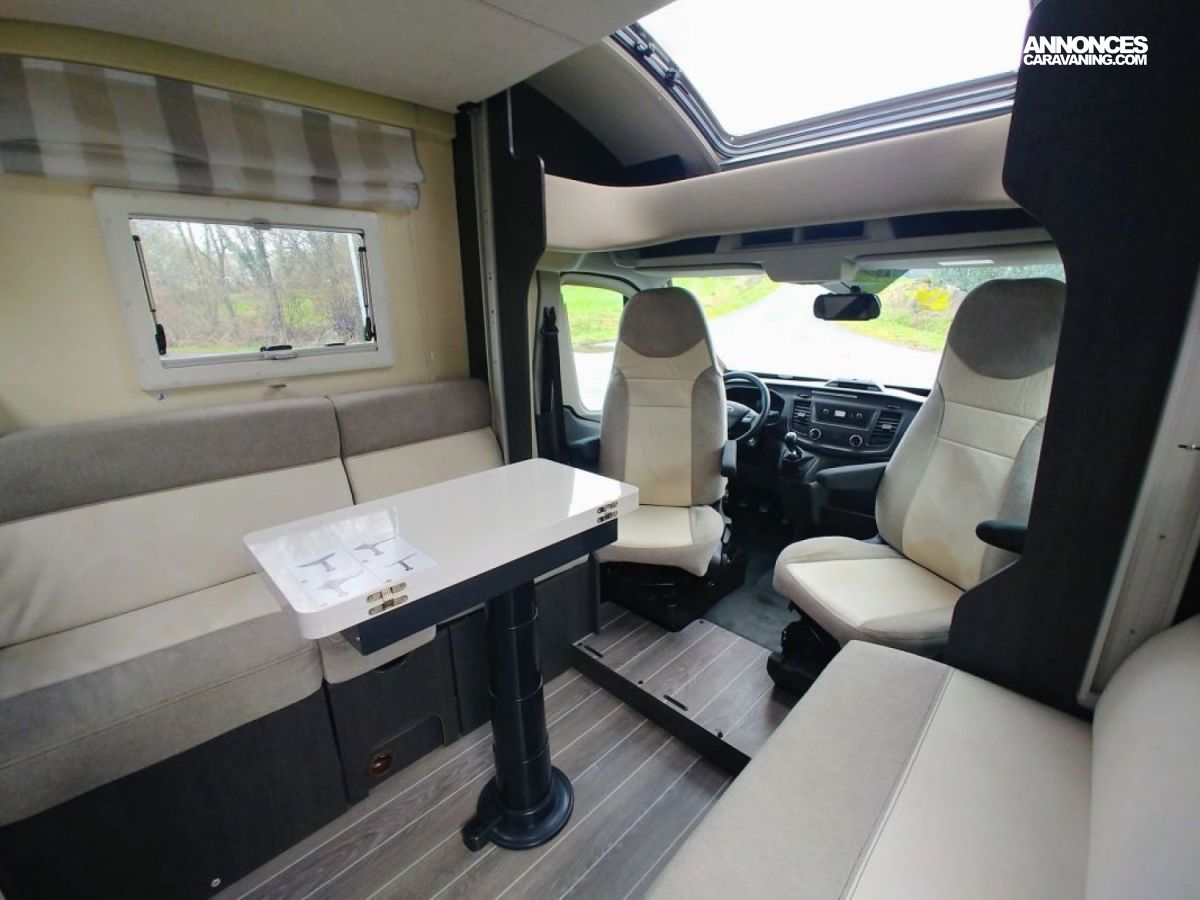 Petit camping-car de 6m20, très spacieux avec son salon face à face, espace lumineux, avec de multiples rangements et une importante charge utile.