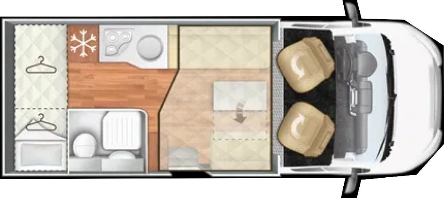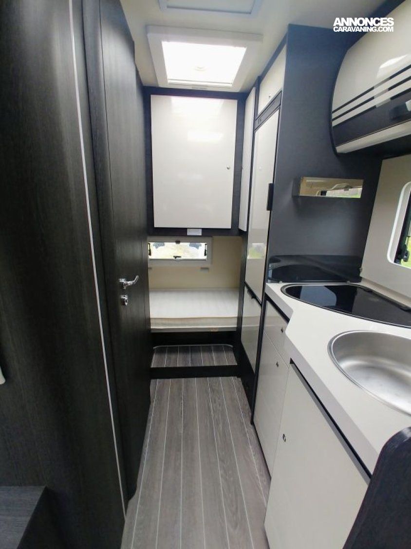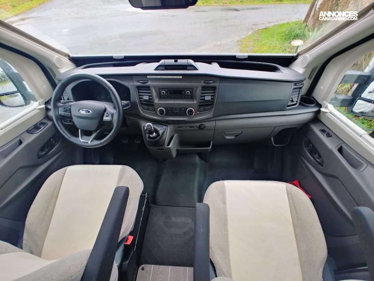 Petit camping-car de 6m20, très spacieux avec son salon face à face, espace lumineux, avec de multiples rangements et une importante charge utile.