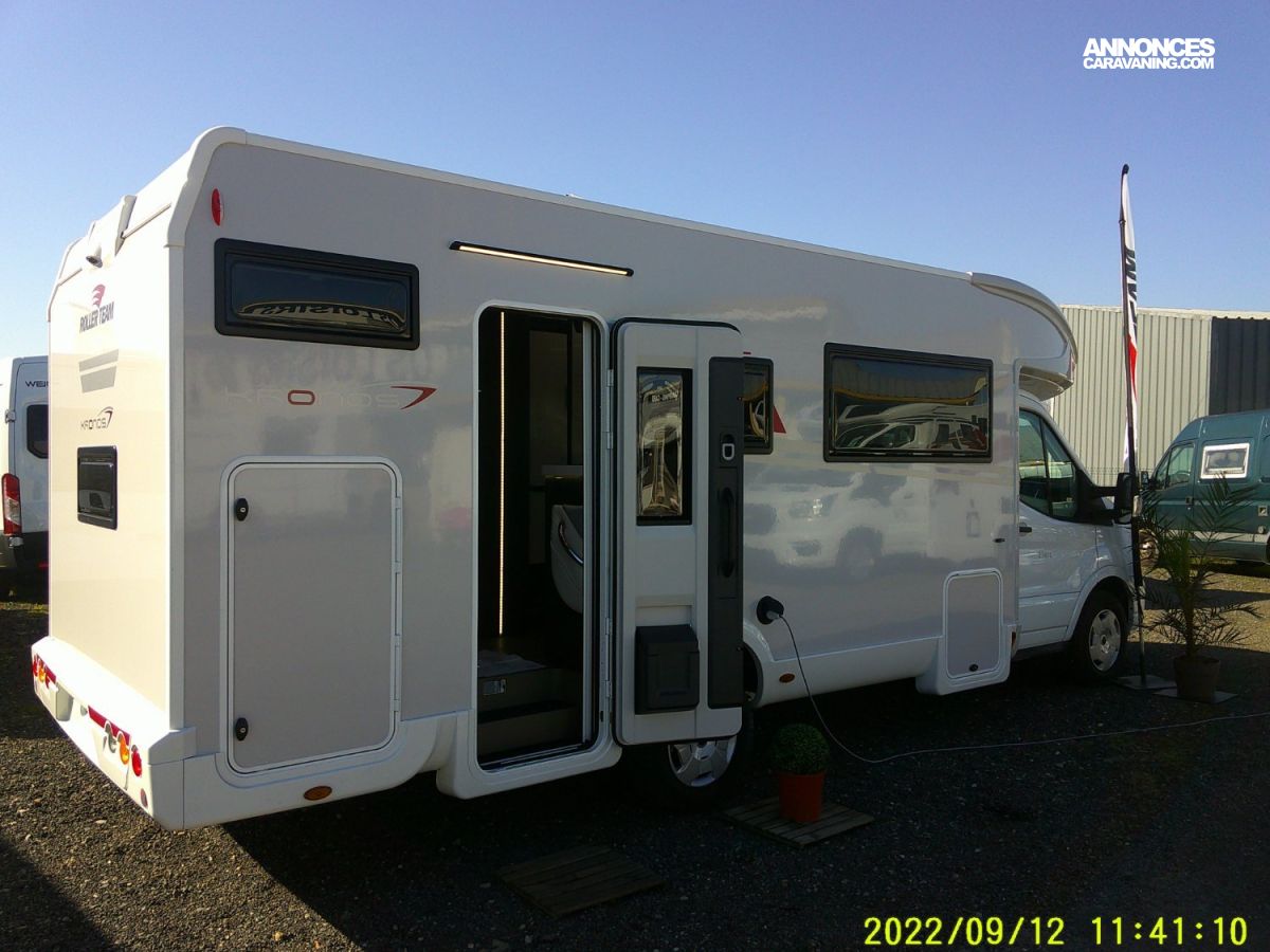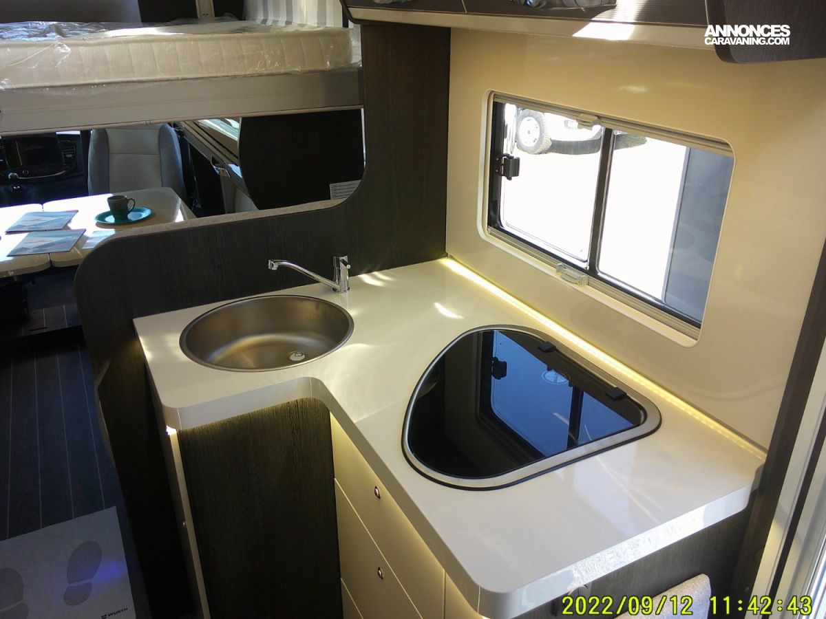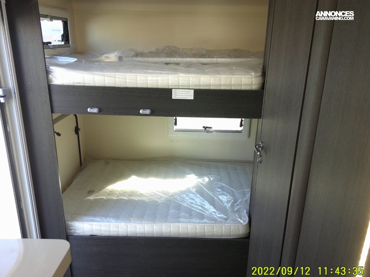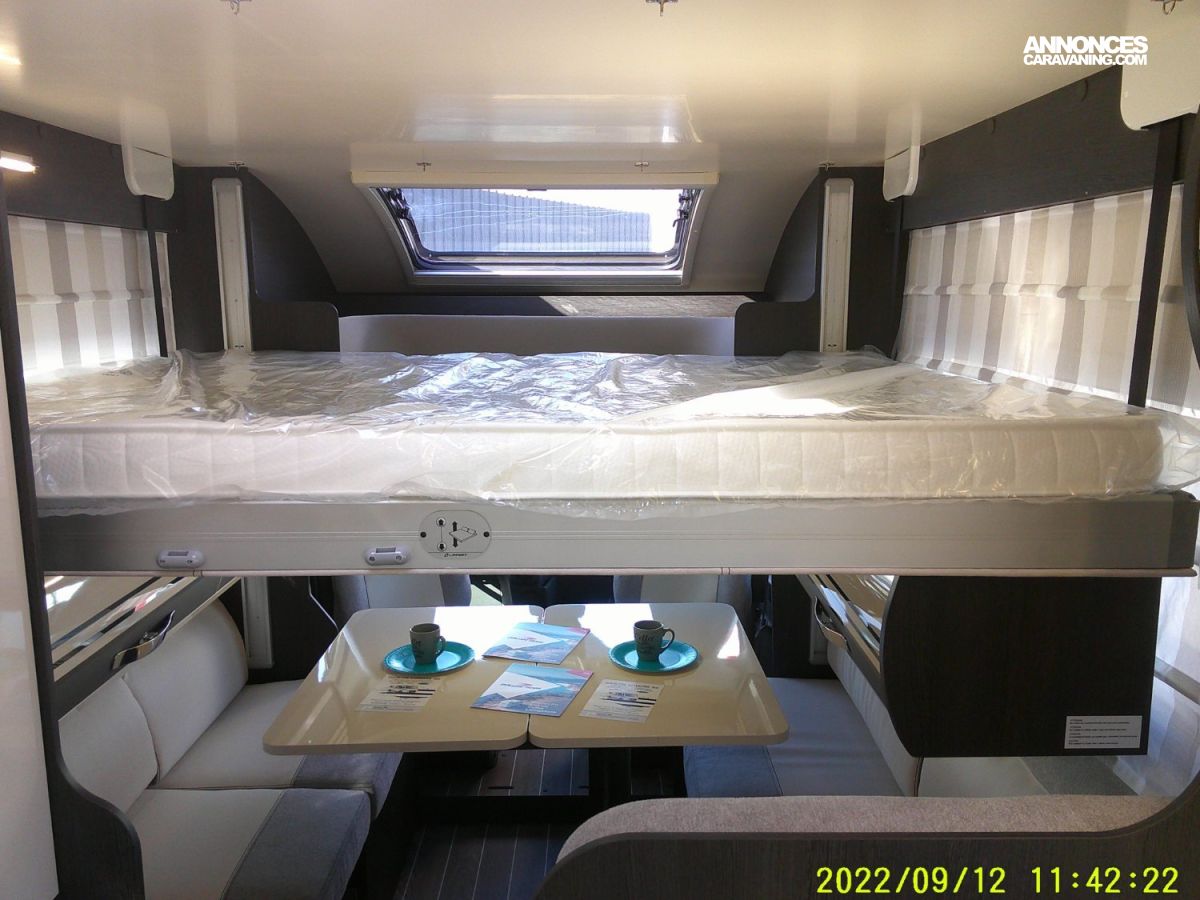 Lit arriere superposé, lit de pavillon électrique, cuisine en L, Maxi dinette transformable en deux lits simples, salle d'eau avec douche intégrée...