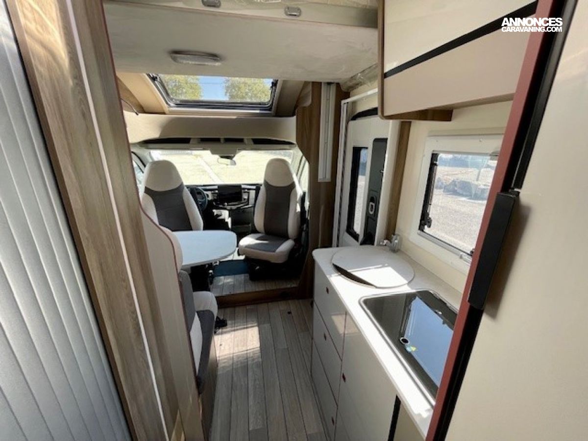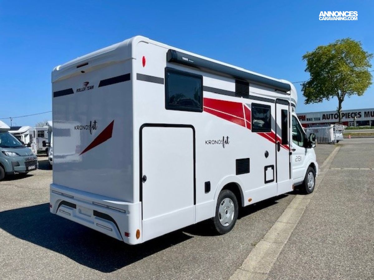 Boite à gants avec serrure, Habillage intérieur et tableau de bord finition "Trend", Pare-chocs et bas de caisse latéraux peints, PACK KRONOS FIT COMPRENANT, Motorisation 165CV, Feux diurnes, Porte XL avec 2 points de fermeture,baie et centralisation, Panneau solaire 200W avec régulateur MPPT, Panneau de commande CP-Plus, Skyroof, Couvercle évier, Housses de sièges cabine, Stores occultants plissés cabine