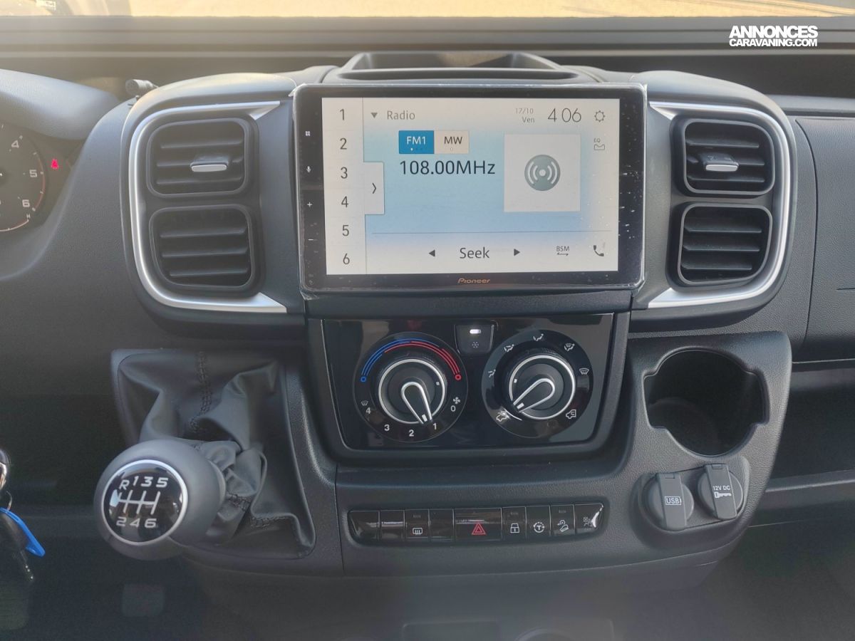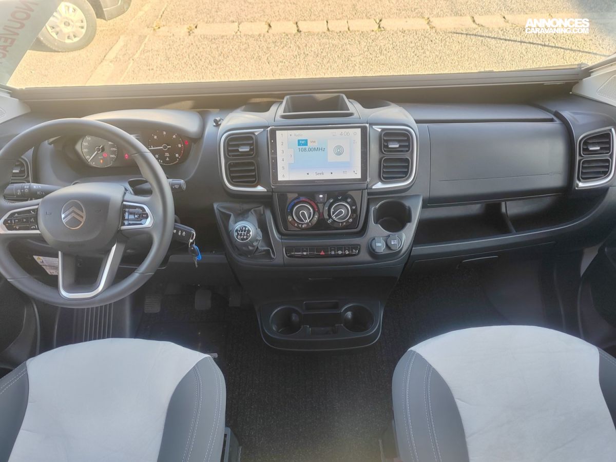Panneau de commande CP Plus, Lanterneau Midi Heki 700x500 dinette, Moustiquaire, Feux anti-brouillards, Frein à main électrique, PACK GO COMPRENANT :, Pare-chocs avant peint, Eclairage extérieur, Store occultant cabine, Calandre noire, Jantes alu 16", Volant et pommeau cuir, Marchepied électrique, Multimédia Pioneer 9", Caméra de recul