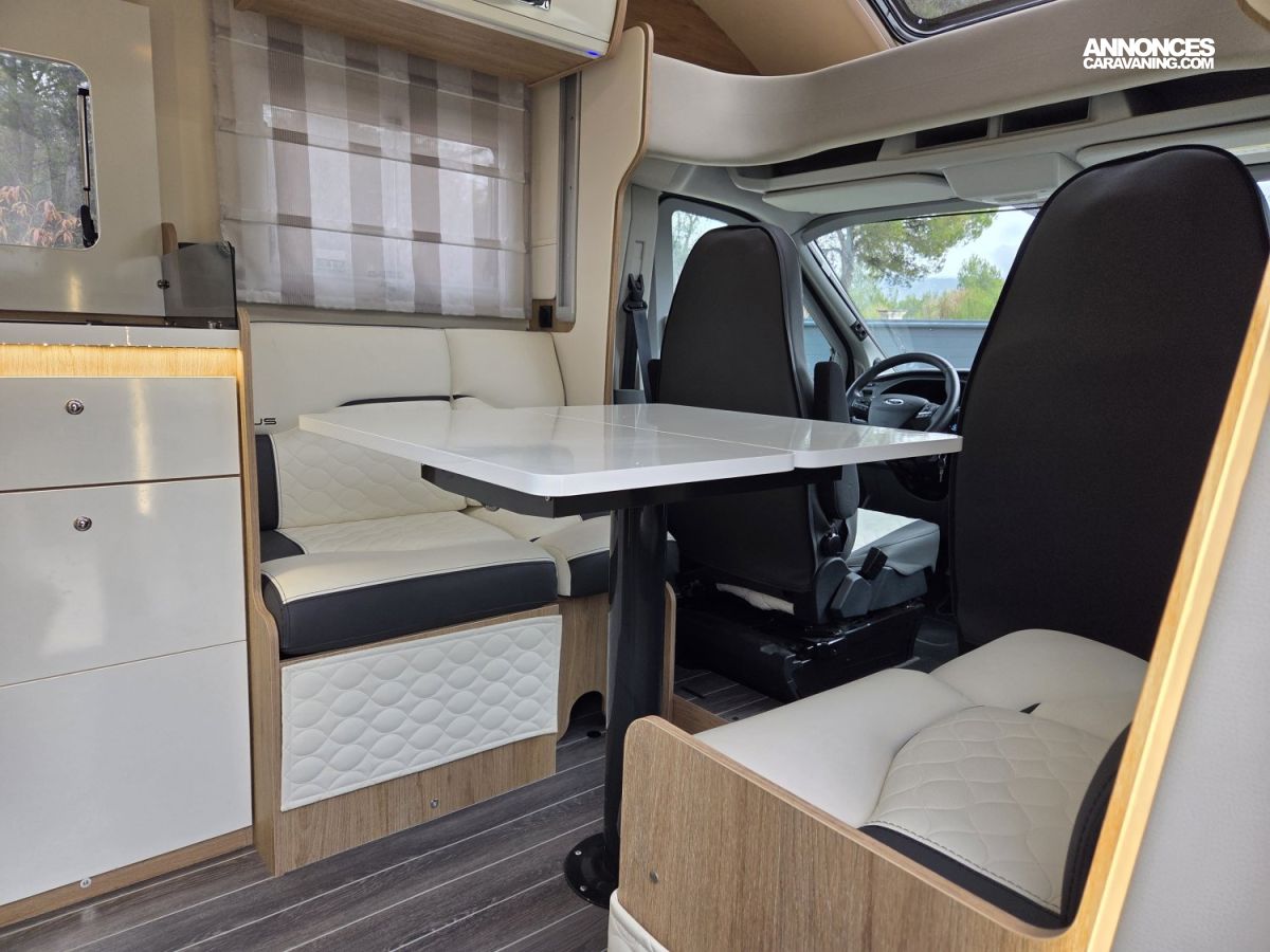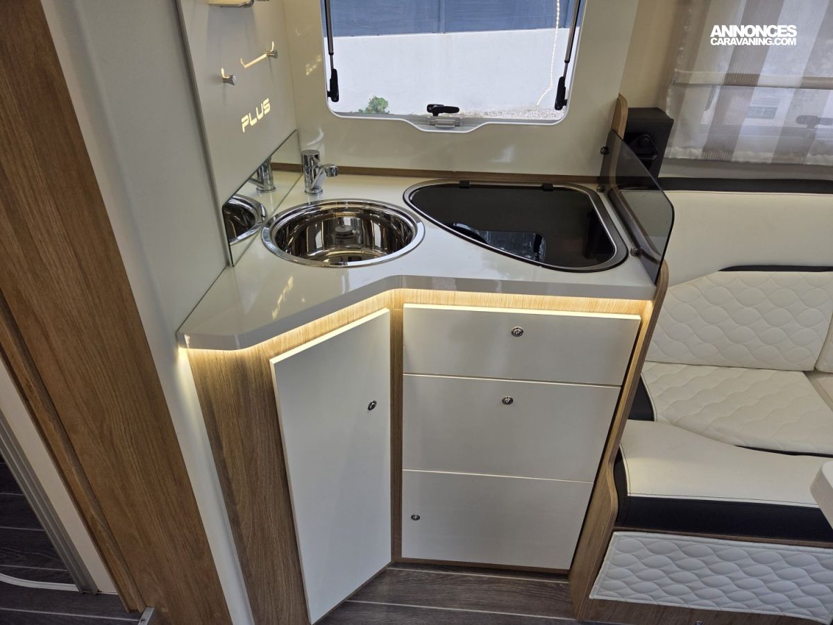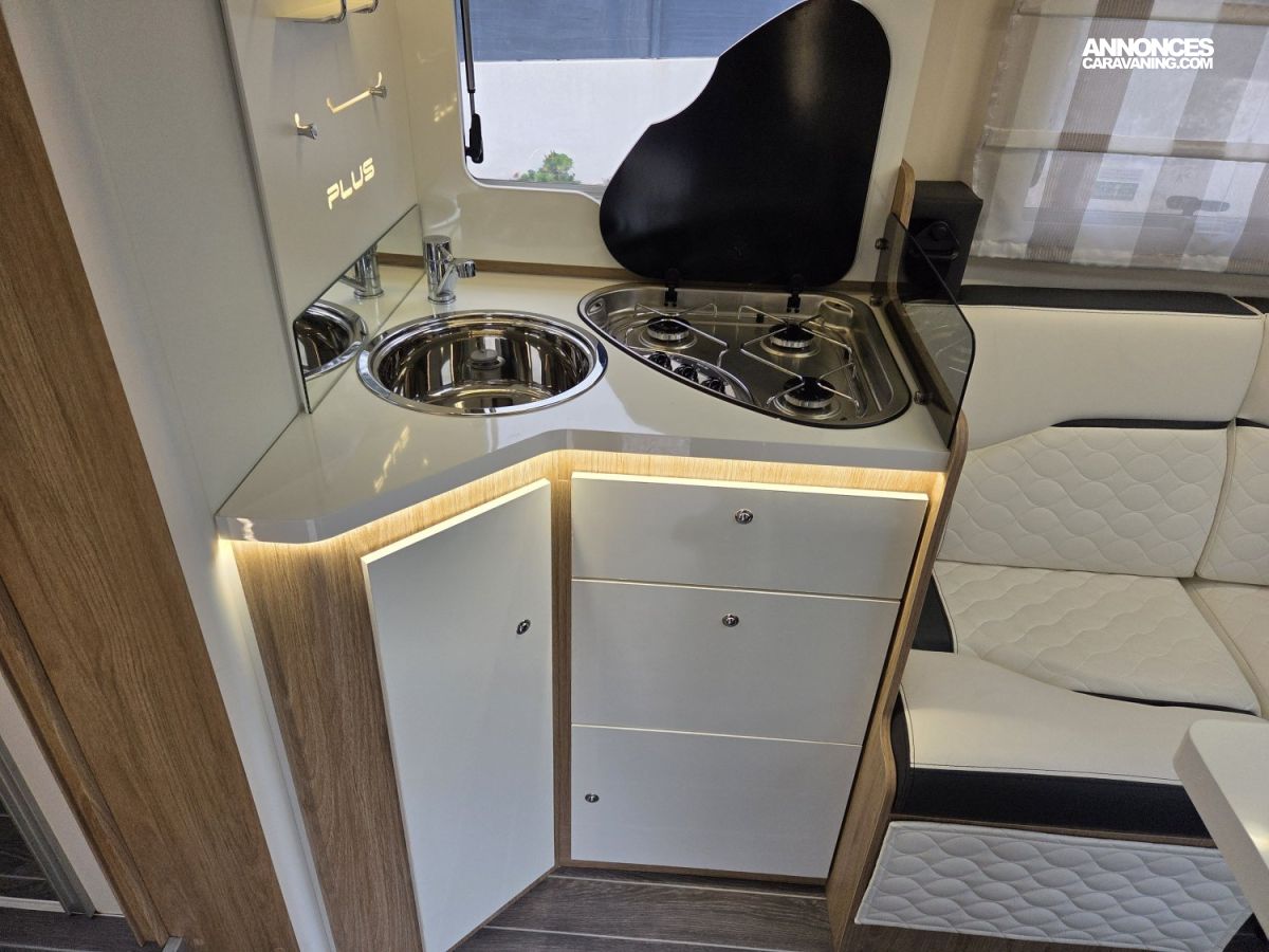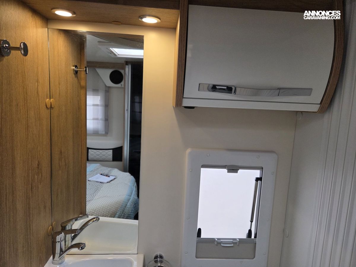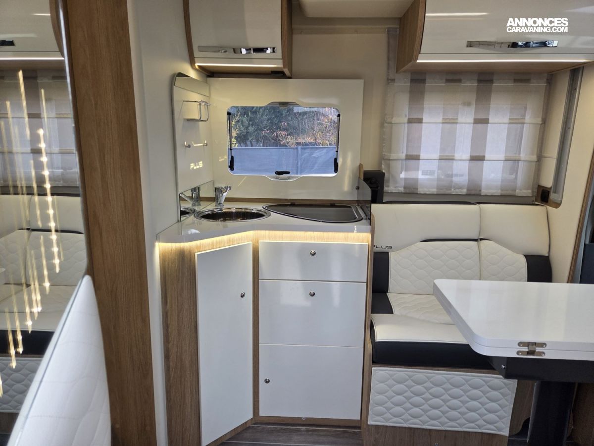 CHAUFFAGE COMBI TRUMA 4, FRIGO 140L AVEC TIROIR 9BOUTEILLES, STORE EXTERIEUR 4.5M, GAZINIERE 3 FEUX, FENETRE SDB, PORTE SEPARATRICE, CUISINE EN L, DOUCHE ET WC SEPARES, ECLAIRAGE LED, MOQUETTE CELLULE, MOUSTIQUAIRE DE PORTE CELLULE, REFRIGERATEUR TRI MIX, STORES PLISSES DE CABINE, SALON FACE A FACE, SUN ROOF OUVRANT