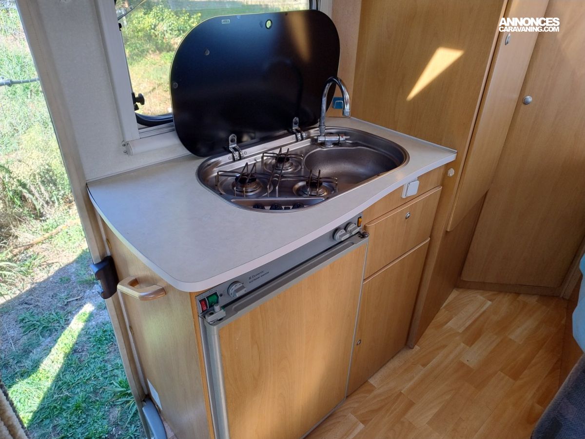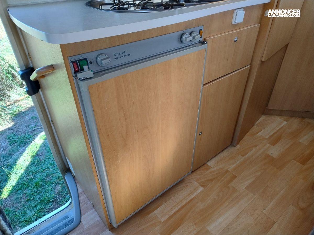 Une implantation idéale pour un couple : un lit permanent à la française à l’arrière avec matelas neuf pour encore plus de confort et un salon à l’avant pouvant se transformer en couchages supplémentaires. Une cuisine bien équipée aux nombreux rangements pour ce gabarit avec frigo-congélateur, une salle d'eau fonctionnelle et lumineuse. Le tout complété par une grande soute accessible depuis l’intérieur.