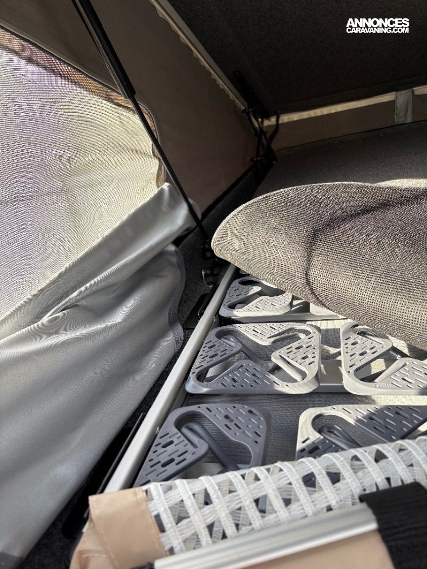 #toile SOFTSHELL Stylevan Origin toit relevable (occultante et Isolante +++pour usage hivernal toit ouvert ) avec option 2 ouvertures latérales en plus . Moustiquaires aux 3 ouvertures .