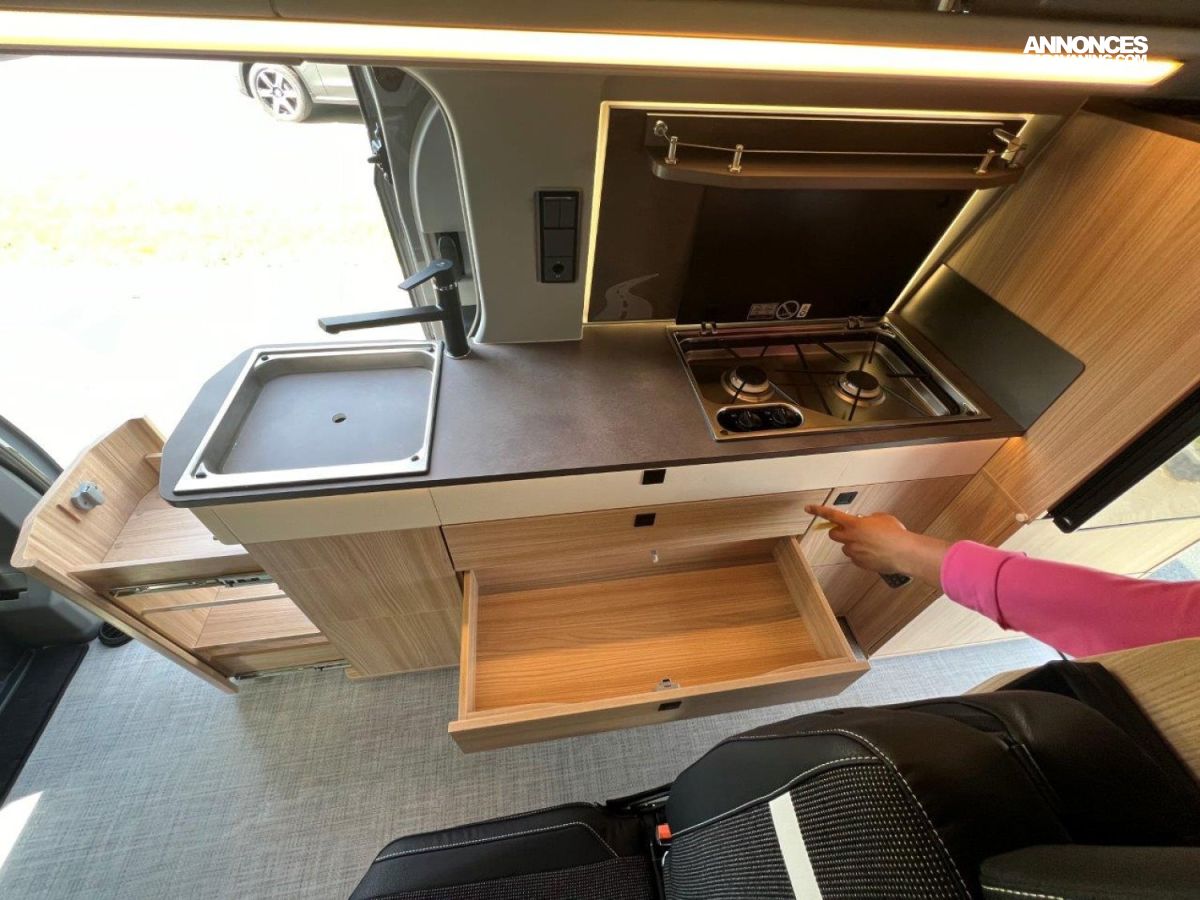 La banquette BZ électrique qui se transforme en un lit double en un clin d’œil. Avec ses portes doubles latérales, il offre un accès optimal à un intérieur spacieux, comprenant un salon confortable et une cuisine équipée. Idéal en toutes saisons, grâce à son isolation, ses équipements de chauffage, d’eau chaude et ses sanitaires intégrés, le nouveau Belize peut accueillir jusqu’à 4 personnes.