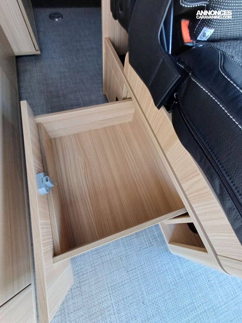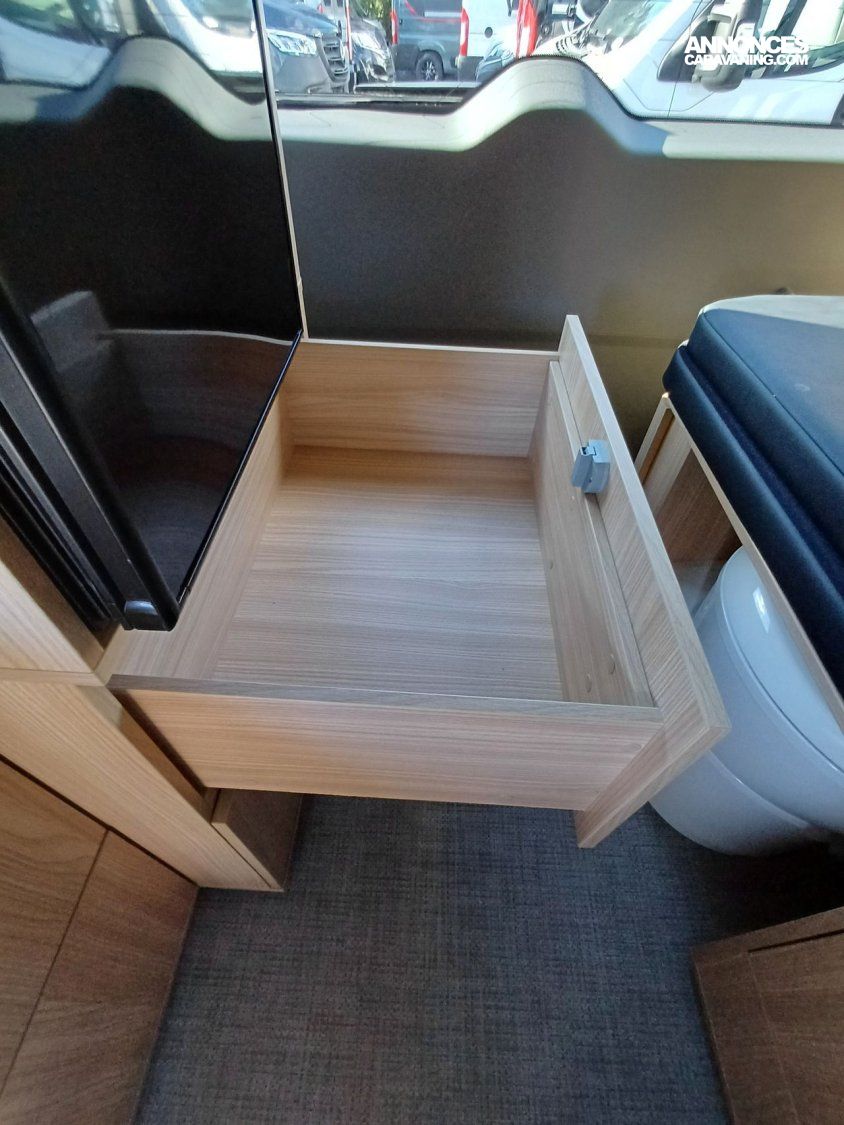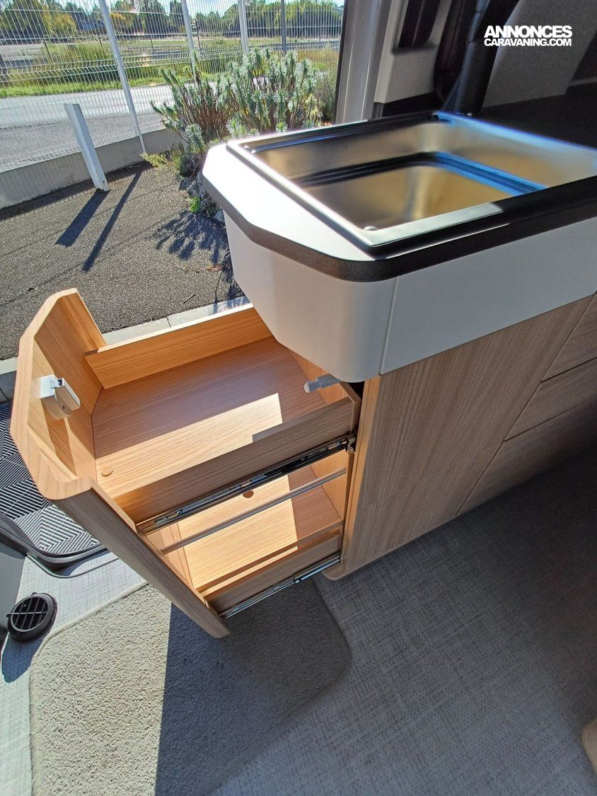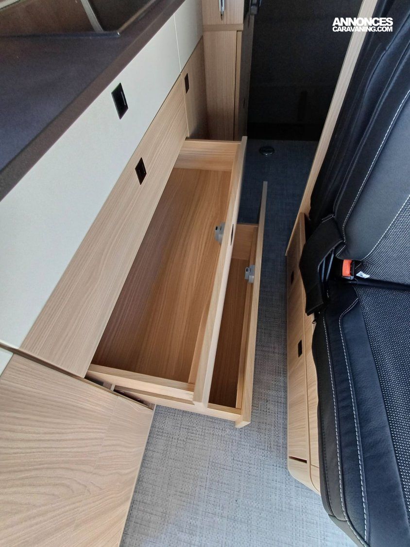 - Pack Custom : Pré-disposition solaire, banquette BZ électrique, chauffe-eau (avec boiler 10 l) Truma, batterie cellule AGM 92 AH, sacoche avec 2 fauteuils et table camping, tapis cabine, variateur de luminosité, 2ème porte latérale vitrée à gauche, rideaux opacifiants.