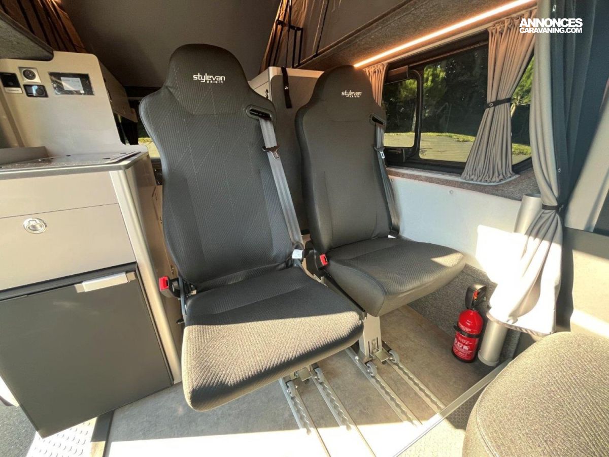 Le STYLEVAN EQUINOX IV est un van aménagé dont sa modularité est au service de votre confort. Au quotidien, vous pouvez utiliser ses 2 sièges arrière extractibles très facilement lorsque vous partez en couple ou à 3.
