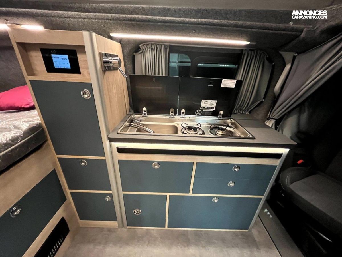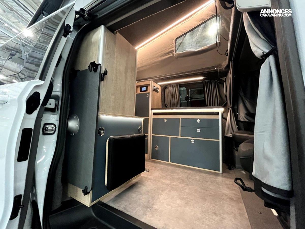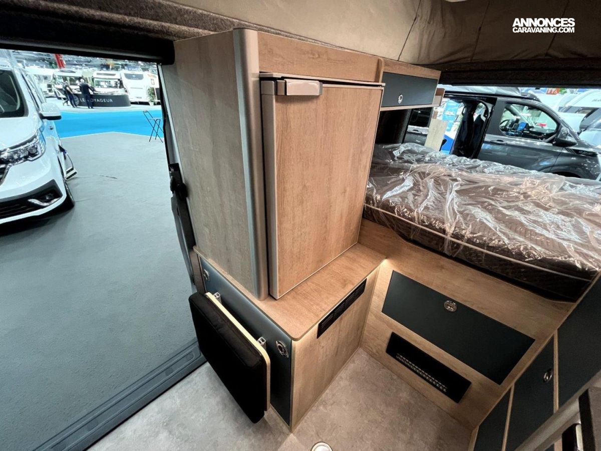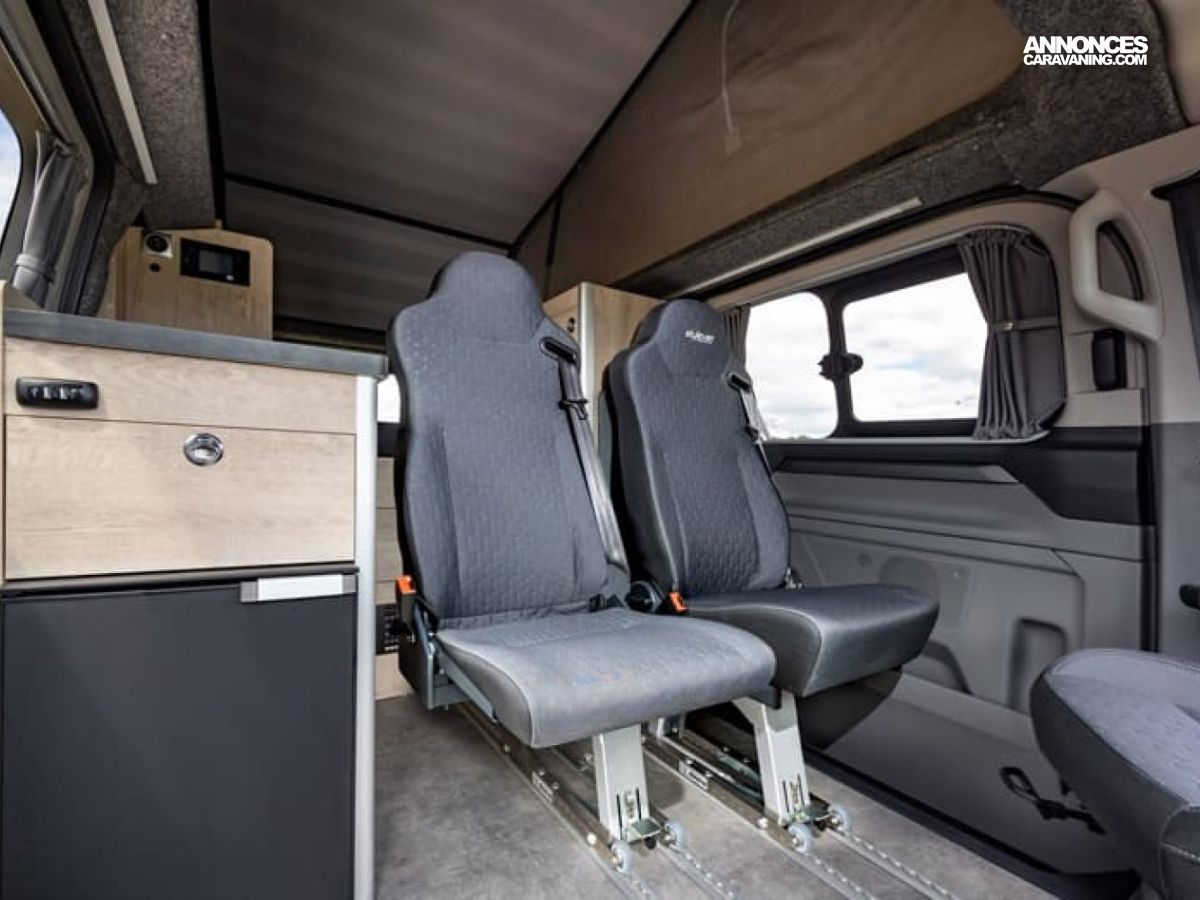 - Autonomie complète : batterie lithium 150 Ah, réfrigérateur compression, éclairage LED.