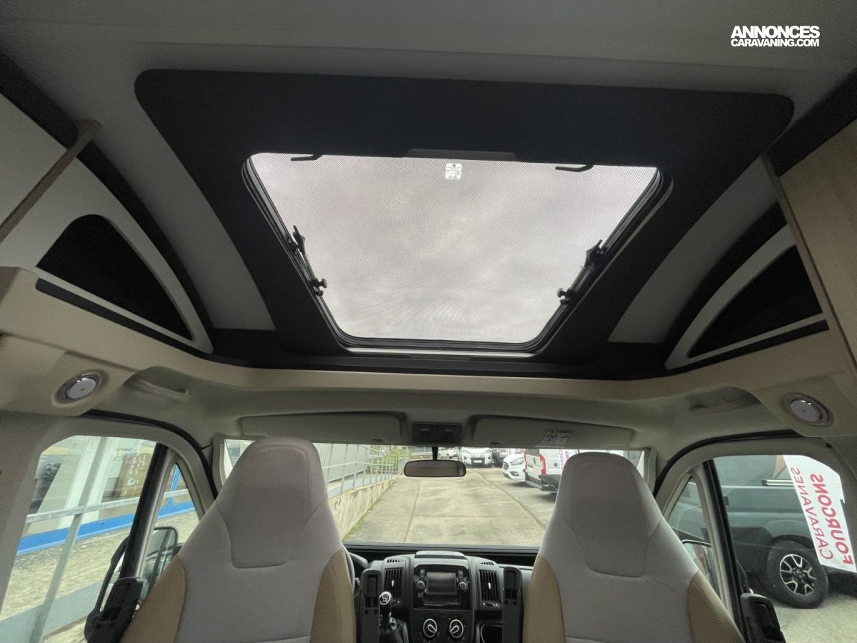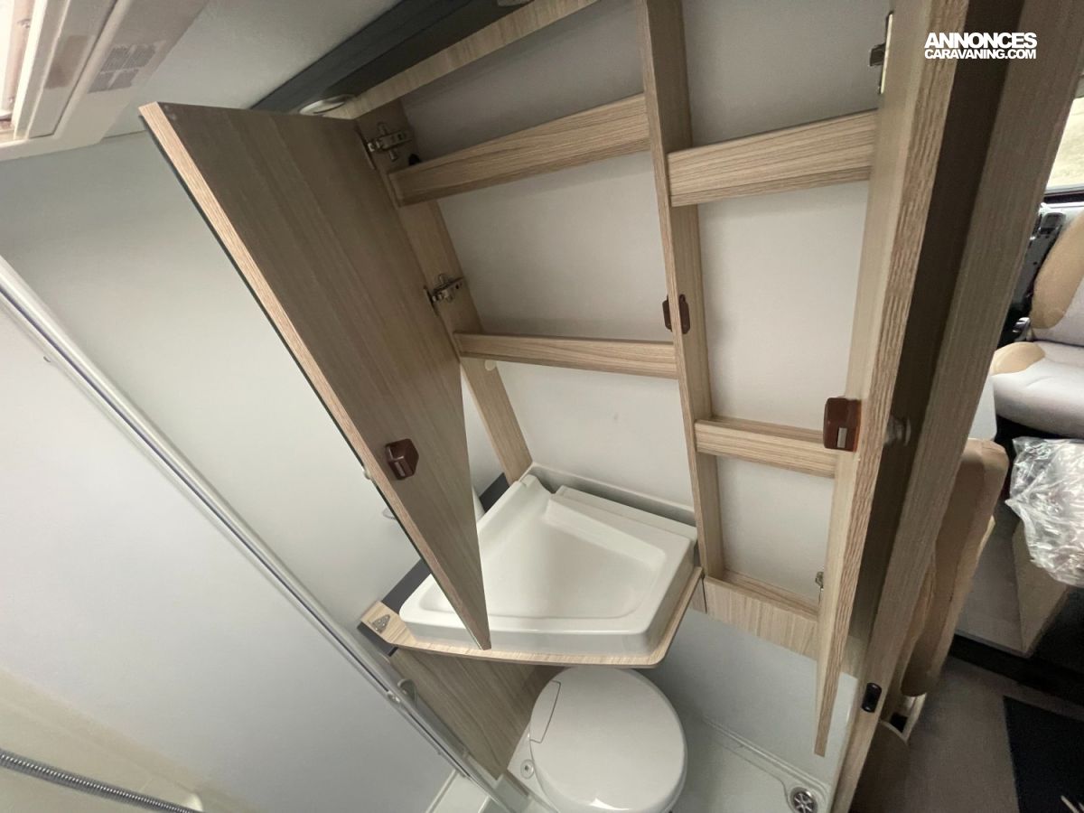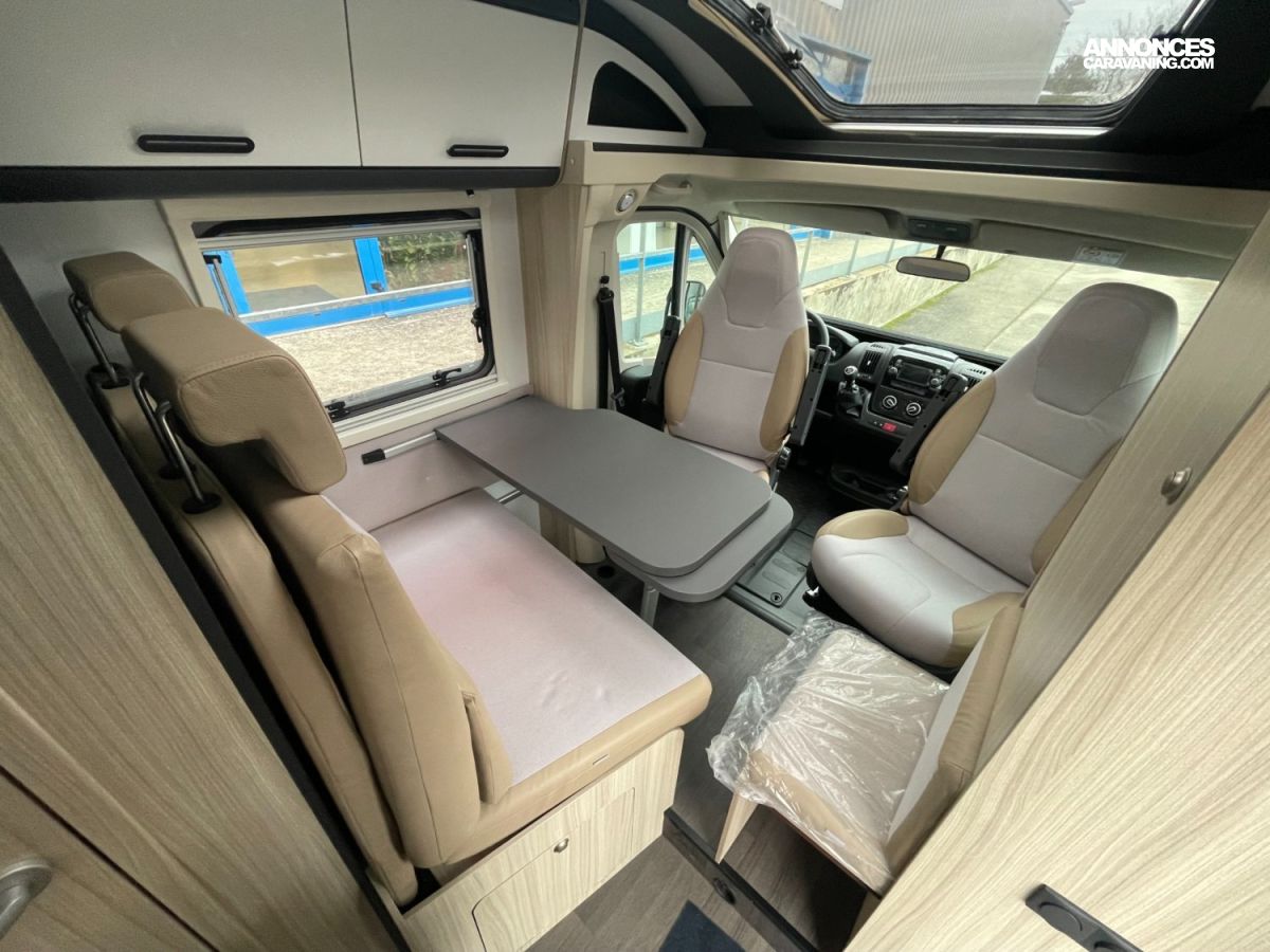 Plancher double en salon, Pack Fix & Go FIAT, Marche-pied isolé, ESP Citroën, Cruise control avec limitateur de vitesse Citroën, Chauffage gaz Truma Combi 4 avec chauffe-eau, Air conditionné manuel, Prises USB dans le salon et la chambre, Porte gobelets central, Porte d'entrée sans fenêtre, verrouillage 1 point, Allonge de table, Airbag passager, Sièges Captain chairs Citroën avec accoudoirs et garnissage, Réfrigérateur à compresseur 70L, Rétroviseurs extérieurs avec fonction dégivrage