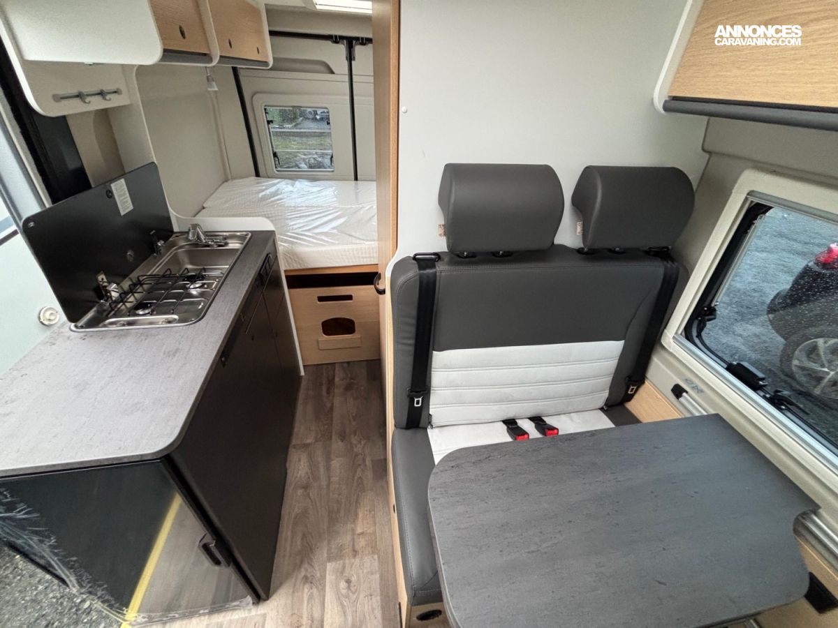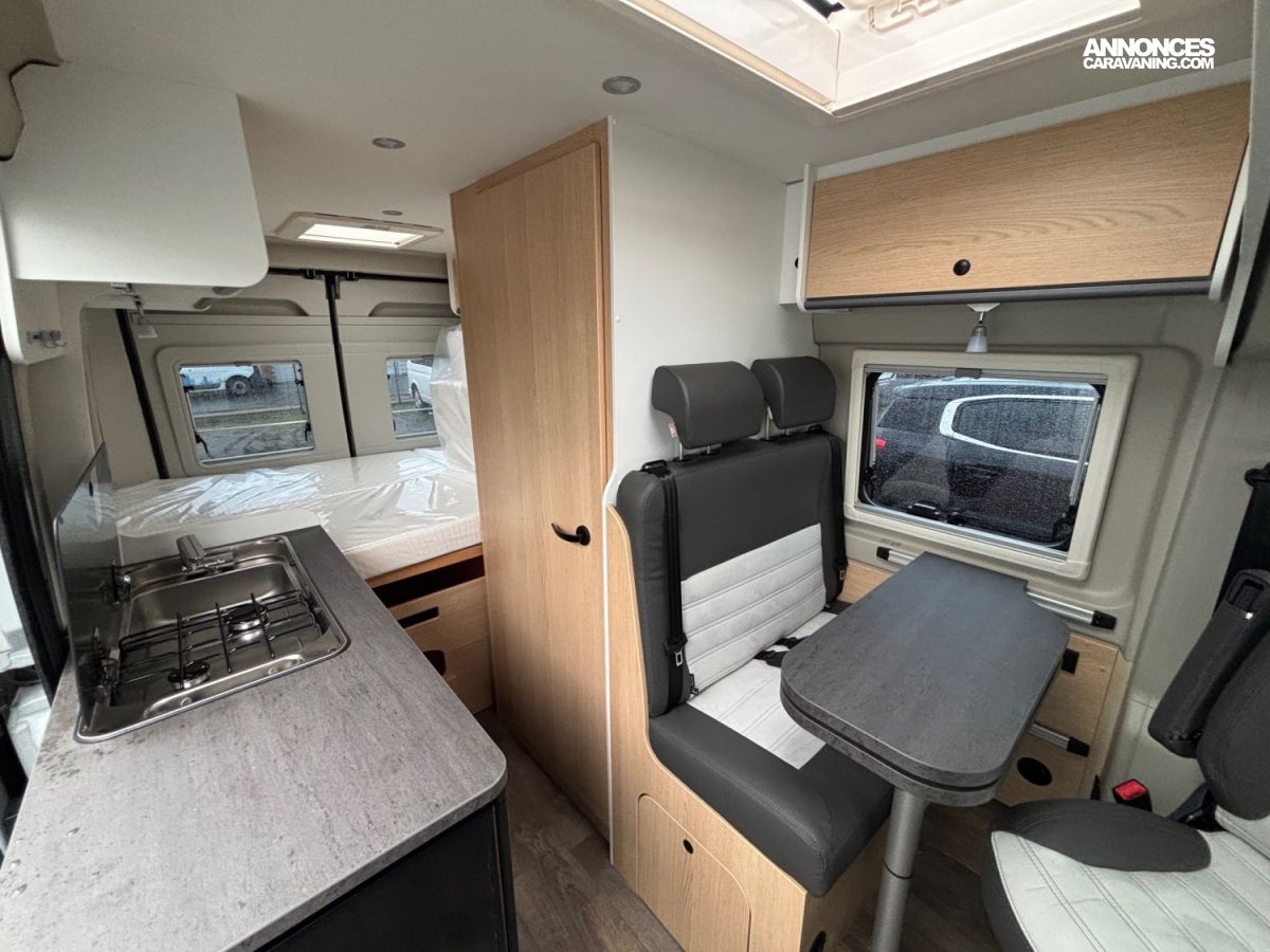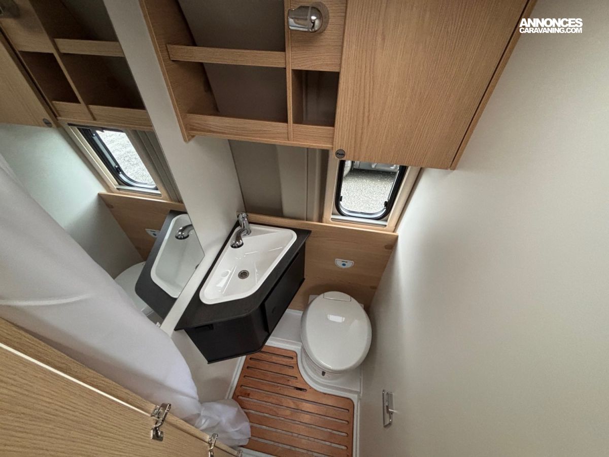 Stickage Adventure, Ambiance intérieure Adventure, Store extérieur (noir), Lanterneau panoramique 70 x 50 cm, Pack Douche, Baie dans le cabinet de toilette, Tringle à vêtements dans la salle d eau, Large marchepied, Rallonge de table dans la dînette, Pare-chocs avant laqué, Jupe du pare-chocs avant de couleur noire, Feux antibrouillard, Jantes aluminium 16″