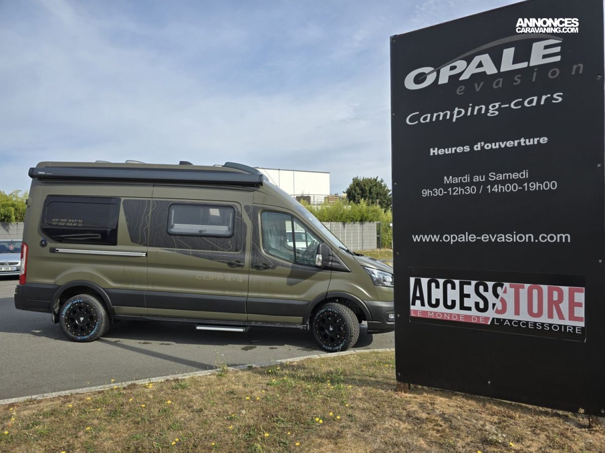 Équipement CLIFF 4×4 Green TrekFord Transit 3.500 kg | 2.0 l | 122 kW (165 ch) | EURO 6 | boîte de vitesses manuelle à 6 rapports 4×4 transmission intégrale