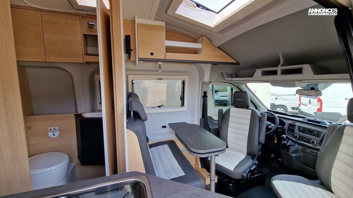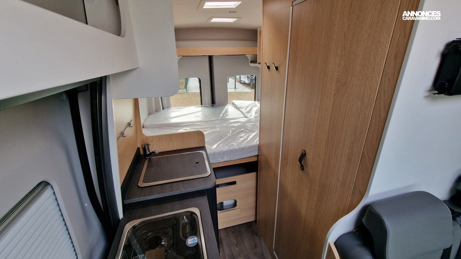 Il dispose de tout le nécessaire pour voyage sereinement : couchage, coin cuisine, rangements et autonomie pour plusieurs jours.