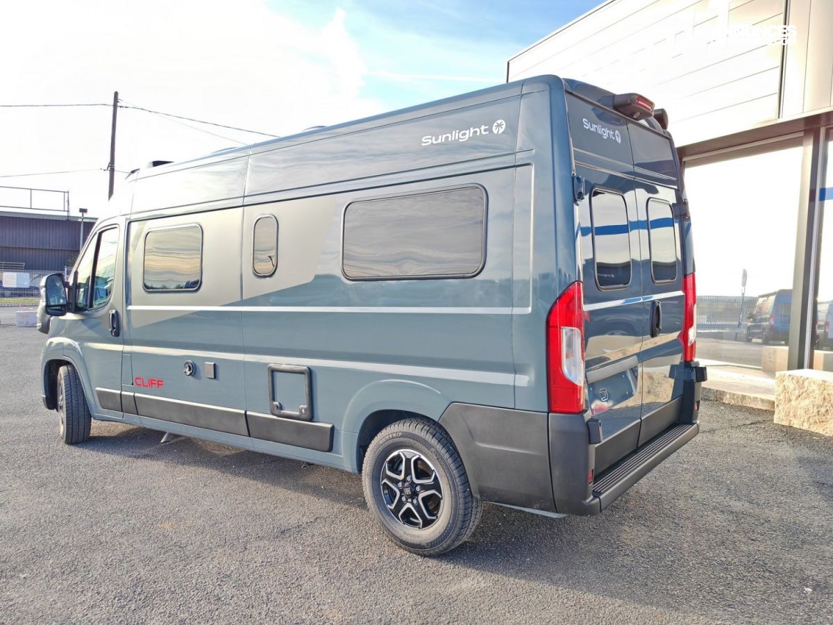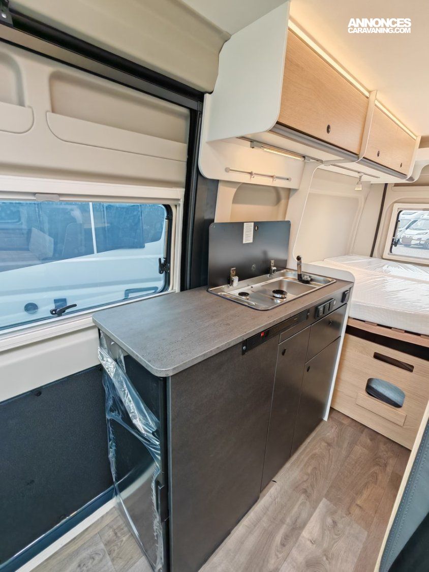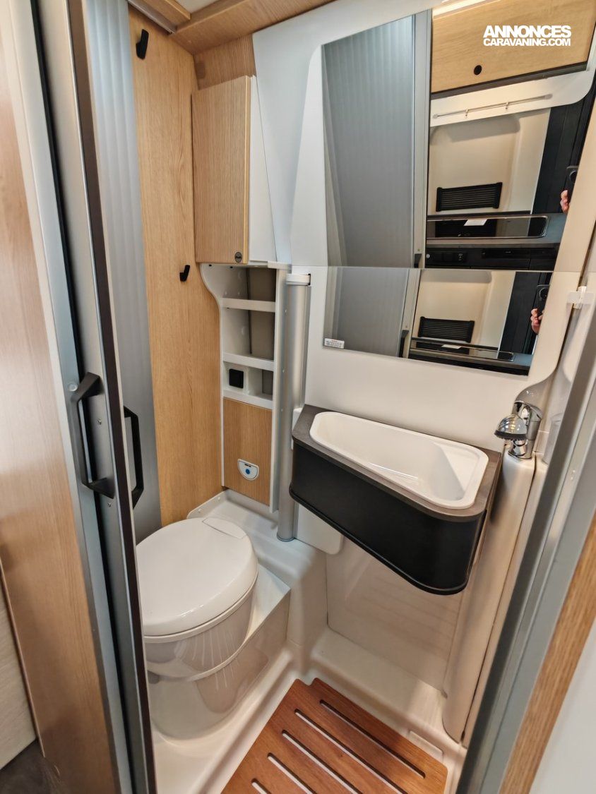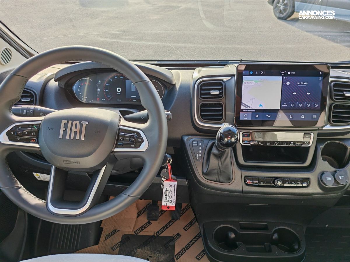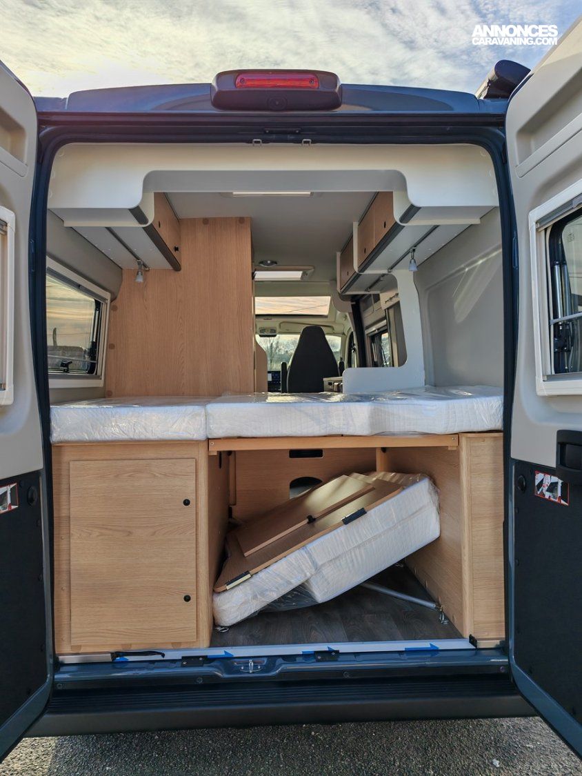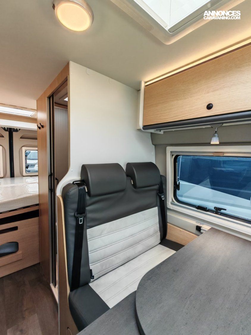 - Pack "Cliff X" (baie dans la salle d'eau, tringle à vêtements dans la salle d'eau, marchepied électrique, rallonge de table dans la dînette, grand lanterneau, pack douche, châssis 3T500, motorisation 140 Cv, stickage et sellerie "Adventure", placard de pavillon avec éclairage LED, placards de pavillon périphériques à l'arrière, lanterneau Skyview de cabine, baies à cadre, store, pare-chocs avant laqué, jupe avant de couleur noire, feux antibrouillard, volant et pommeau de levier de vitesse en cuir, tableau de bord avec finition aluminium "Techno-trim", jantes alu 16" bi-ton),