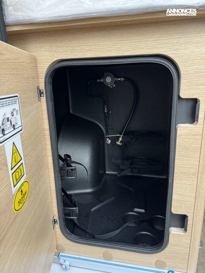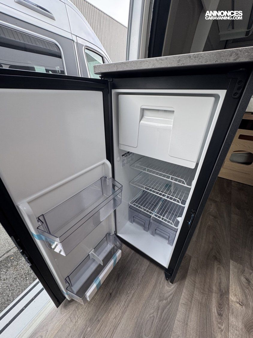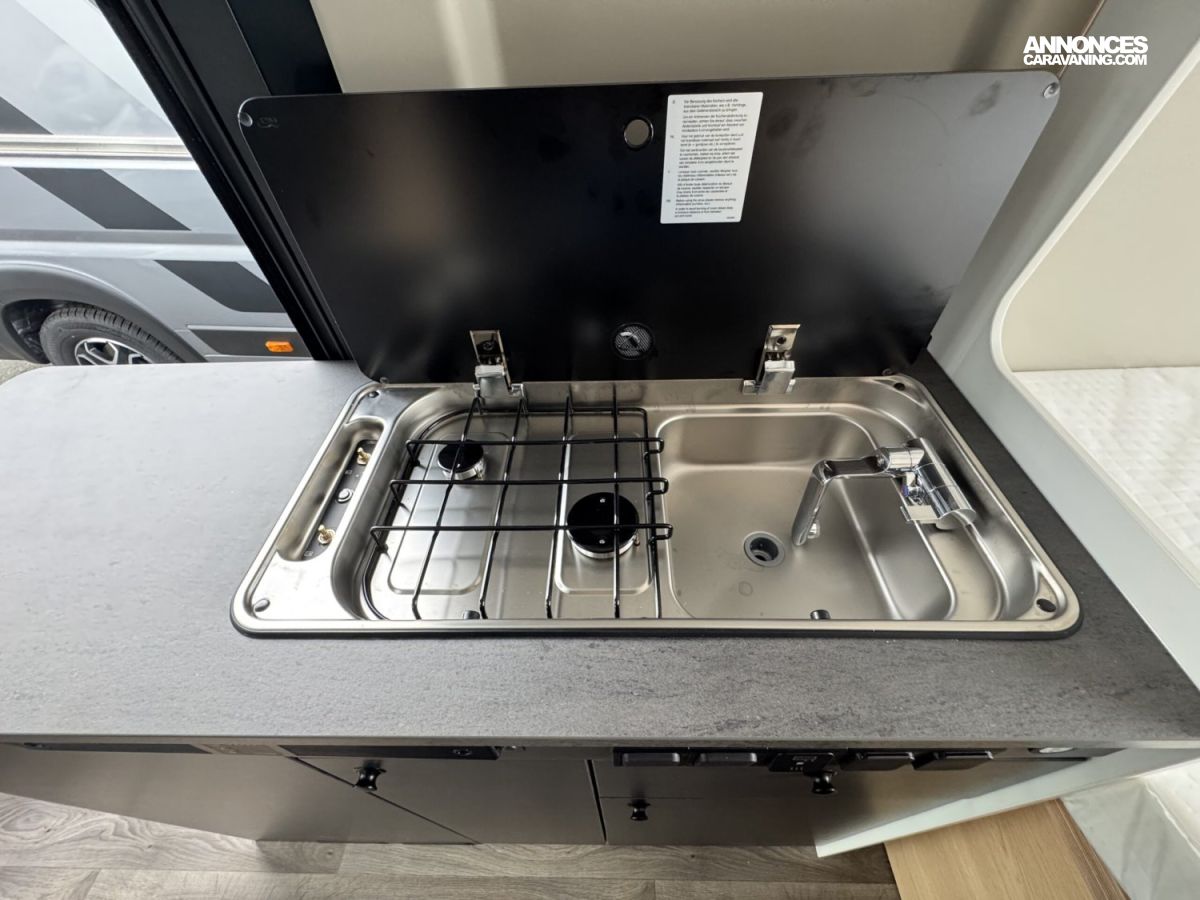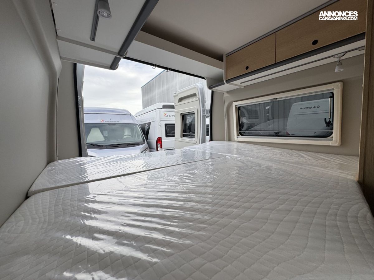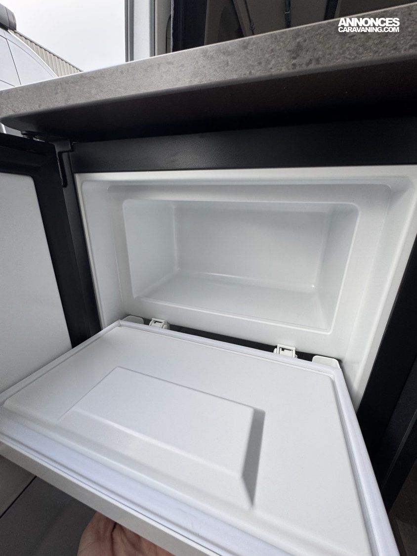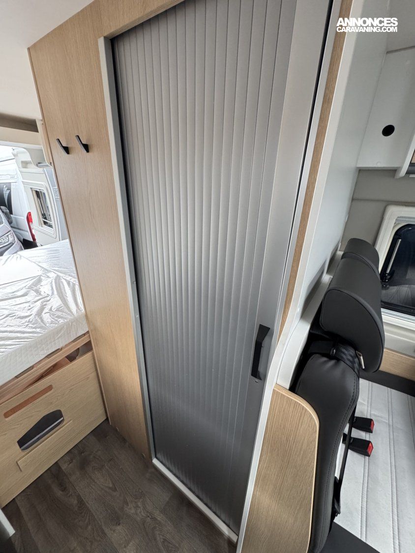 Volant et pommeau du levier de vitesses en cuir, Tableau de bord avec finition aluminium (Techno-Trim), Store Noir, SKYVIEW, Baies à cadre, Douche VARIO, Lanterneau panoramique 70 x 50 cm | Pack Douche | Baie dans le cabinet de toilette | Tringle à vêtements dans la salle d’eau | Large marchepied |Rallonge de table dans la dînette…