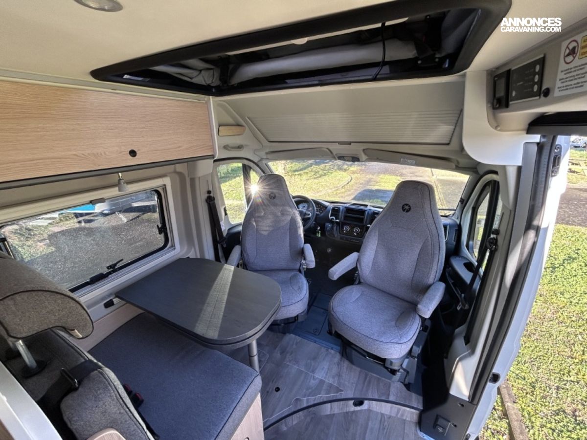 PACK SOLEIL (Porte-cellule avec baie et moustiquaire / lanterneau panoramique 70*50 / Lanterneau transparent 40*40) + PACK JANTES ALU BI-TON (Volant et pommeau en cuir / tableau de bord finition alu / jantes alu 16") + BAIES A PROJECTION AVEC DOUBLE VITRAGE, MOUSTIQUAIRES ET STORES + SYSTEME ISOFIX + MOUSTIQUAIRE DE PORTE + FRIGO A COMPRESSION + LAVABO FIXE + LANTERNEAU AVEC MOUSTIQUAIRE DANS WC