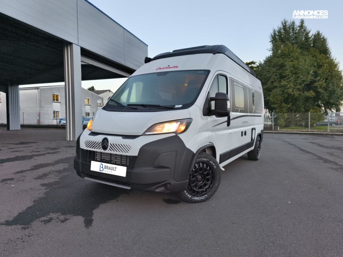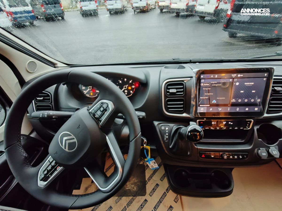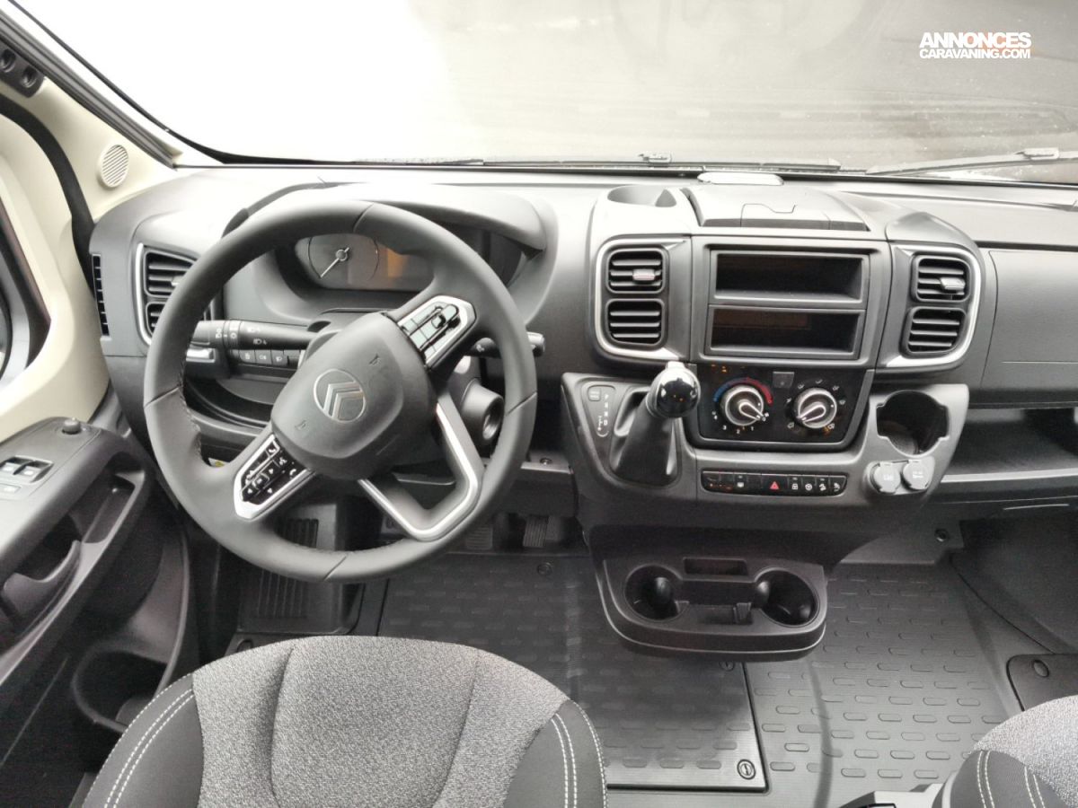 Citroën Jumper 3.500 kg | 2.2 l | 103 kW | 140 ch | Euro 6 | boîte de vitesses manuelle à 6 rapports, Blanc Citroën, Stickage Adventure, Ambiance intérieure Adventure, Pare-chocs arrière avec parties thermoformées montantes, Lanterneau panoramique de cabine, Baies à cadre, Portillon de service côté gauche (dimensions selon implantation), Grand réfrigérateur 156 l, dont freezer séparé 29 l, Modification des lits jumeaux en lit double, Bandeau lumineux entre feux arrière, Porte cellule de qualité avec baie, Porte cellule avec moustiquaire, Lanterneau panoramique 70 x 50 cm, Lanterneau transparent 40 x 40 cm, Pare-chocs avant laqué, Jupe du pare-chocs avant de couleur noire, Feux antibrouillard, Volant et pommeau du levier de vitesses en cuir, Tableau de bord avec finition aluminium (Techno-Trim), Jantes aluminium 16" bi-tons