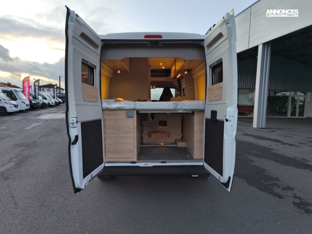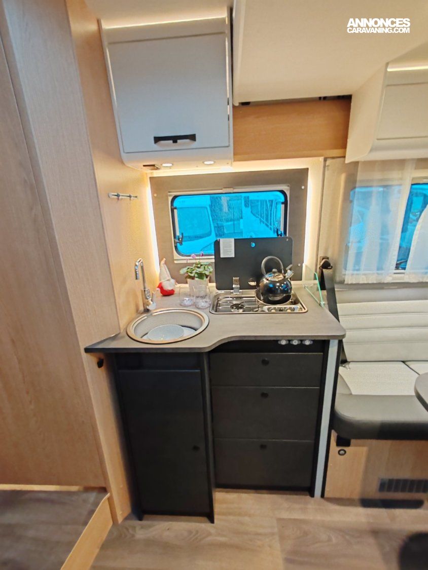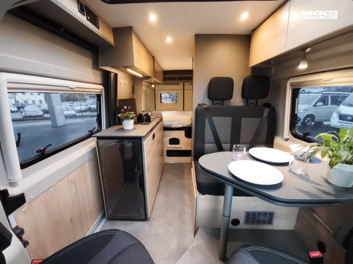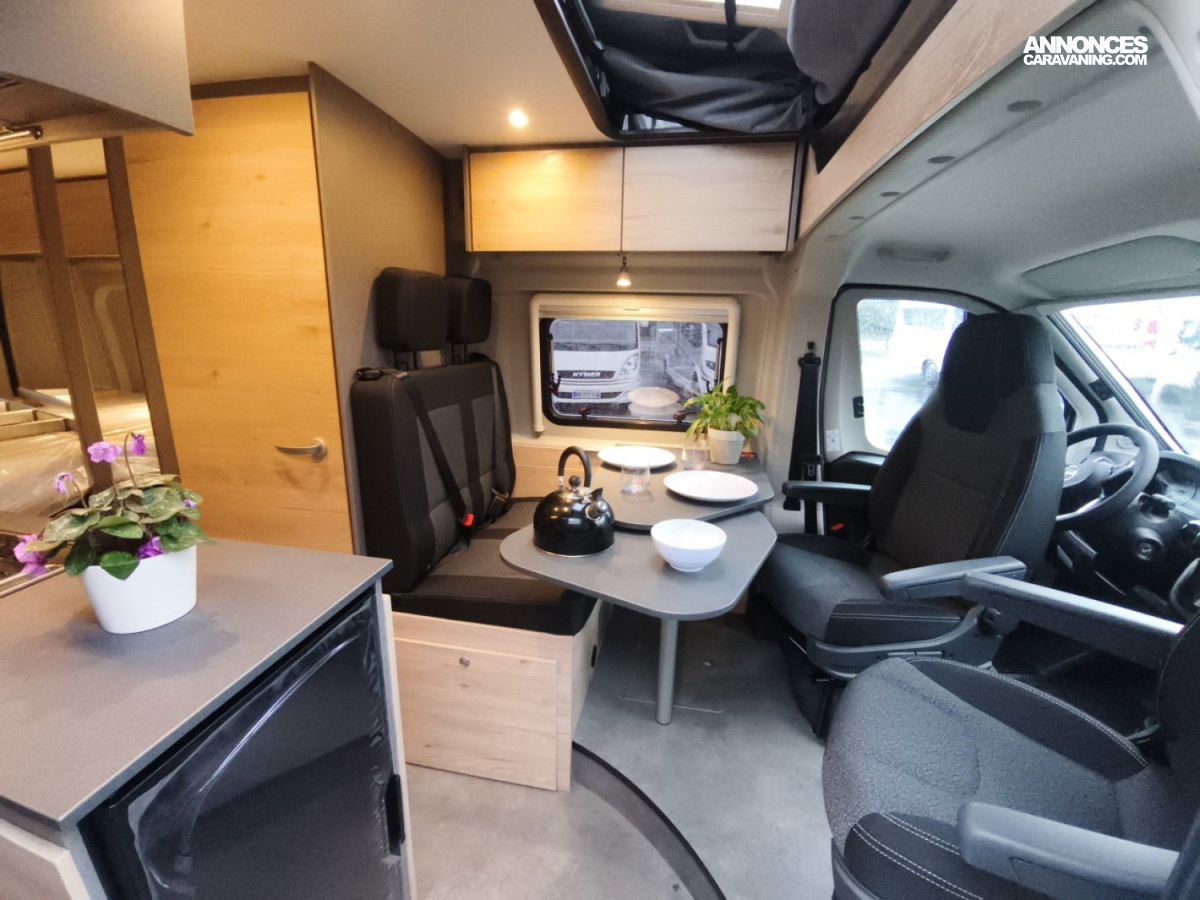 Citroën Jumper 3.500 kg | 2.2 l | 103 kW | 140 ch | Euro 6 | boîte de vitesses manuelle à 6 rapports, Blanc Citroën, Stickage Adventure, Ambiance intérieure Adventure, Pare-chocs arrière avec parties thermoformées montantes, Lanterneau panoramique de cabine, Baies à cadre, Portillon de service côté gauche (dimensions selon implantation), Grand réfrigérateur 156 l, dont freezer séparé 29 l, Modification des lits jumeaux en lit double, Bandeau lumineux entre feux arrière, Porte cellule de qualité avec baie, Porte cellule avec moustiquaire, Lanterneau panoramique 70 x 50 cm, Lanterneau transparent 40 x 40 cm, Pare-chocs avant laqué, Jupe du pare-chocs avant de couleur noire, Feux antibrouillard, Volant et pommeau du levier de vitesses en cuir, Tableau de bord avec finition aluminium (Techno-Trim), Jantes aluminium 16" bi-tons