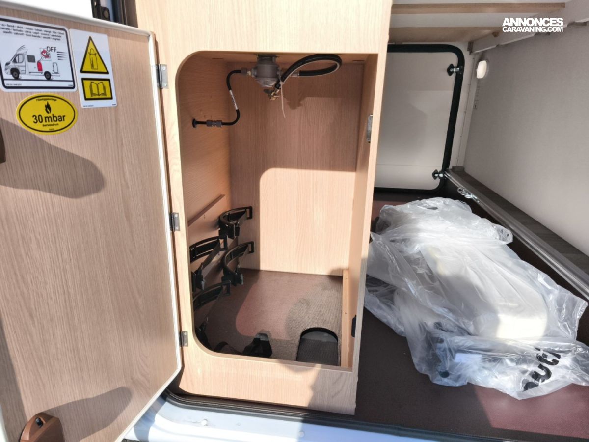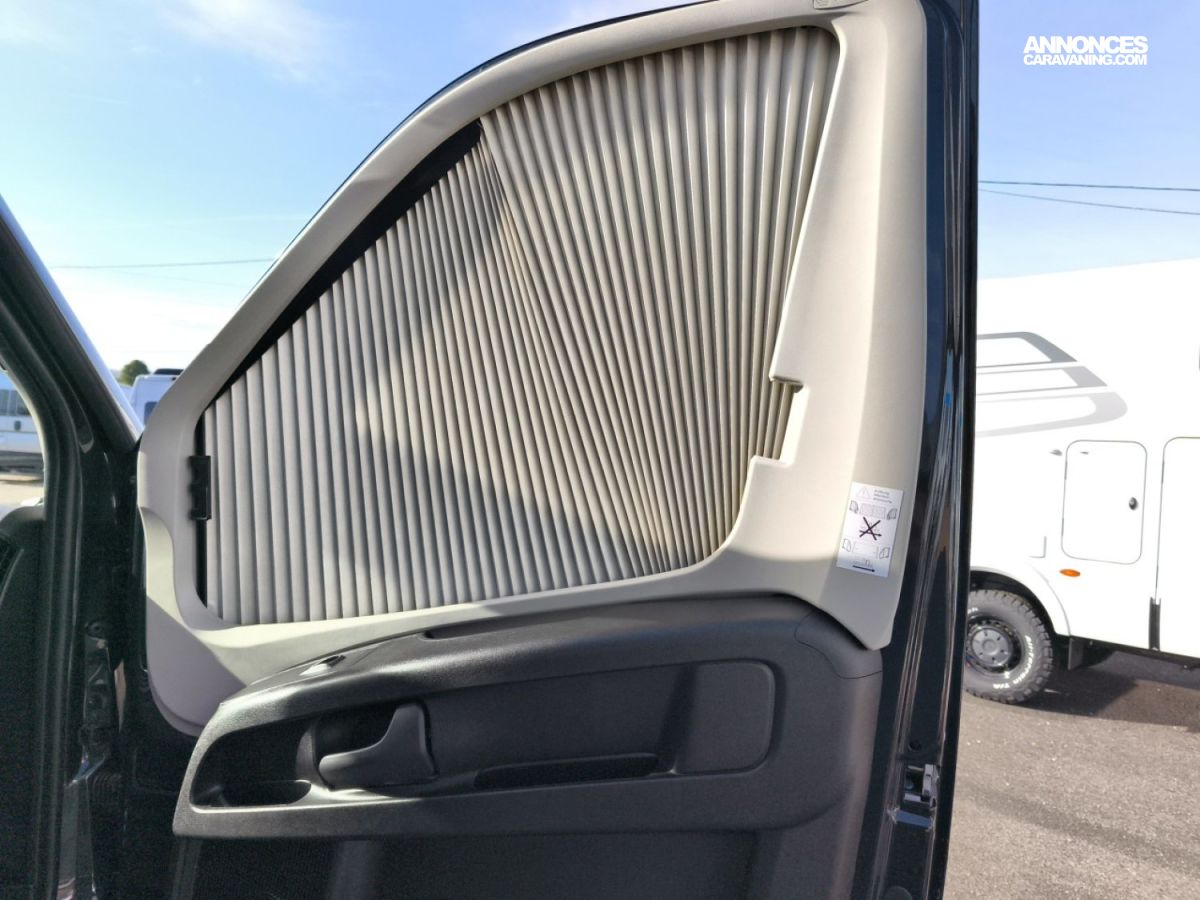 - Pack "Adventure Edition" (Stickage et ambiance intérieure "Adventure Edition", pare-chocs arrière avec parties thermoformées montantes, lanterneau panoramique de cabine, baies à cadre, portillon de service côté gauche, grand réfrigérateur 156l, modification de la dînette en couchage, bandeau lumineux entre feux arrière, porte cellule vitrée avec moustiquaire, pare-chocs avant laqué, jupe du pare-chocs avant de couleur noire, feux antibrouillard, volant et pommeau de levier de vitesse en cuir, tableau de bord avec finition aluminium, jantes aluminium 16" bi-tons, panneau solaire 100 W),