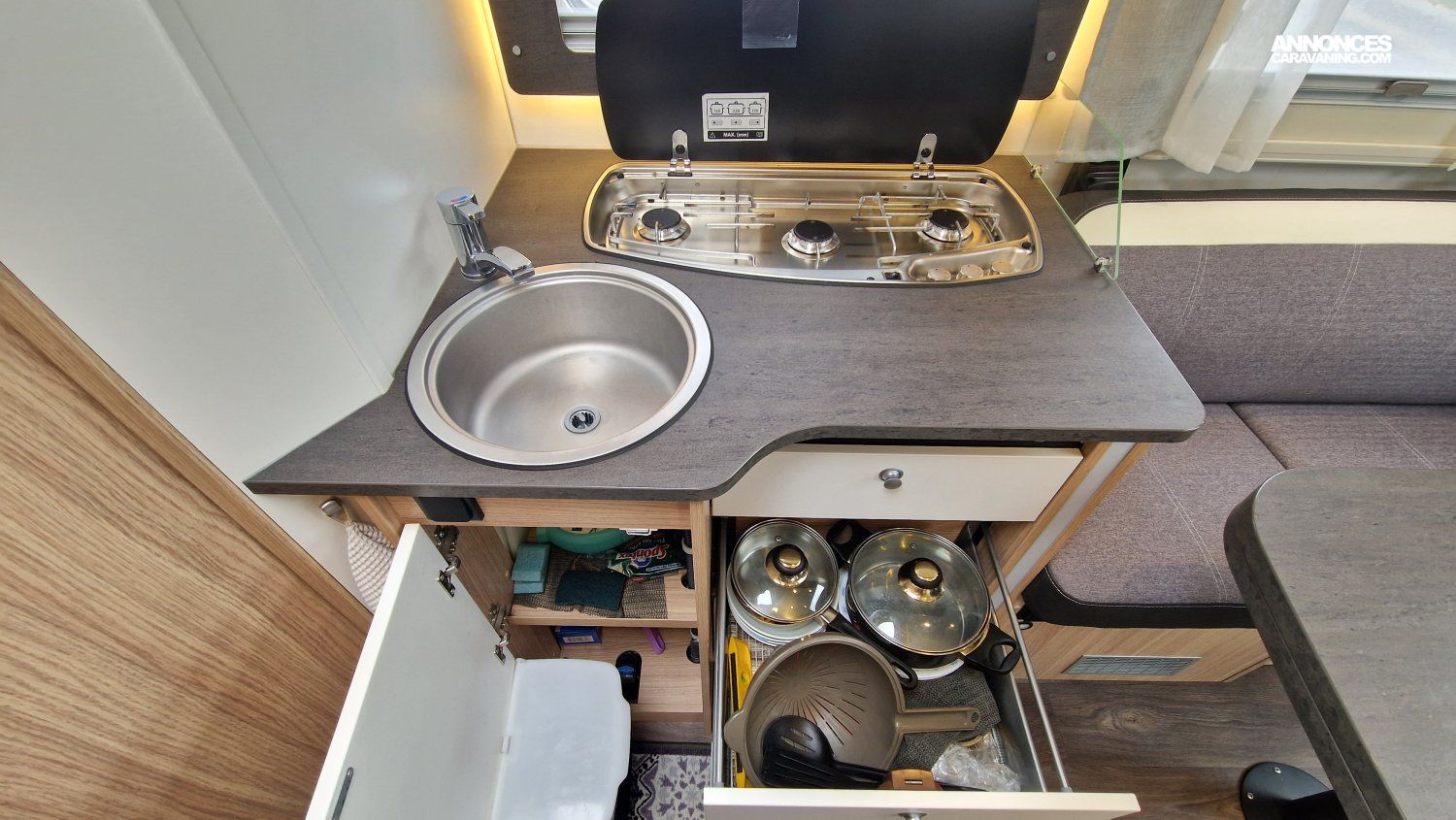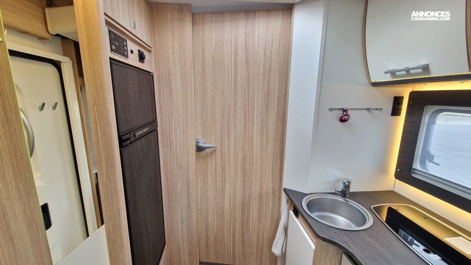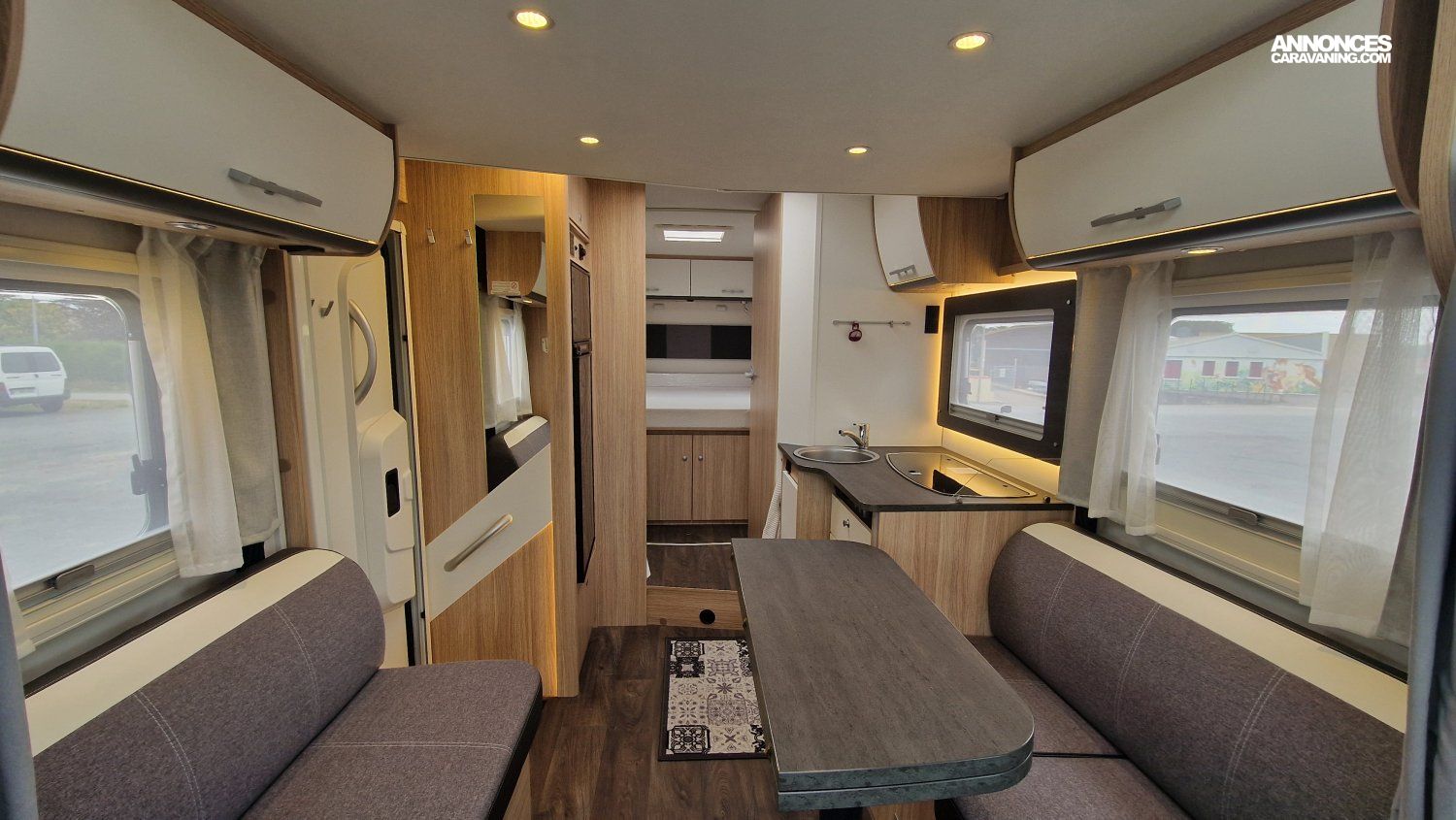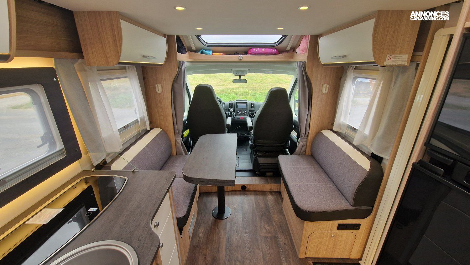 Montez à bord et bénéficiez d’une implantation idéale pour voyager en duo ou plus selon vos envies. Des couchages modulables confortables avec lit central douillet à l’arrière et lit de pavillon sur l’avant : un double cloisonnement de la chambre vous permet de préserver votre intimité tout en jouissant d’un espace « Balnéo » avec cabine de douche et cabinet de toilette indépendants. Un coin cuisine tout équipé, avec de multiples rangements et doté d’un grand réfrigérateur Tri Mix, un salon face à face agréable pour se détendre et partager vos repas en toute convivialité.