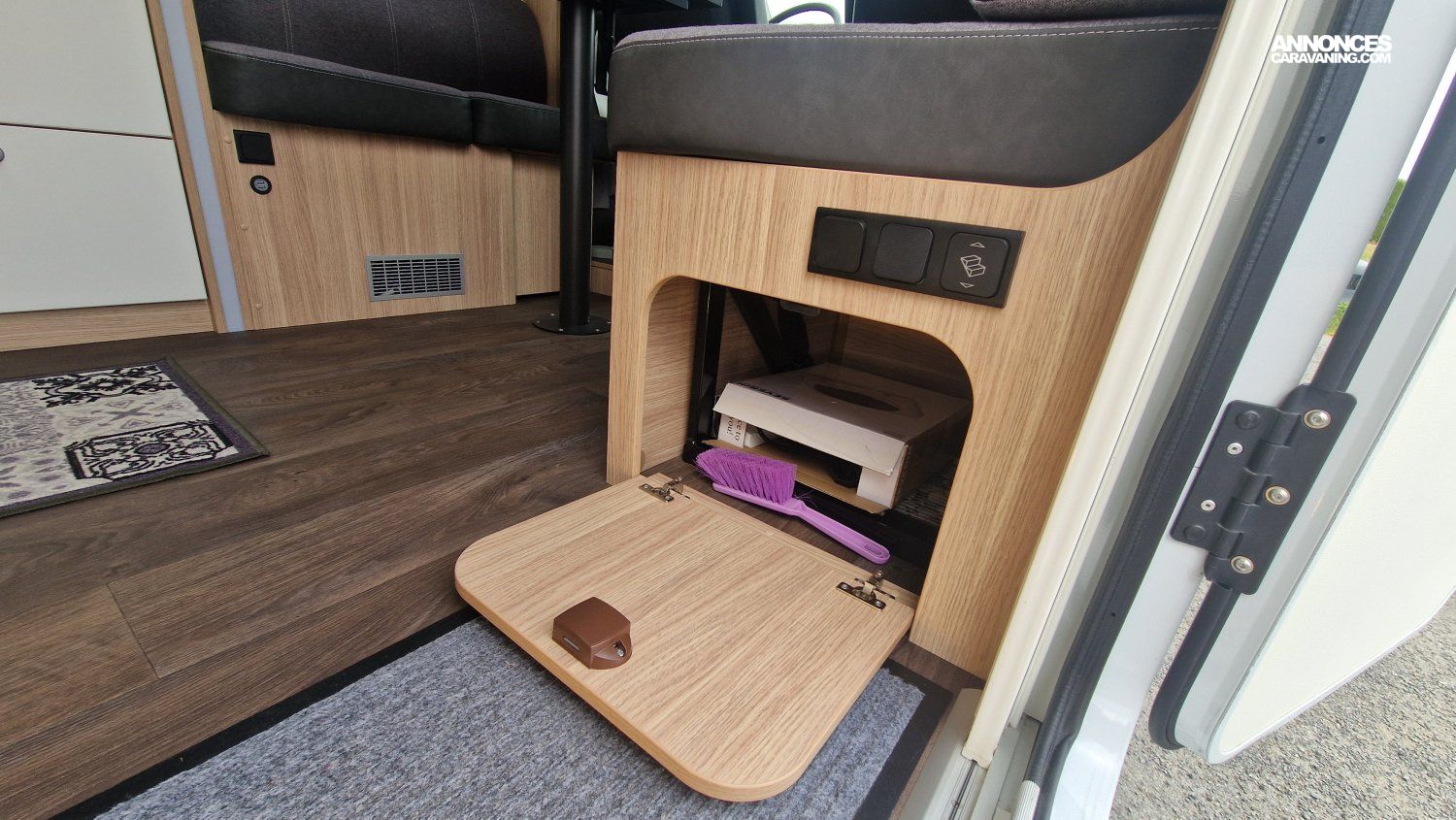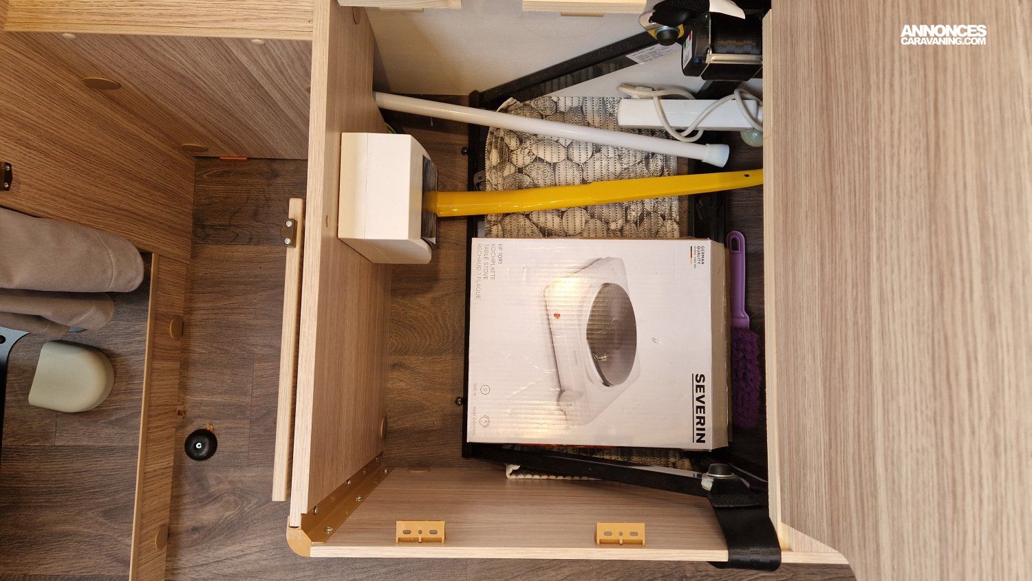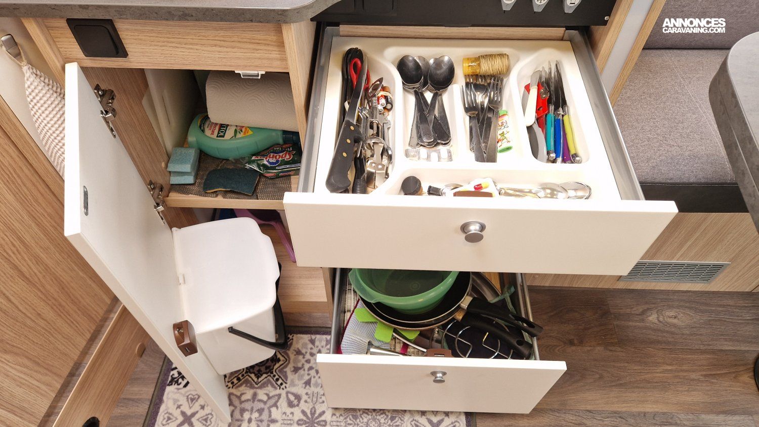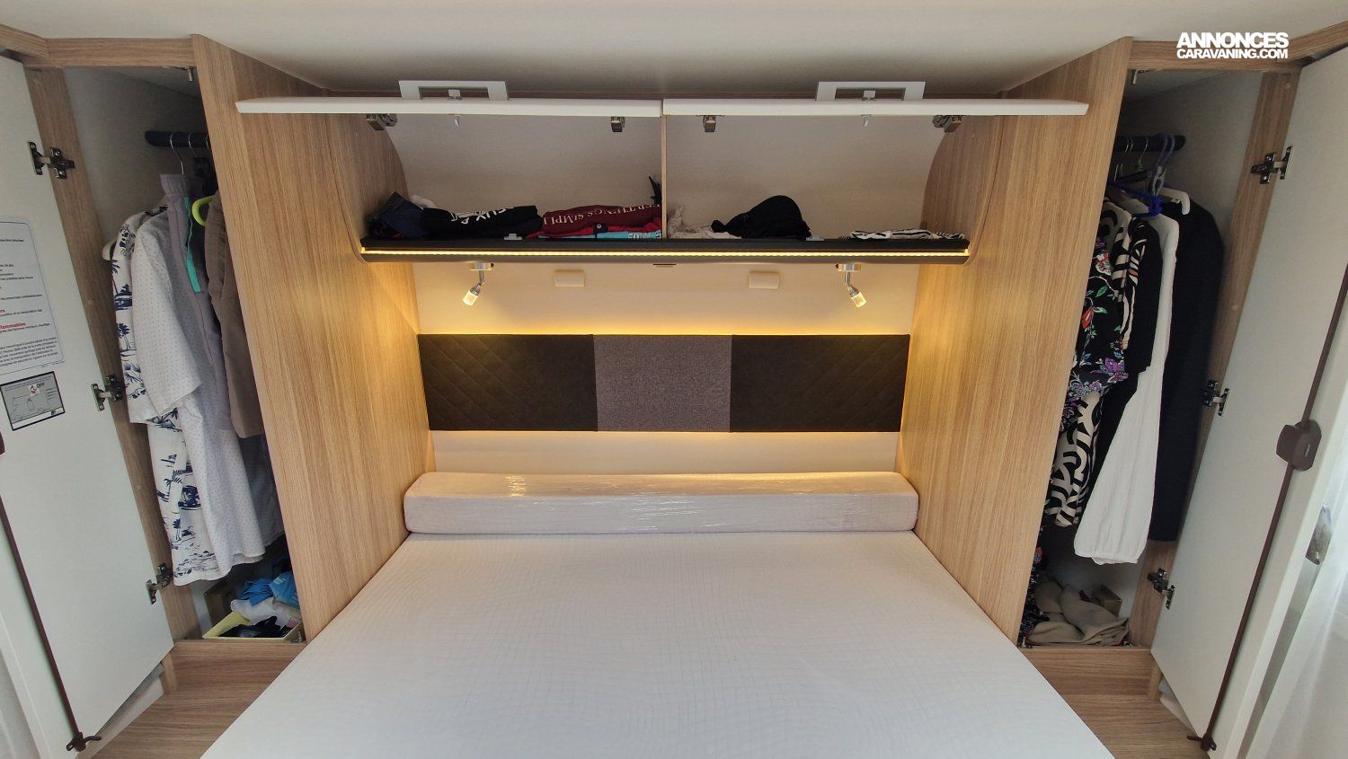 Montez à bord et bénéficiez d’une implantation idéale pour voyager en duo ou plus selon vos envies. Des couchages modulables confortables avec lit central douillet à l’arrière et lit de pavillon sur l’avant : un double cloisonnement de la chambre vous permet de préserver votre intimité tout en jouissant d’un espace « Balnéo » avec cabine de douche et cabinet de toilette indépendants. Un coin cuisine tout équipé, avec de multiples rangements et doté d’un grand réfrigérateur Tri Mix, un salon face à face agréable pour se détendre et partager vos repas en toute convivialité.