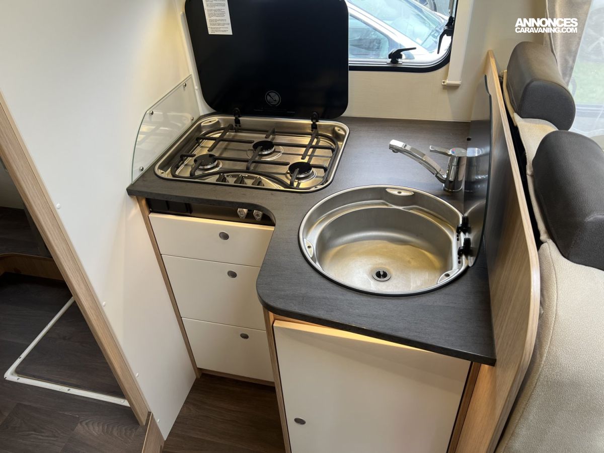 CHAUFFAGE COMBI TRUMA 6, STORE EXTERIEUR 4M, GAZINIERE 3 FEUX, CUISINE EN L, MOUSTIQUAIRE DE PORTE CELLULE, PORTE VELO, REFRIGERATEUR TRI MIX, VOLET ISOTHERME INTERIEUR, LANTERNEAU PANORAMIQUE, SUN ROOF OUVRANT
