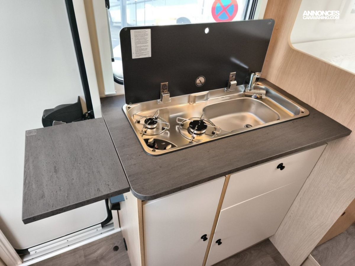 - Cuisine avec plaque gaz 2 feux allumage Piezzo,