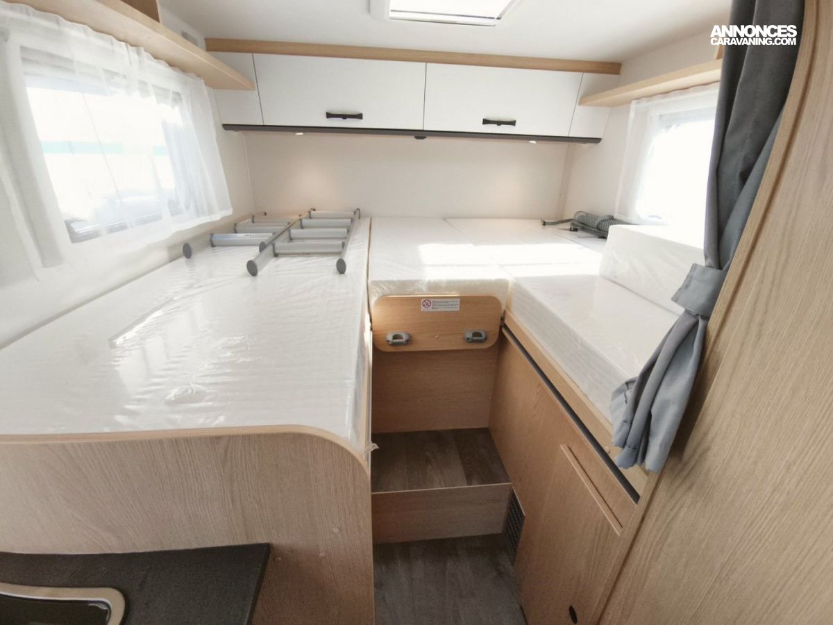 - Pack "Adventure Edition" (Lanterneau panoramique de cabine, ambiance intérieure Adventure, stickage Adventure, Portillon de soute côté gauche, modification des lits jumeaux en lit double, store extérieur, Porte 3 vélos noir, panneau solaire 100 W),