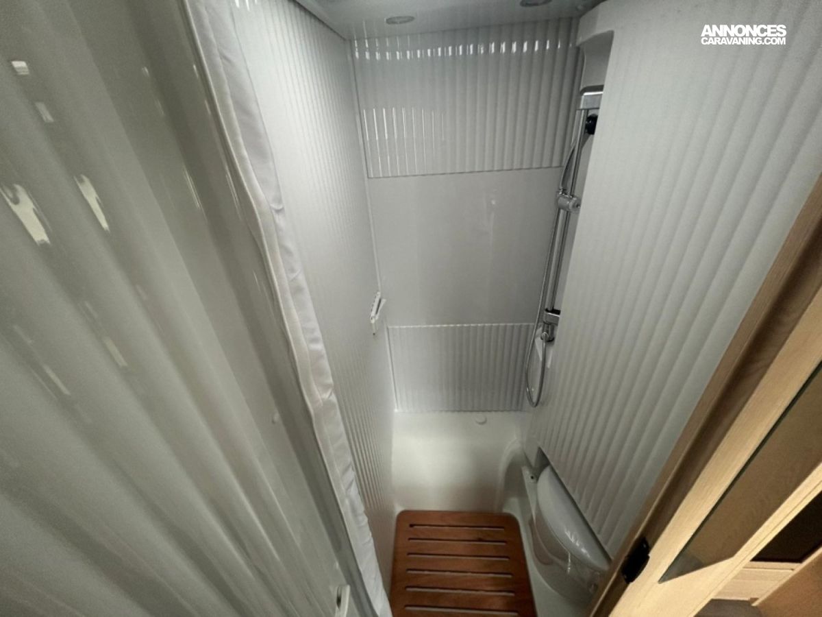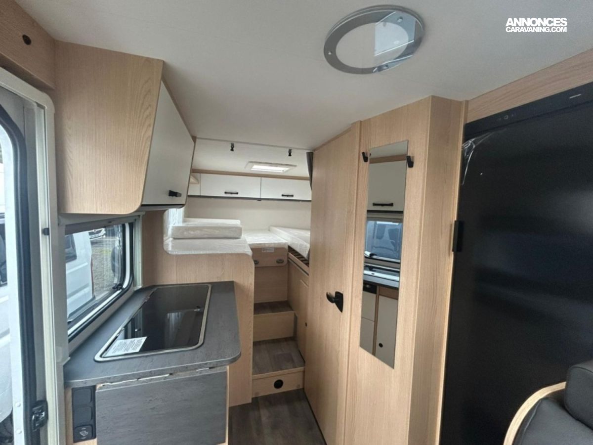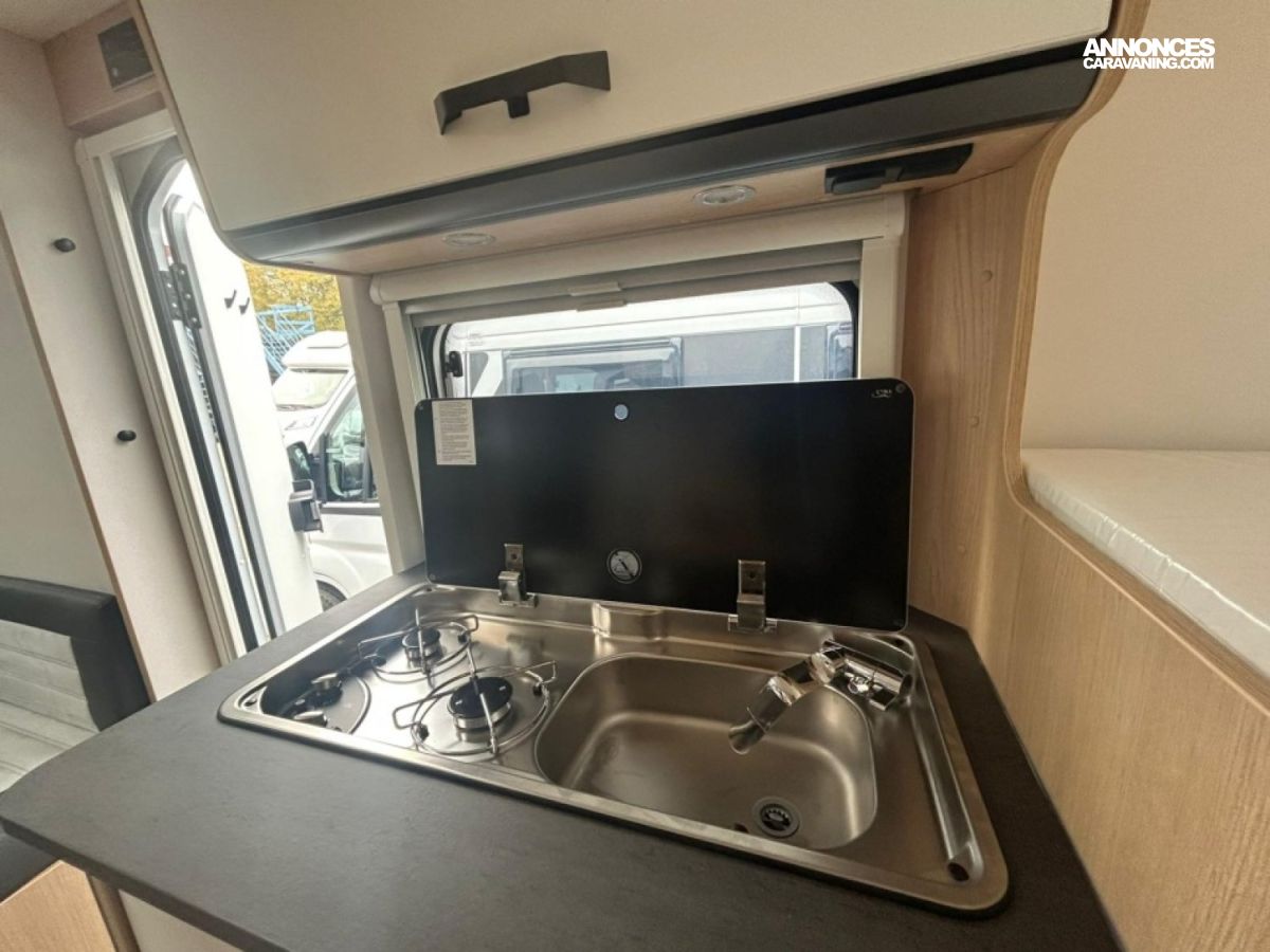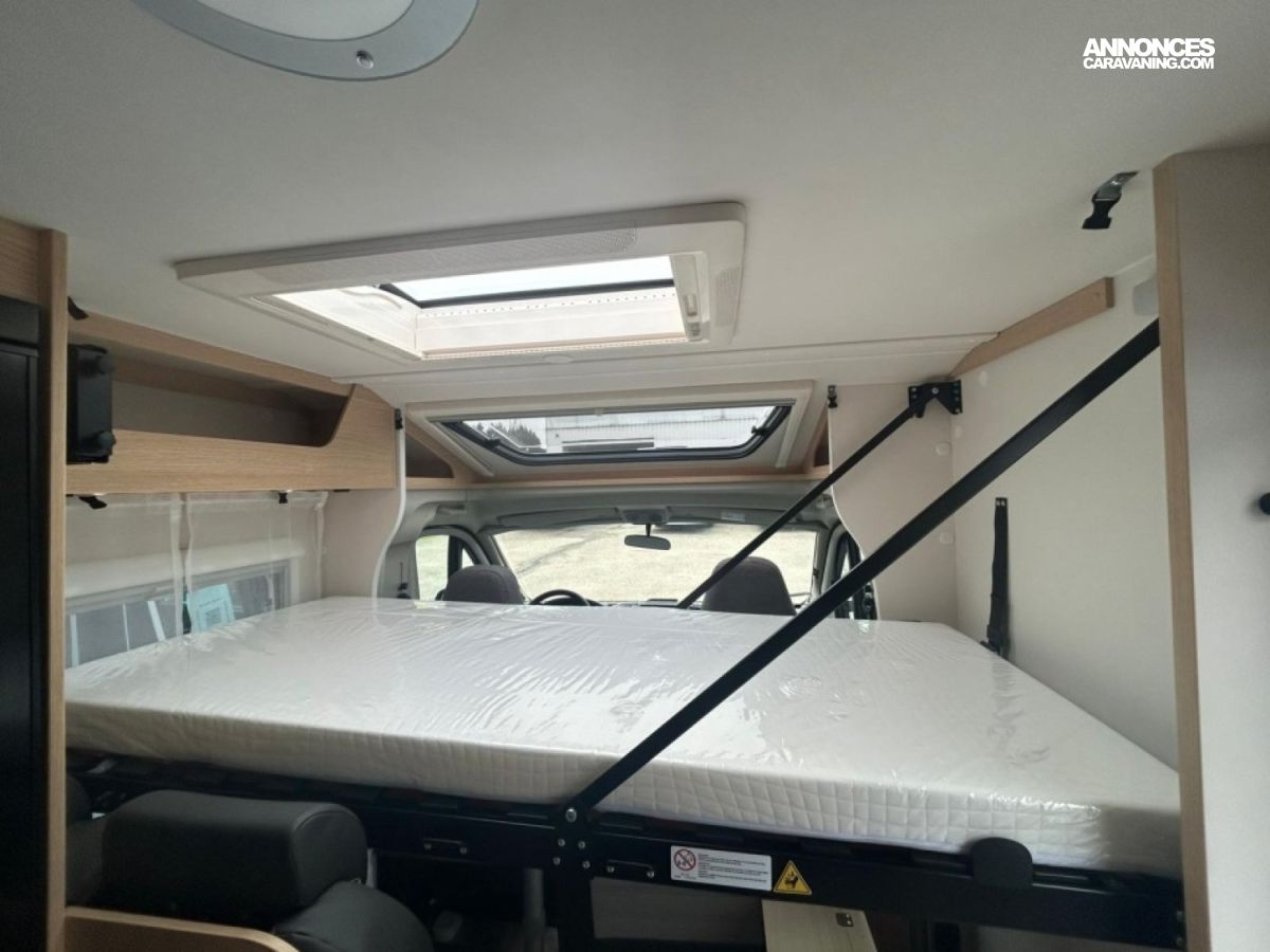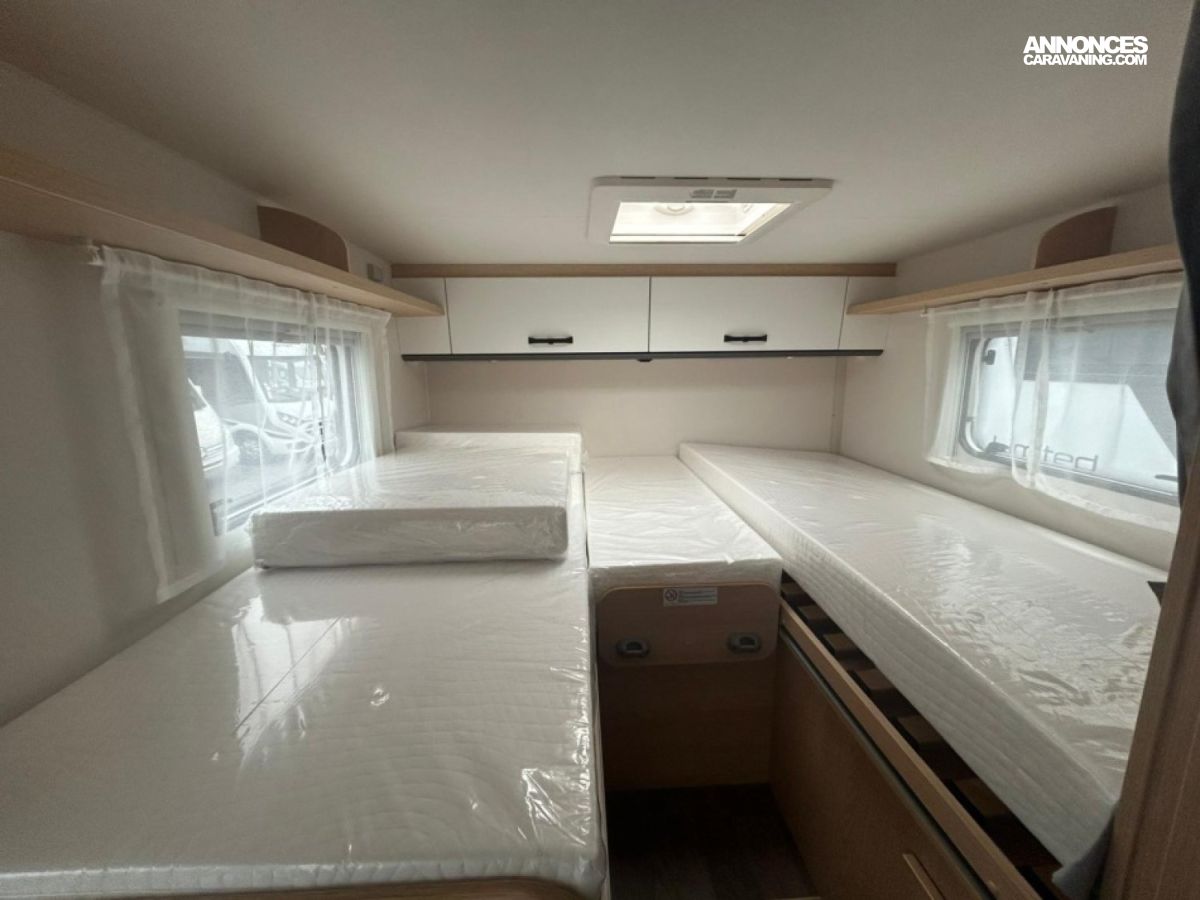 Le camping-car idéal pour les familles avec 4 couchages. Le lit jumeau se transforme en lit XXL et le lit pavillon manuel conserve un gabarit étroit tout en libérant la hauteur sous plafond et l’accès à la porte d’entrée. La dînette convertible permet deux lits superposés à l’avant. La salle d’eau Vario avec paroi pivotante optimise l’espace et le confort.