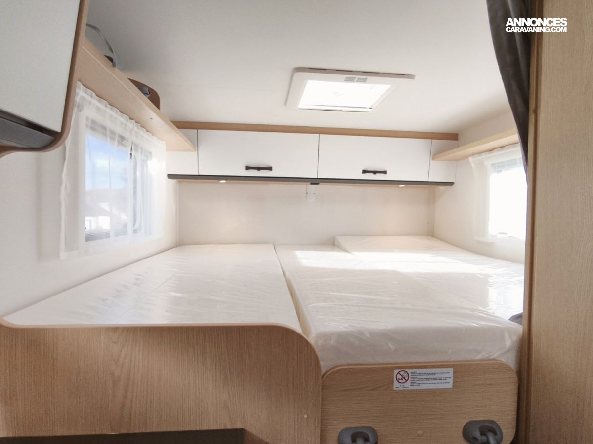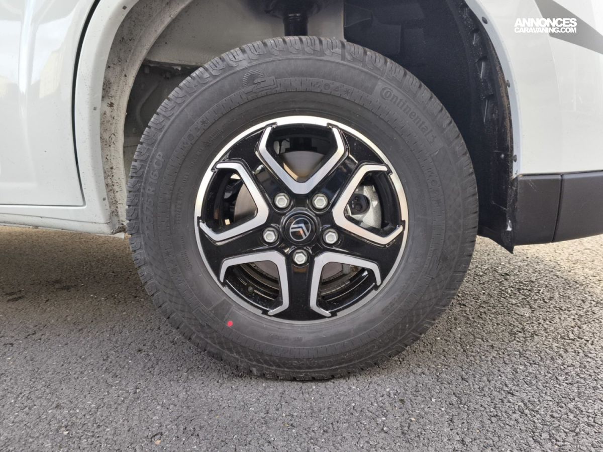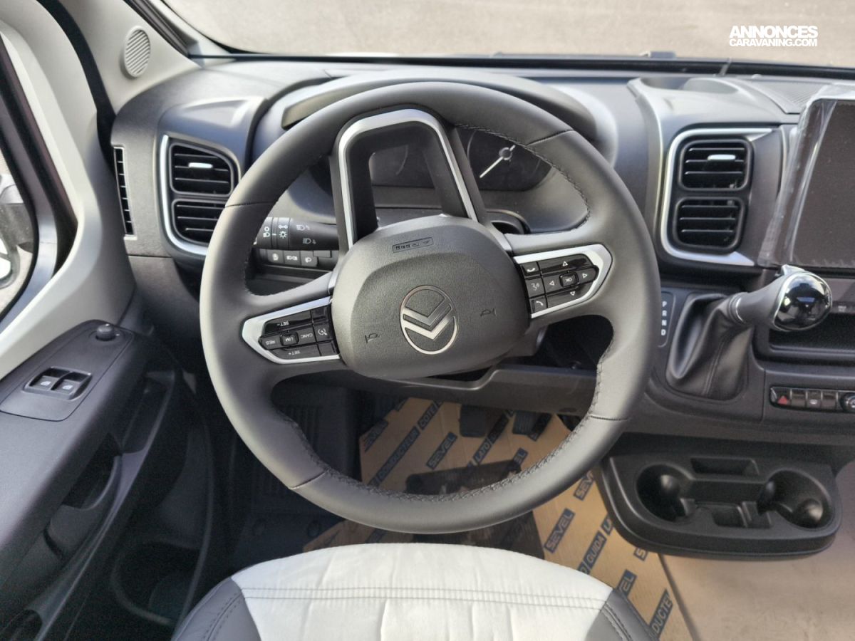 Citroën Jumper 3.500 kg | 2.2 l | 103 kW | 140 ch | Euro 6 | boîte de vitesses manuelle à 6 rapports, Blanc Citroën, Stickage Adventure, Ambiance intérieure Adventure, Lanterneau panoramique de cabine, Portillon de service côté gauche (dimensions selon implantation), Modification des lits jumeaux en lit double, Pack One noir (store extérieur, porte-vélos 3 rails), Bandeau lumineux entre feux arrière, Porte cellule avec moustiquaire, Miroir avec patères, Lanterneau panoramique 70 x 50 cm, Lanterneau transparent 40 x 40 cm, Pare-chocs avant laqué, Jupe du pare-chocs avant de couleur noire, Feux antibrouillard, Jantes aluminium 16" bi-tons