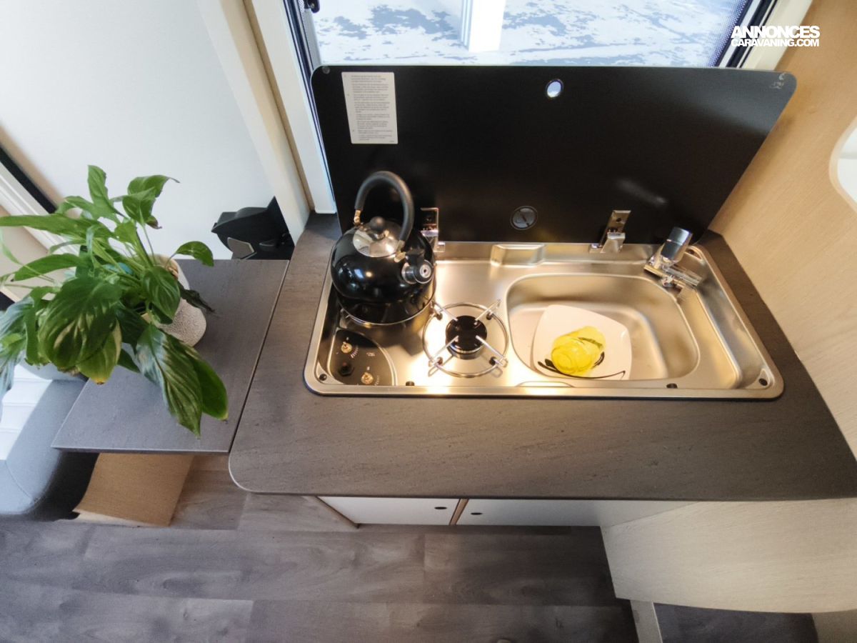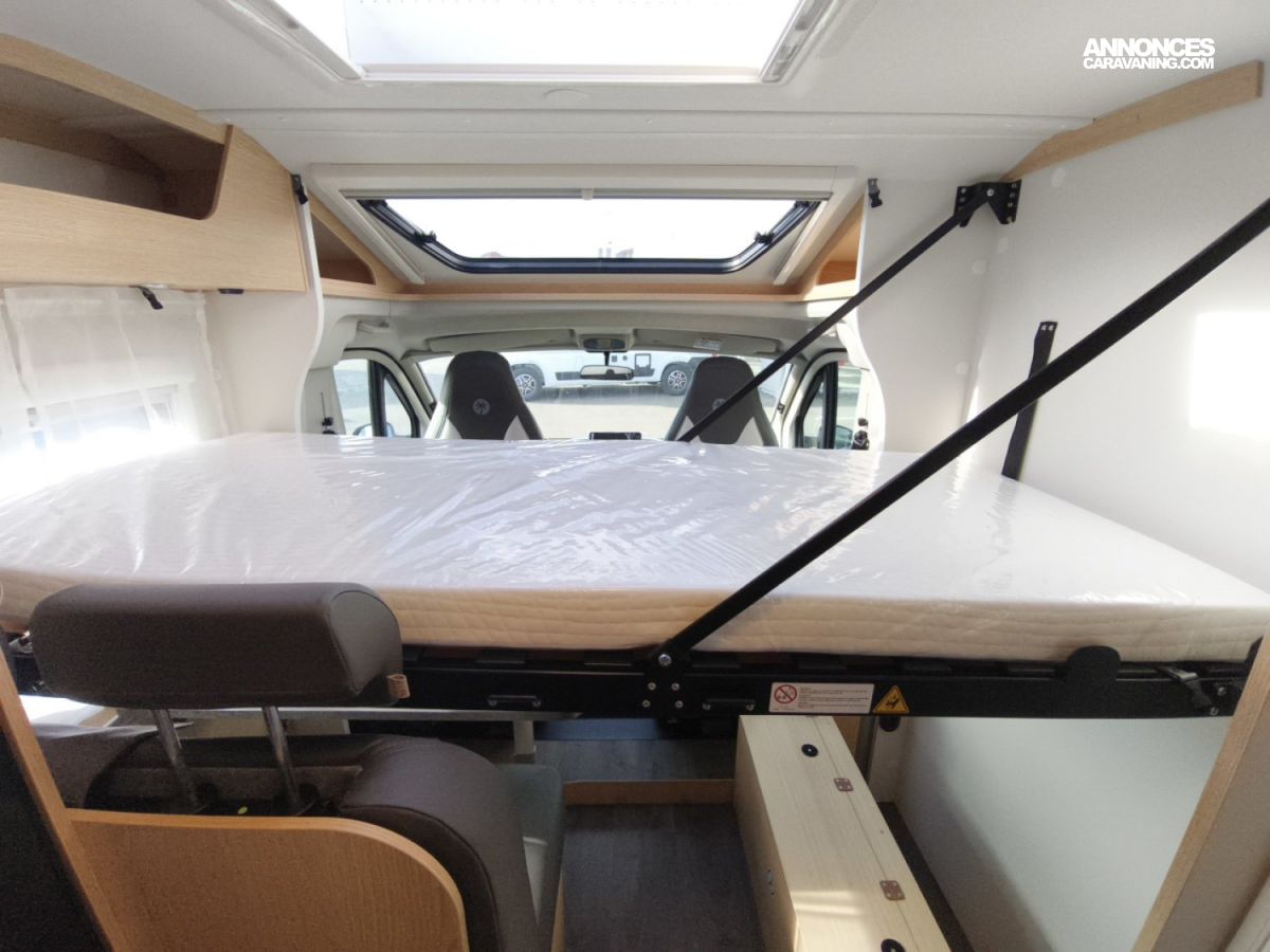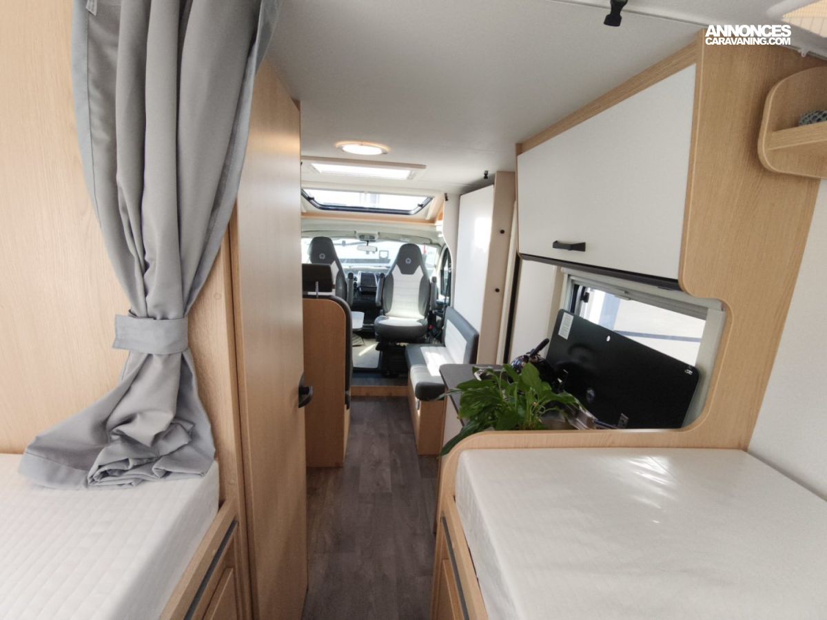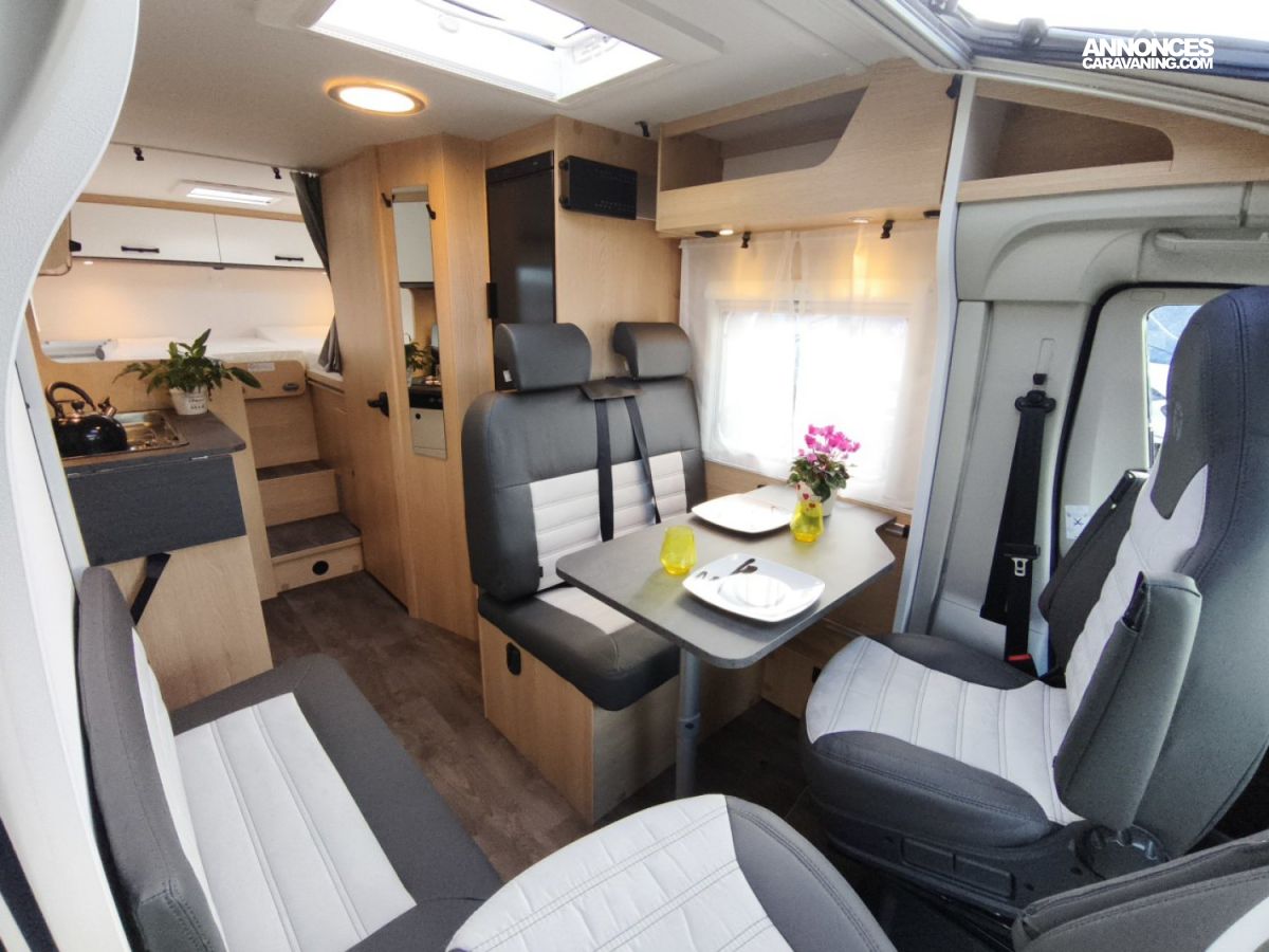 Citroën Jumper 3.500 kg | 2.2 l | 103 kW | 140 ch | Euro 6 | boîte de vitesses manuelle à 6 rapports, Blanc Citroën, Stickage Adventure, Ambiance intérieure Adventure, Lanterneau panoramique de cabine, Portillon de service côté gauche (dimensions selon implantation), Modification des lits jumeaux en lit double, Pack One noir (store extérieur, porte-vélos 3 rails), Bandeau lumineux entre feux arrière, Porte cellule avec moustiquaire, Miroir avec patères, Lanterneau panoramique 70 x 50 cm, Lanterneau transparent 40 x 40 cm, Pare-chocs avant laqué, Jupe du pare-chocs avant de couleur noire, Feux antibrouillard, Jantes aluminium 16" bi-tons