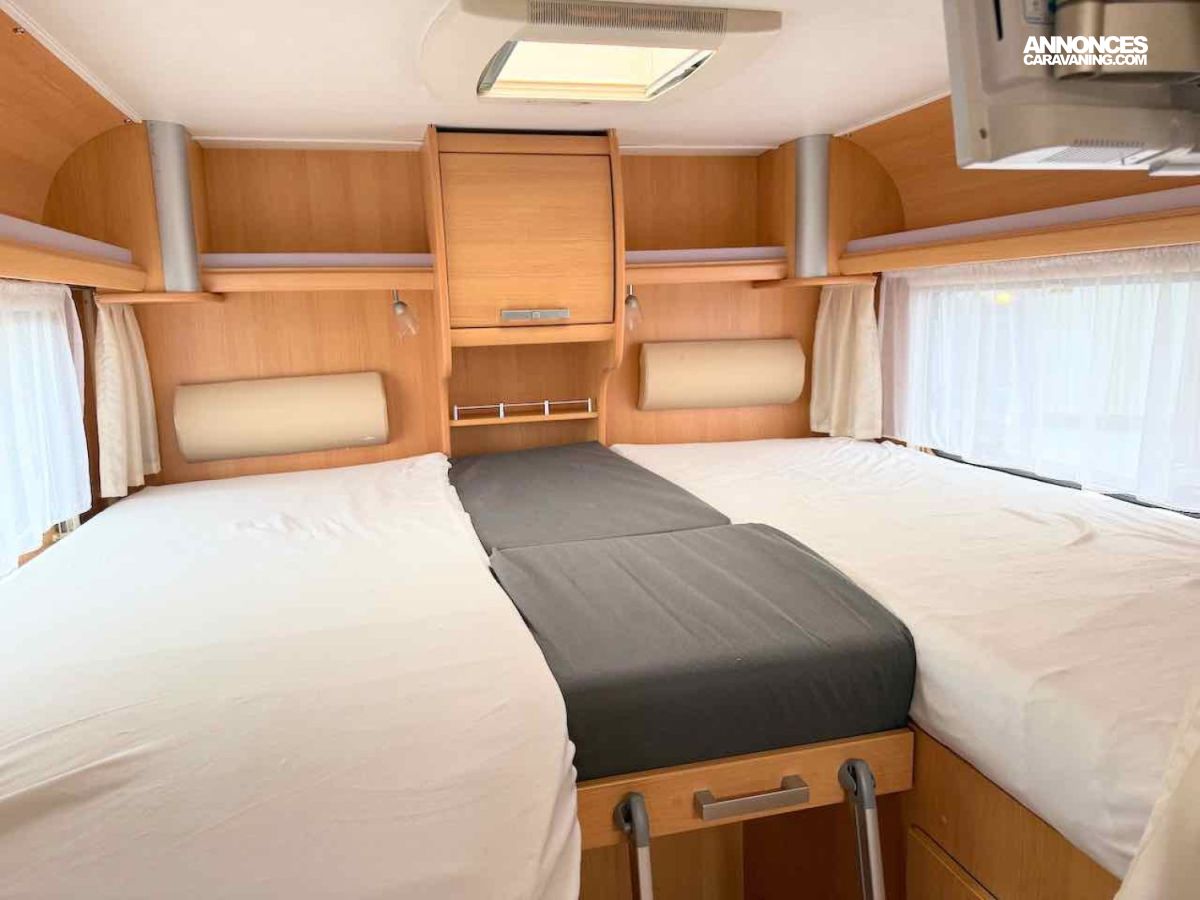 Les lits jumeaux, 199 x 75 cm et 188 x 75 cm, peuvent être réunis en un seul grand lit arrière.