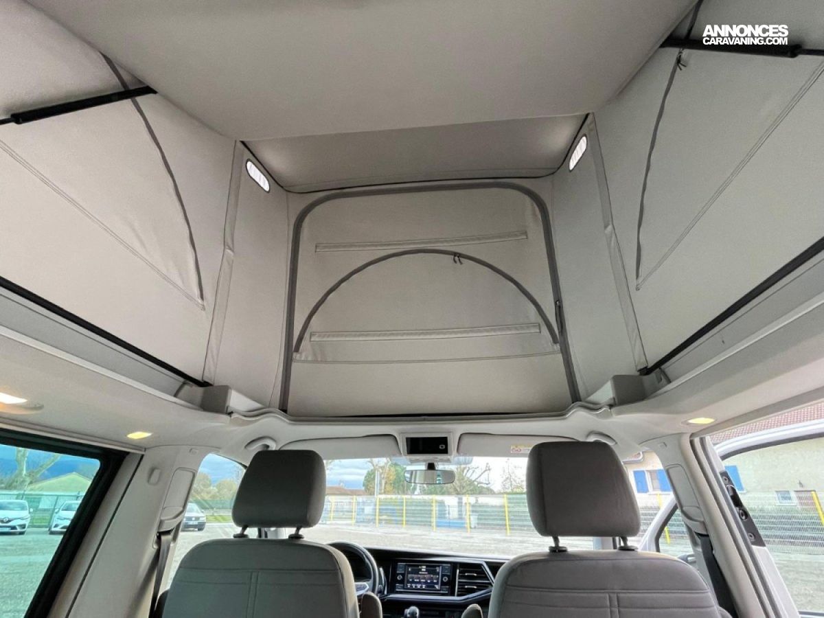 Options : Matelas confort, vitres surteintées à l’arrière, Roue de secours, Auvent / Store Extérieur Noir, Plancher intérieur imitation bois, phares à Led, CarPlay , Attelage amovible, Régulateur de vitesse, Toit relevable électrique Couleur tente de toit : Basalt Grey, 2 batteries auxiliaires.