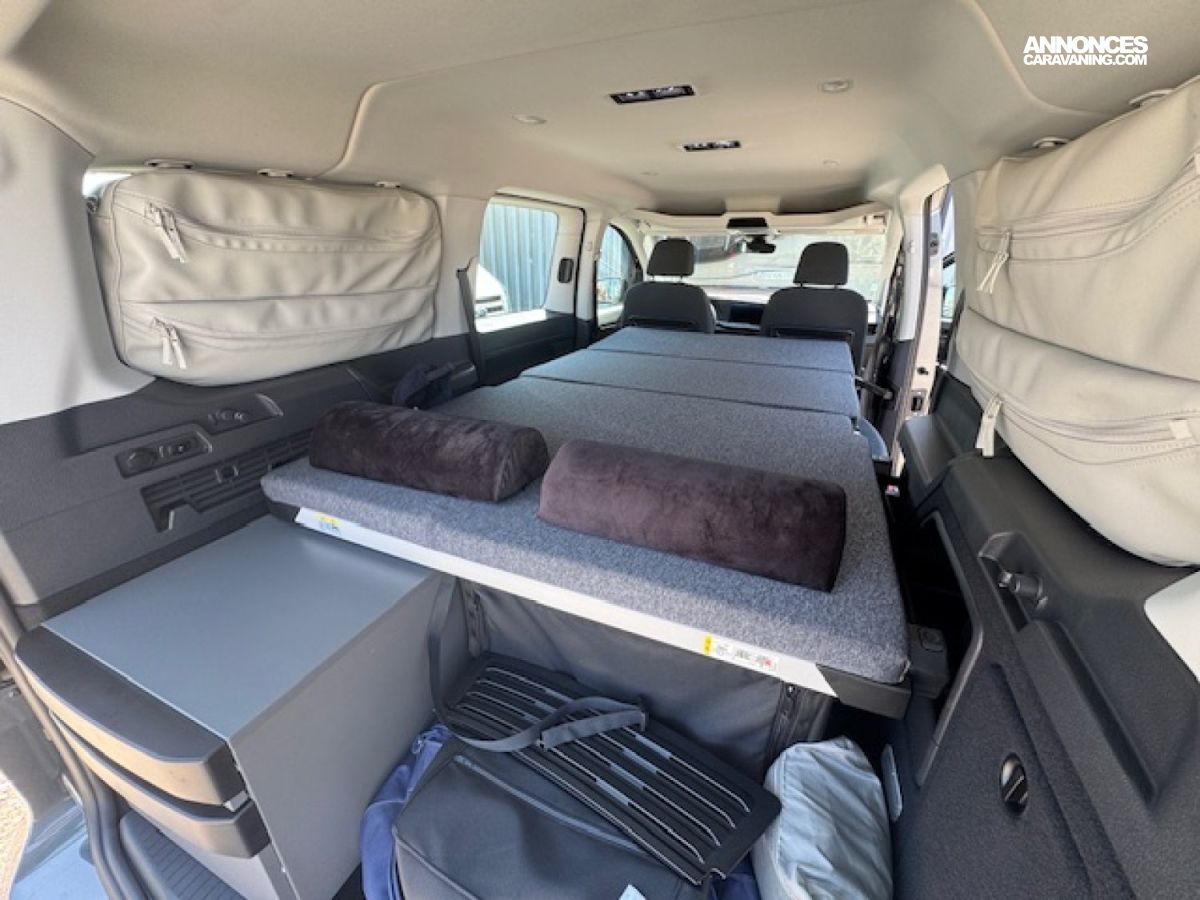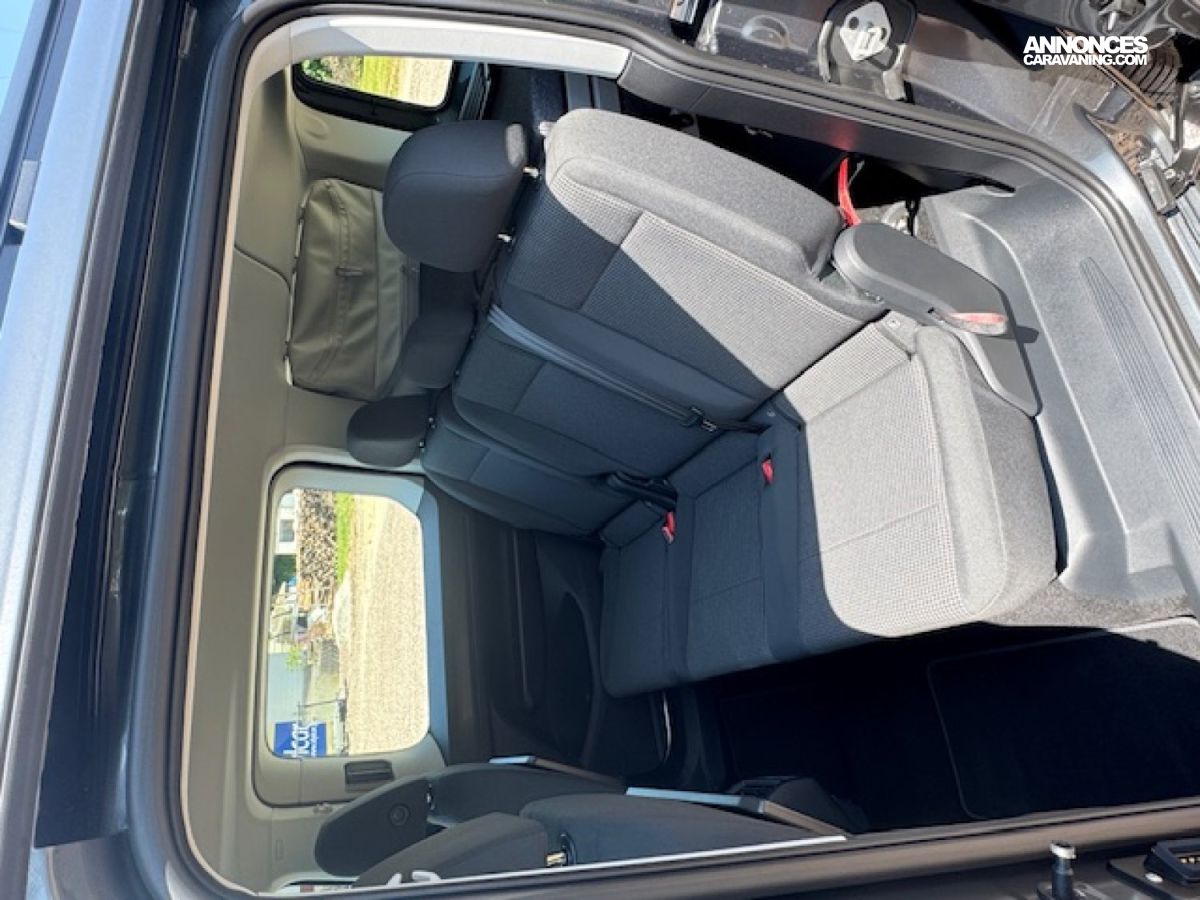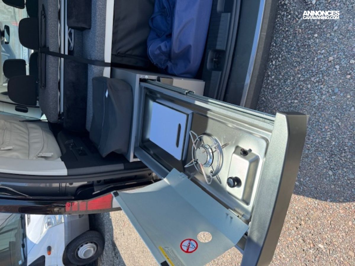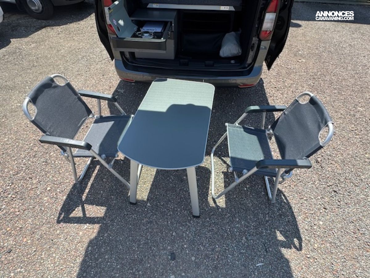 Le Caddy California vous offre un espace de couchage confortable, une petite cuisine coulissante, une table pliante et des chaises escamotables.