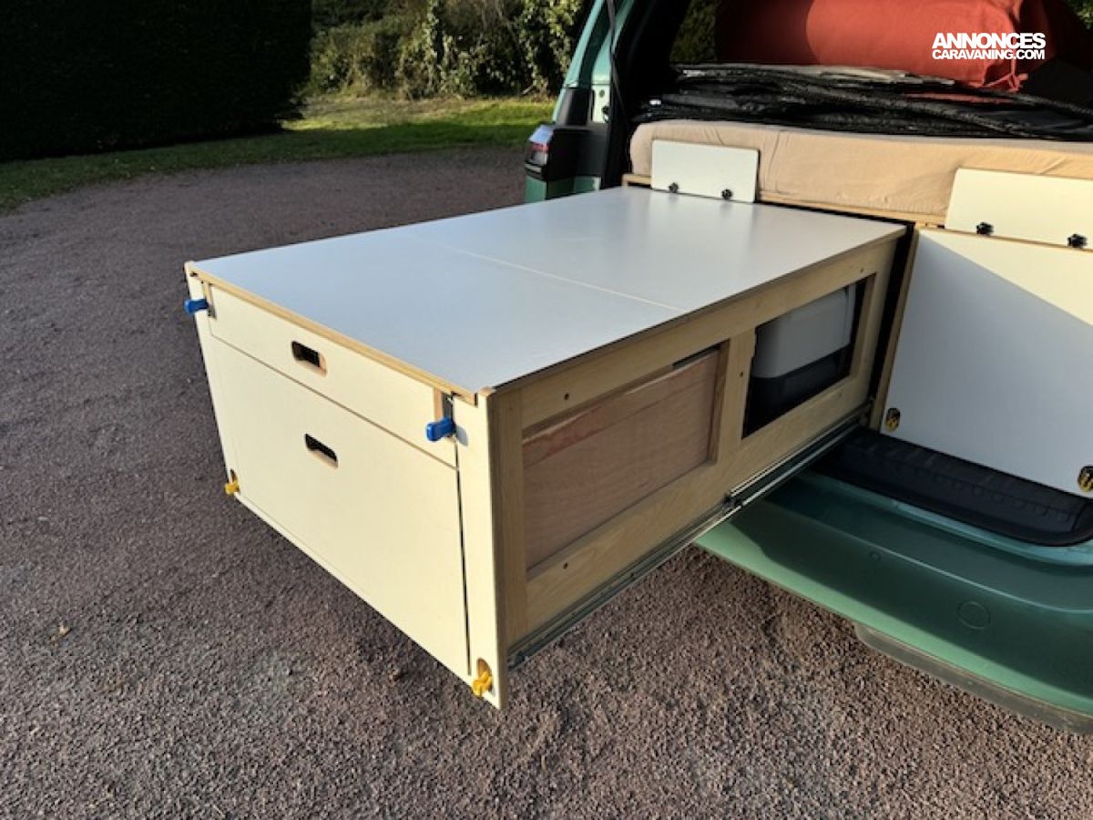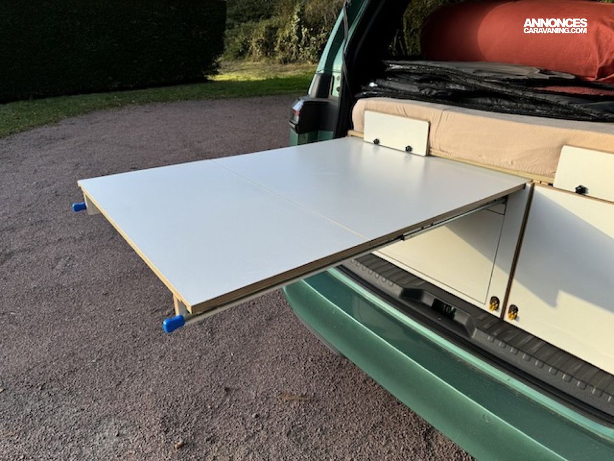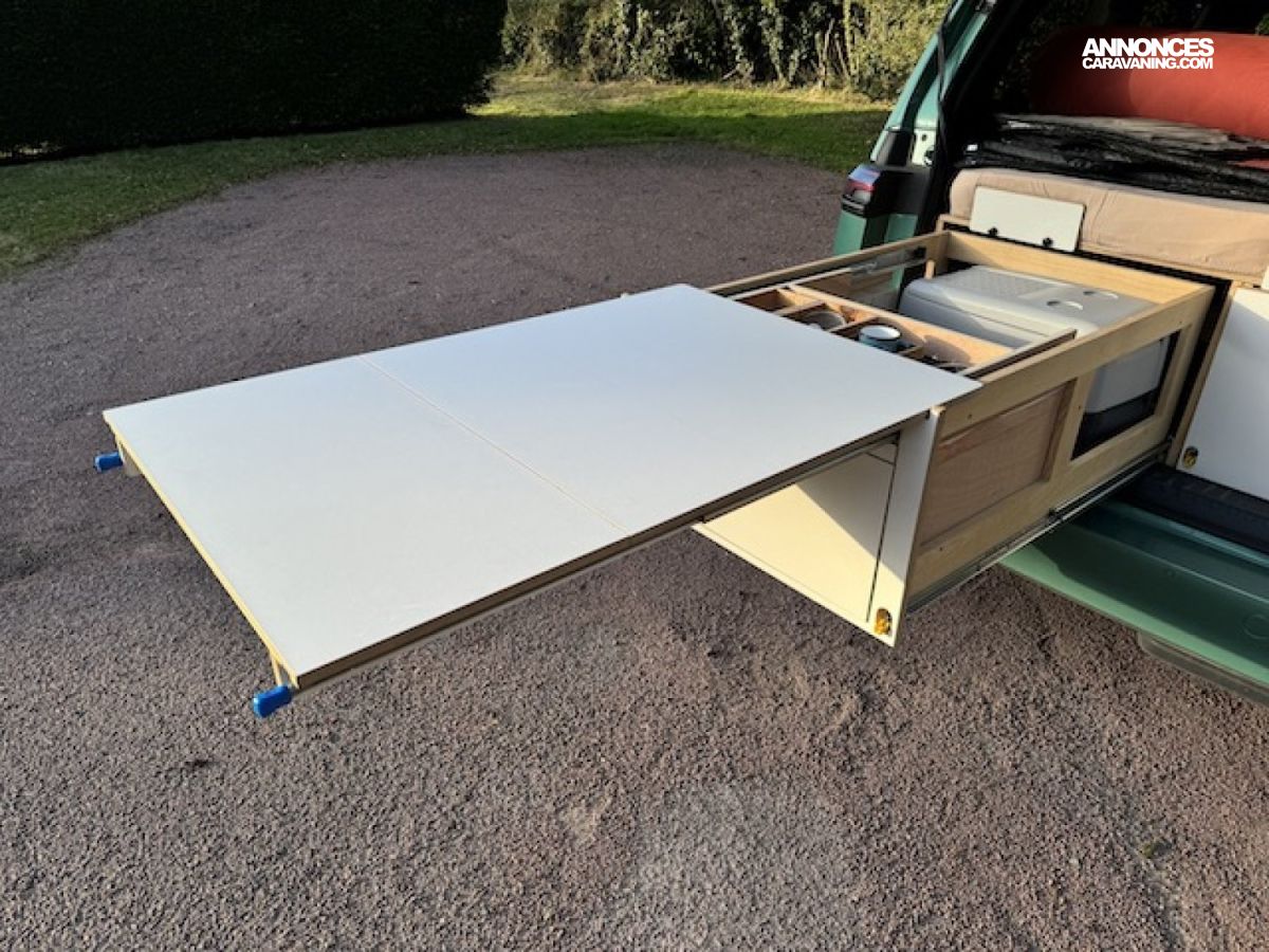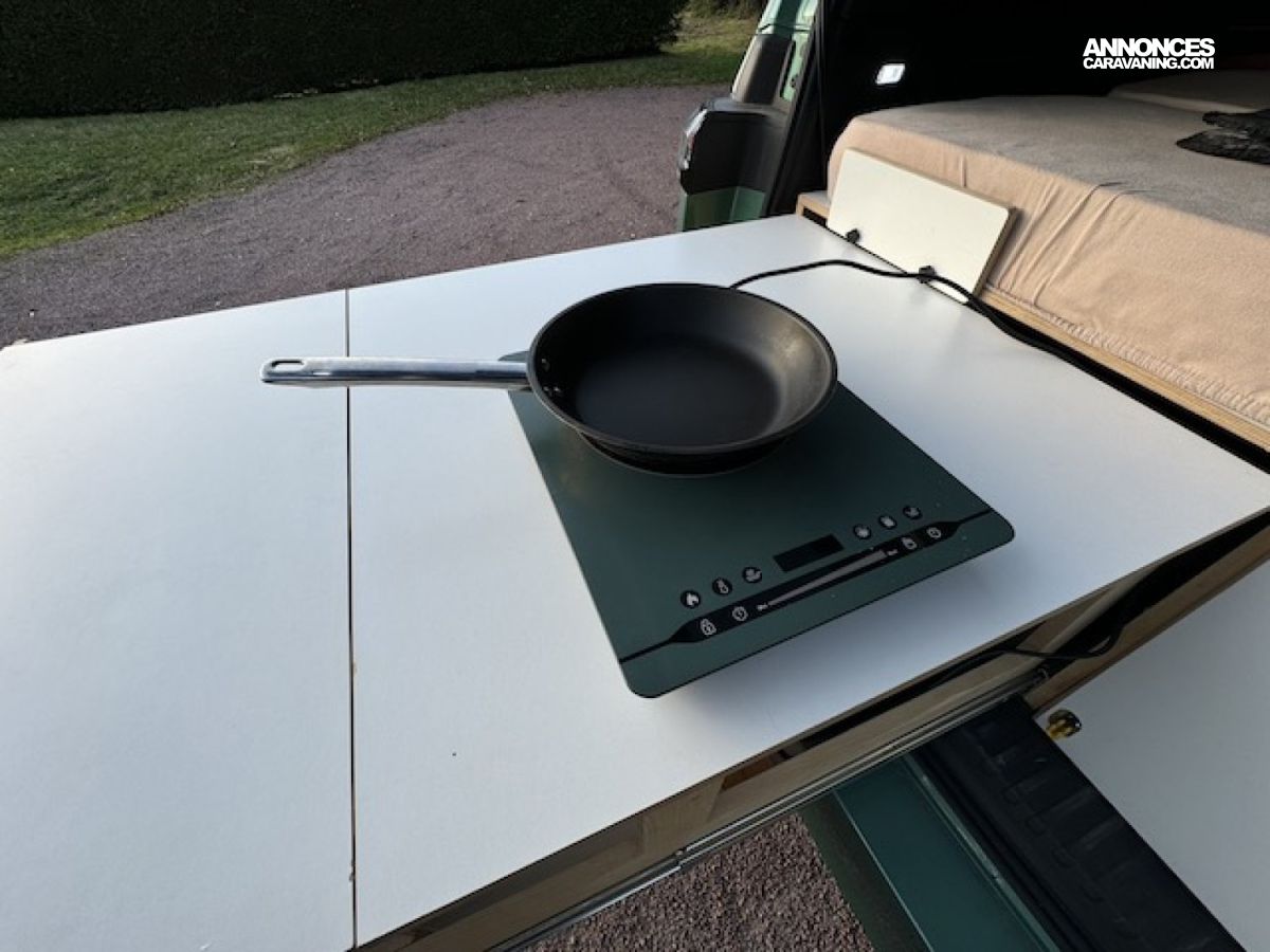 Le van est également équipé d'accessoires: douchette électrique, eau chaude, bac à douche extérieur, stores occultants.