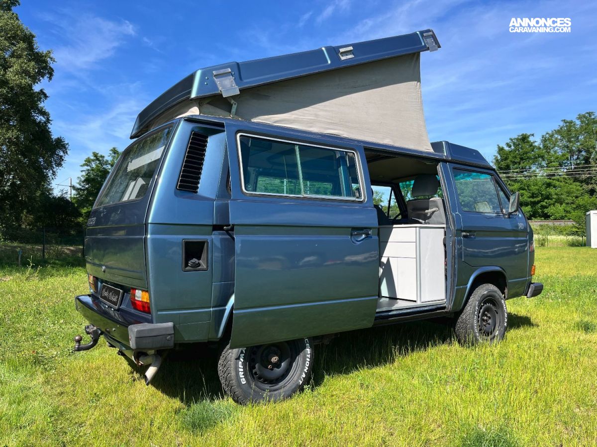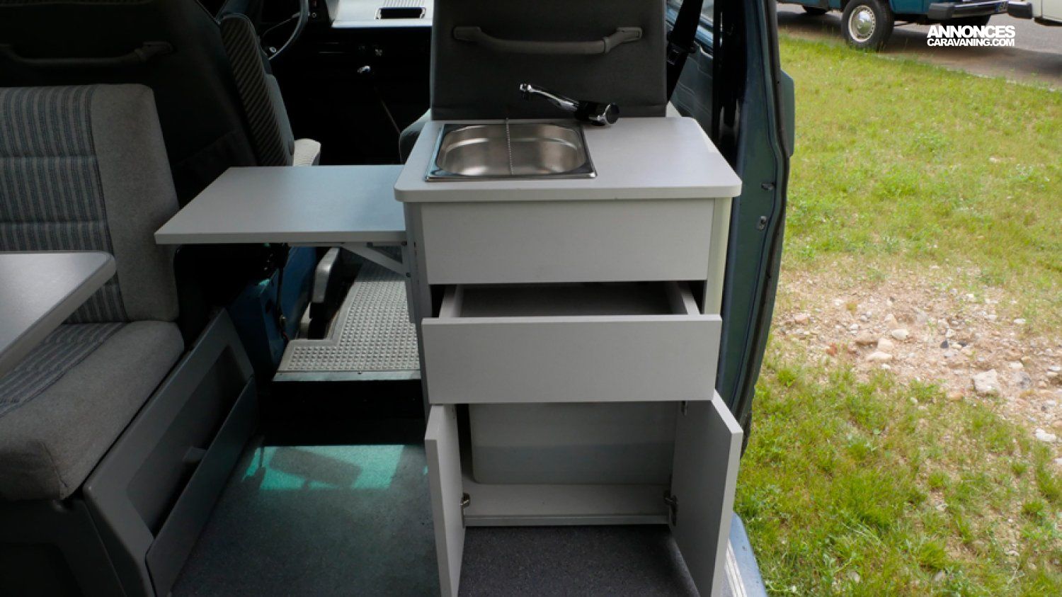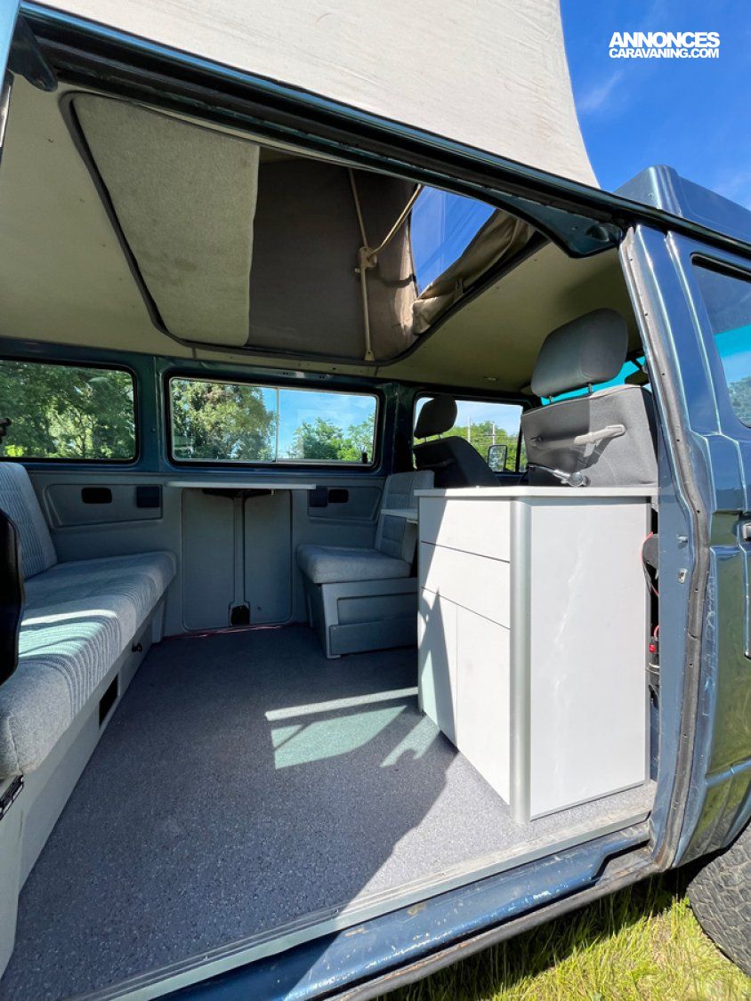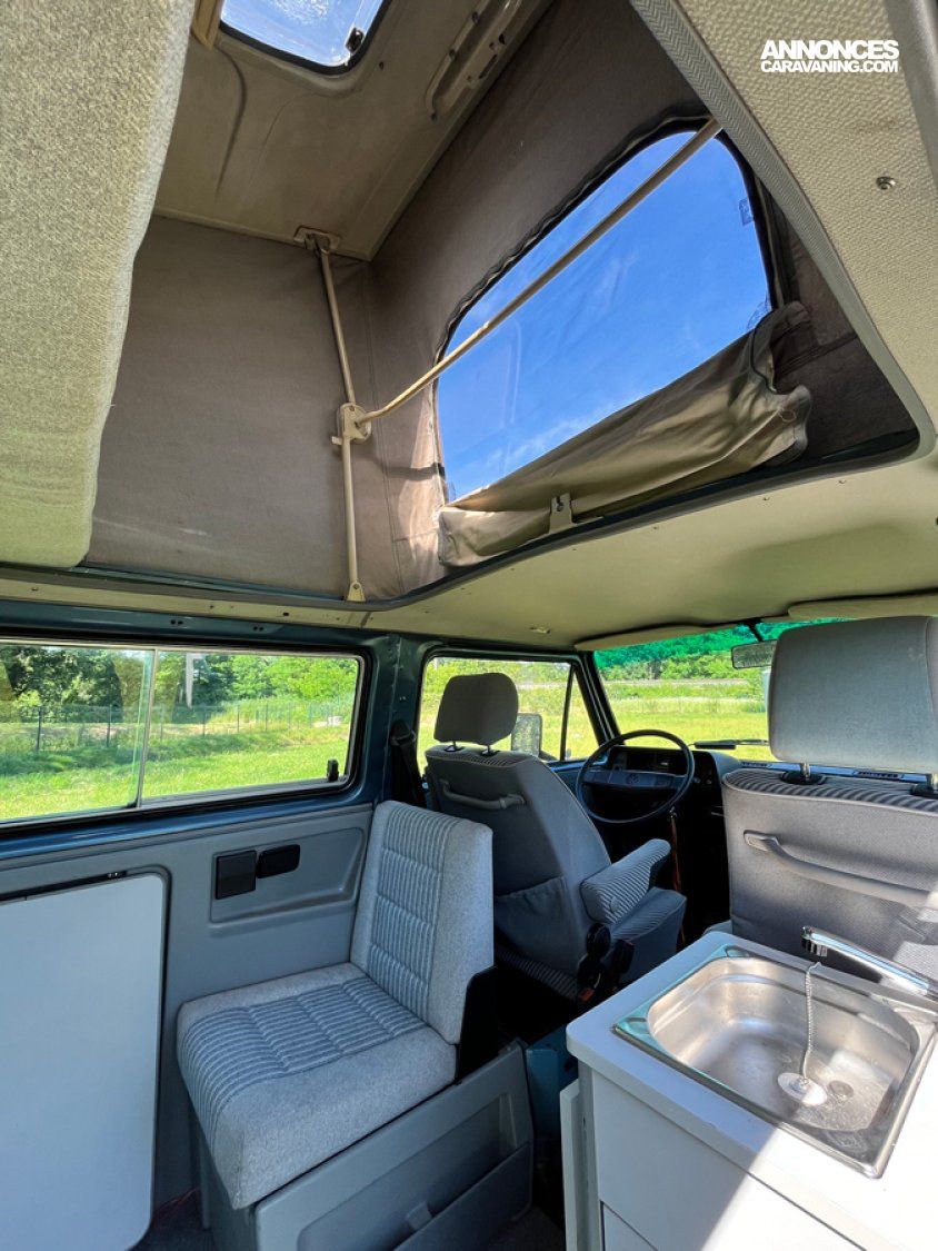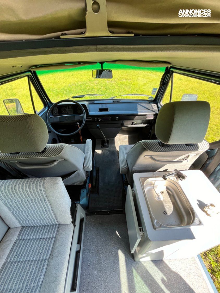 - Modèle rare avec ces options (couchage 2+2) et Multivan. Il accueille 6 passagers, est doté d’un petit évier avec réservoirs eau propre et eau sale, le top pour une petite ballade avec plusieurs nuits en autonomie.