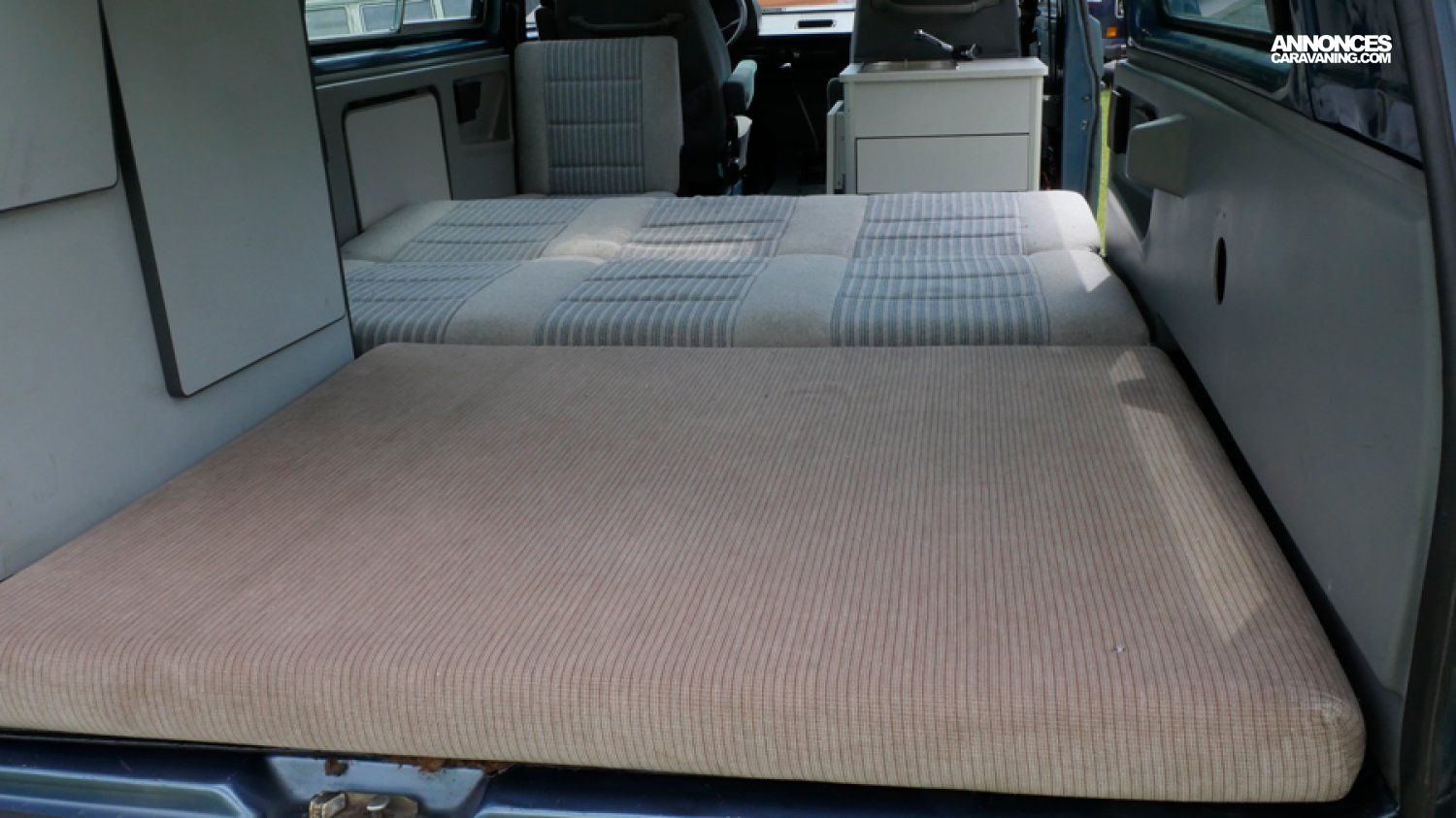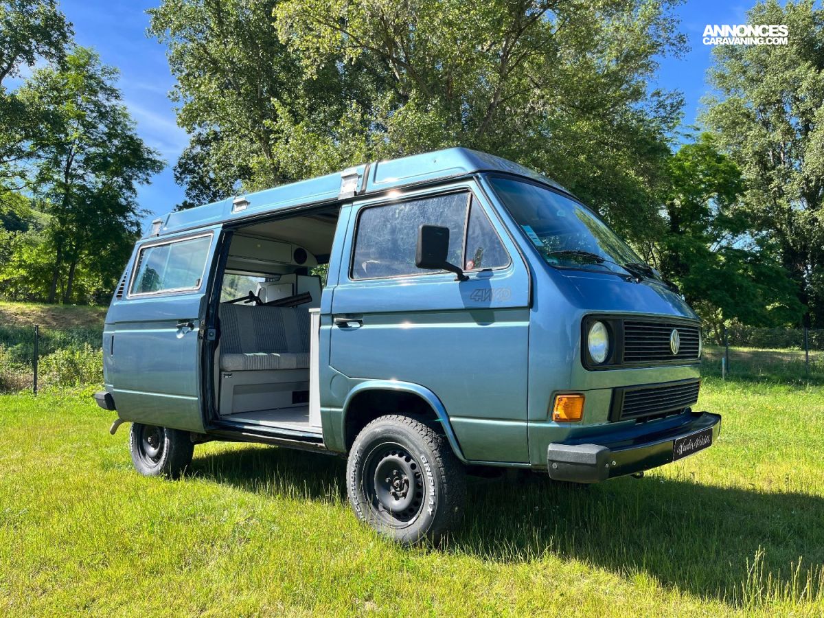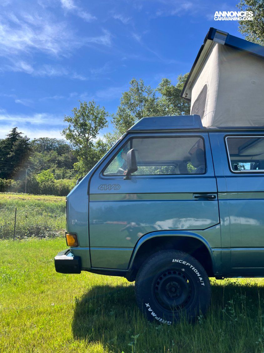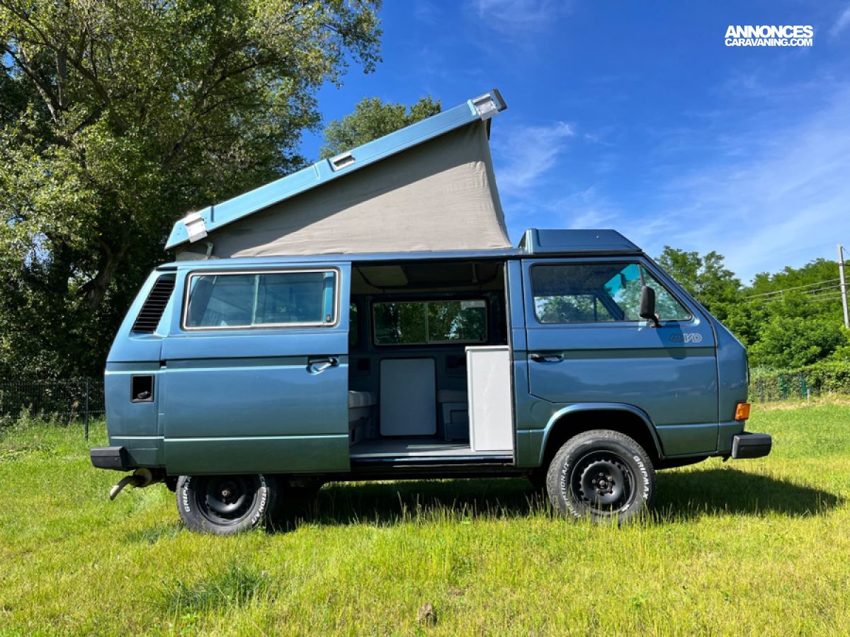 - Modèle rare avec ces options (couchage 2+2) et Multivan. Il accueille 6 passagers, est doté d’un petit évier avec réservoirs eau propre et eau sale, le top pour une petite ballade avec plusieurs nuits en autonomie.