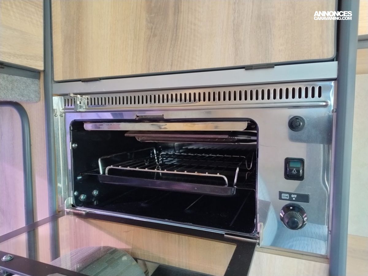 CHAUFFAGE CARBURANT, STORE EXTERIEUR 3M, GAZINIERE 2 FEUX, DOUCHETTE EXTERIEURE, ECLAIRAGE LED, FOUR A GAZ, VOLET ISOTHERME INTERIEUR, REFRIGERATEUR 12V A COMPRESSION, MARCHEPIED INTÉGRÉ, TOIT OUVRANT ELECTRIQUE