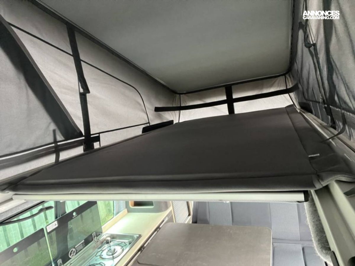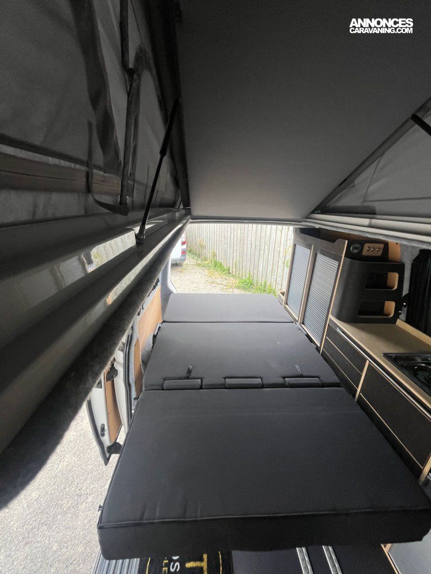 -Configuration latérale gauche, table et banquette sur rail amovible convertible en couchage 180x120