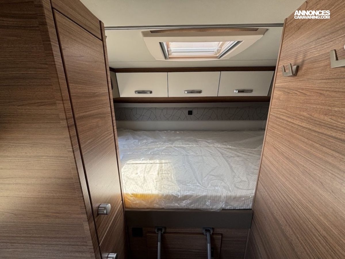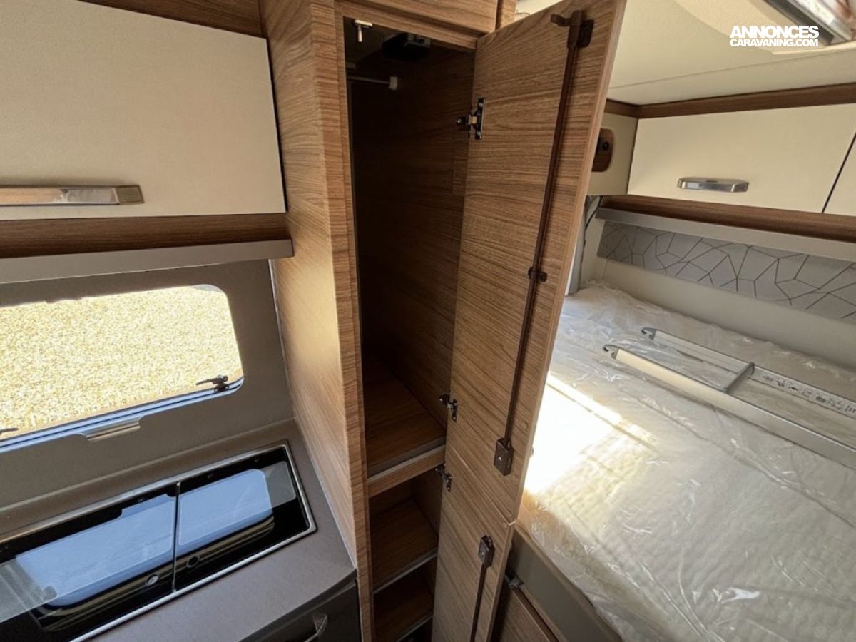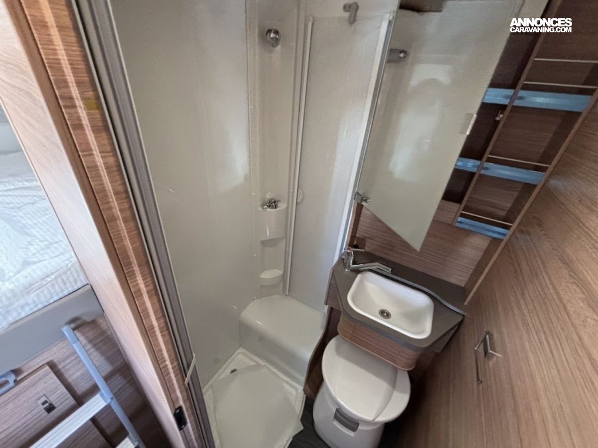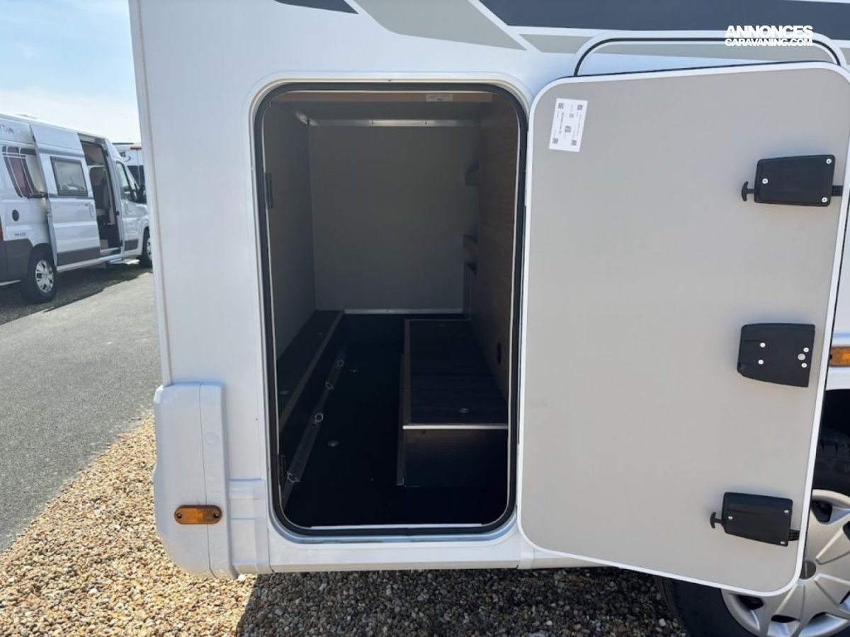 Cuisine en long, Douche à vario, Grande soute, Lit arrière transversal, Salon avant sièges pivotants, WC Cassette.