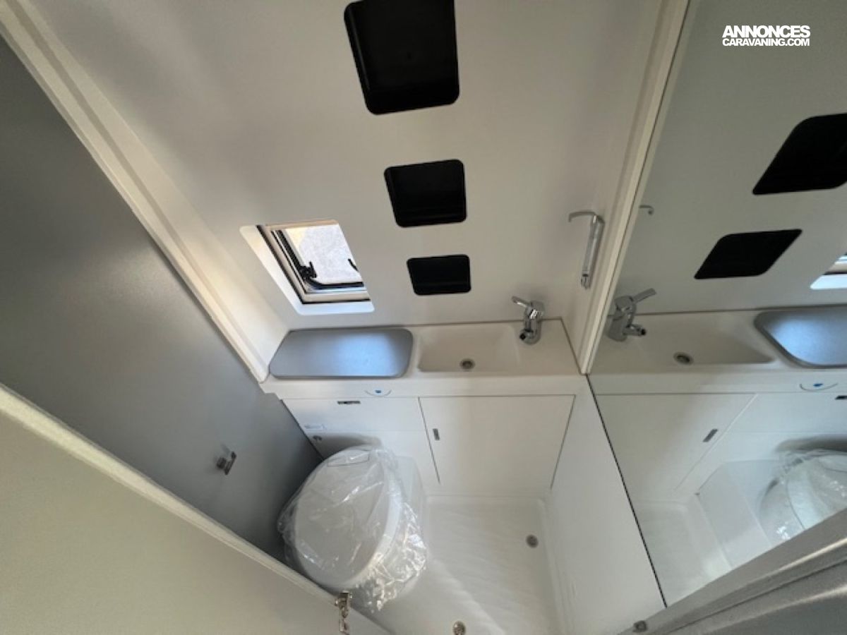 ABS, Anti démarrage, Batterie LITHIUM, Boite 6 vitesses, Chauffage TRUMA Combi 4 , Direction assistee, Embases de siège pivotantes, Fermeture centralisée, Gouttière extérieure avec éclairage LED , Marche pied électrique, Moustiquaire de porte cellule, Ordinateur de bord, Pack multimédia caméra GPS, Peinture métallisée, Phares anti-brouillard, Prises 12 V / 230 V, Régulateur de vitesse, Store extérieur, Stores plissés cabine, Verrouillage centralisé, Vitre electrique, Vitres teintées , Volant et levier de vitesse cuir