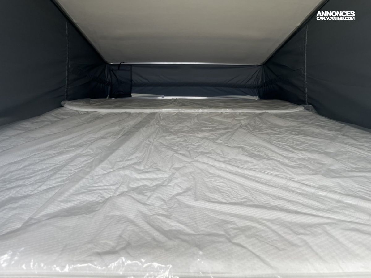 - Lit de dimensions 900 x 1.800 mm intégré dans la banquette avant avec matelas en mousse froide et fibres mélangées 3D