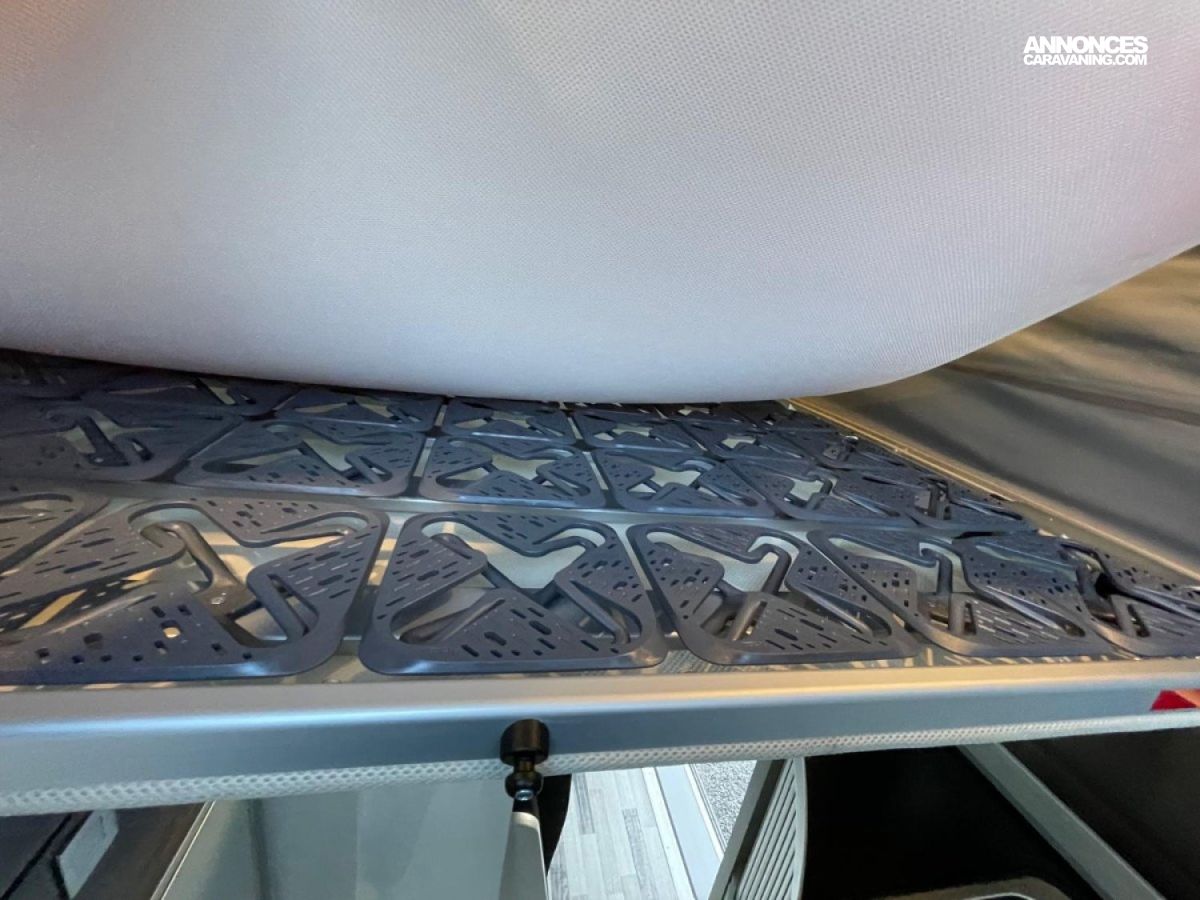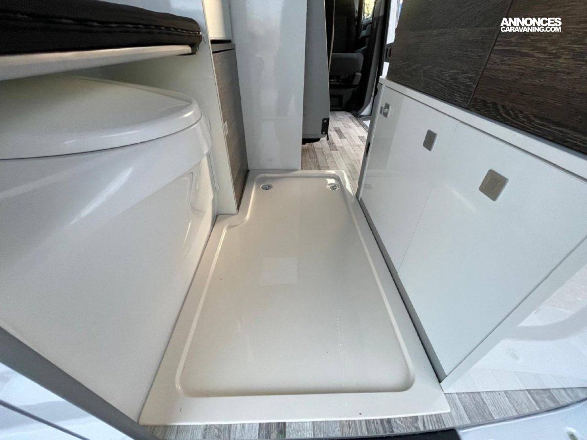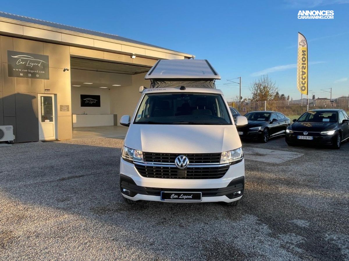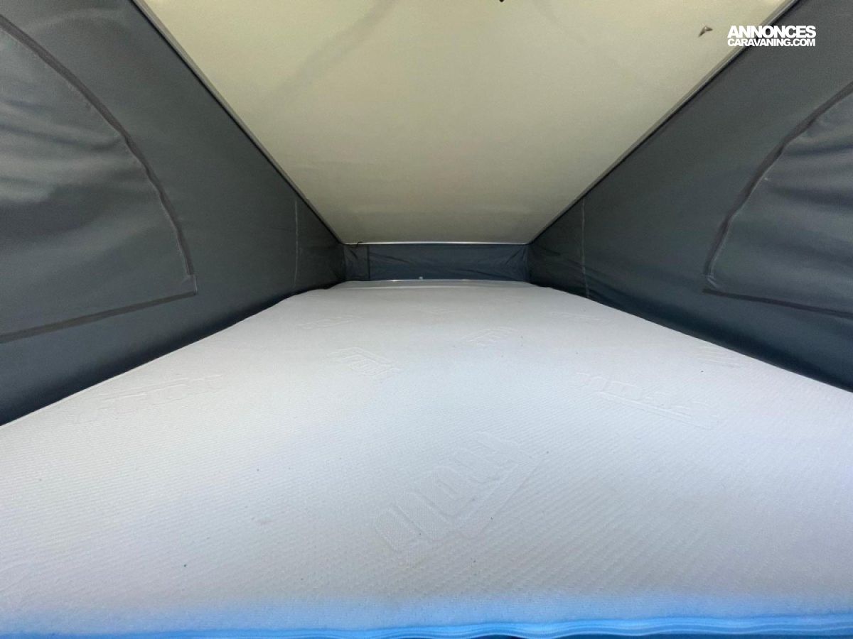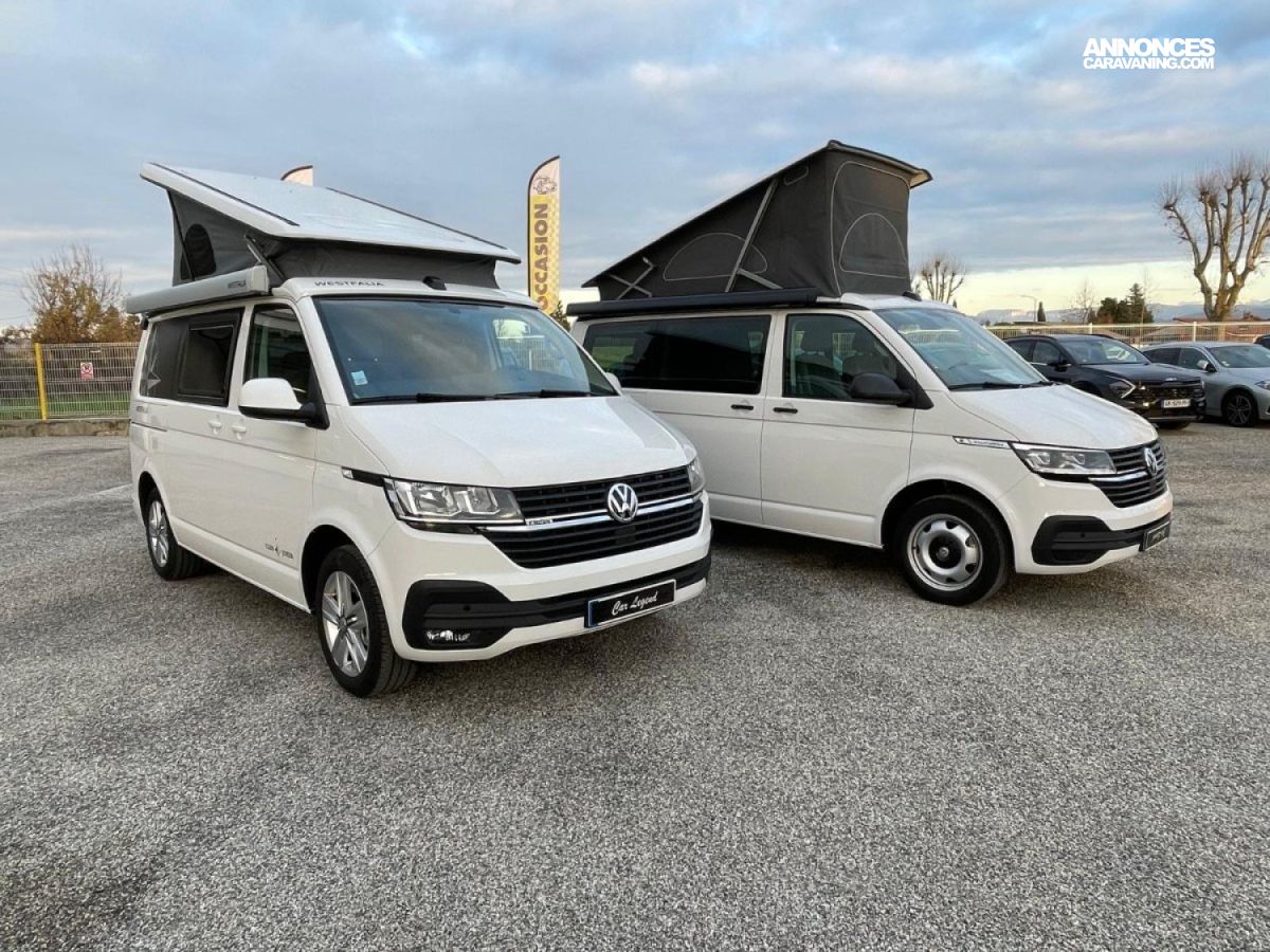 Il propose une implantation polyvalente avec toit relevable, offrant 4 places assises et 3 couchages •Dimensions couchages : Lit de toit (1.30 x 2.00 m), Lit de dînette (90 x 1.80 m) • Longueur du véhicule : 4,89 m • Hauteur du véhicule : 2,00 m • Largeur du véhicule : 1,90m• Coin cuisine tout équipé o Plaque de cuisson deux feux o Évier en inox avec mitigeur o De nombreux rangements pratiques o Réfrigérateur à compression de 49 L • Sanitaires autonomes o Véritable bac à douche avec caillebotis o WC à cassette extractible o Rideau de douche innovant à fixation magnétique • Espace de vie et nuit o Lit double confortable dans le toit relevable o Banquette transformable en couchage d'appoint o Spots LED pour une ambiance chaleureuse • Confort en toute saison o Chauffage Webasto de série pour vos escapades hivernales o Isolation thermique et acoustique signée Westfalia • Vie en extérieur o Auvent pour vous abriter du soleil o Moustiquaire de porte coulissante o Pack extérieur avec deux chaises et un support pour utiliser la table du salon dehors • Conduite sereine avec le régulateur de vitesse o Manœuvres facilitées par l'aide au stationnement avant/arrière et la caméra de recul o Visibilité optimale grâce à l'allumage automatique des feux de route (Light Assist) et aux projecteurs LED o Confort et multimédia o Sièges avant chauffants et pivotants pour transformer l'espace de vie o Système de navigation "Discover Media" avec écran tactile 8 pouces, compatible Apple CarPlay et Android Auto sans fil • jantes en alliage de 17 pouces.