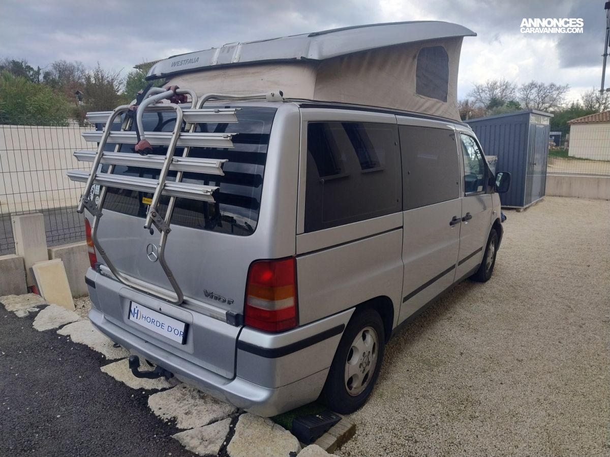 Ce Mercedes-Benz Vito W638 Westfalia incarne l’esprit du voyage libre et spontané. En version VP 7 places, il offre toute la polyvalence d’un van du quotidien avec l’âme d’un aventurier. Son toit relevable ouvre la porte aux nuits sous les étoiles, tandis que la banquette se transforme en couchage confortable en quelques instants. La cuisine amovible avec point d’eau permet de savourer un café face à la mer ou en pleine montagne, sans sacrifier la modularité. À l’arrière, le porte-4 vélos Fiamma promet des escapades sportives improvisées. Et pour voyager l’esprit tranquille, tout le châssis a été intégralement revu et traité contre la corrosion, le point sensible bien connu du modèle. Un van attachant, prêt à vous emmener loin — et longtemps.